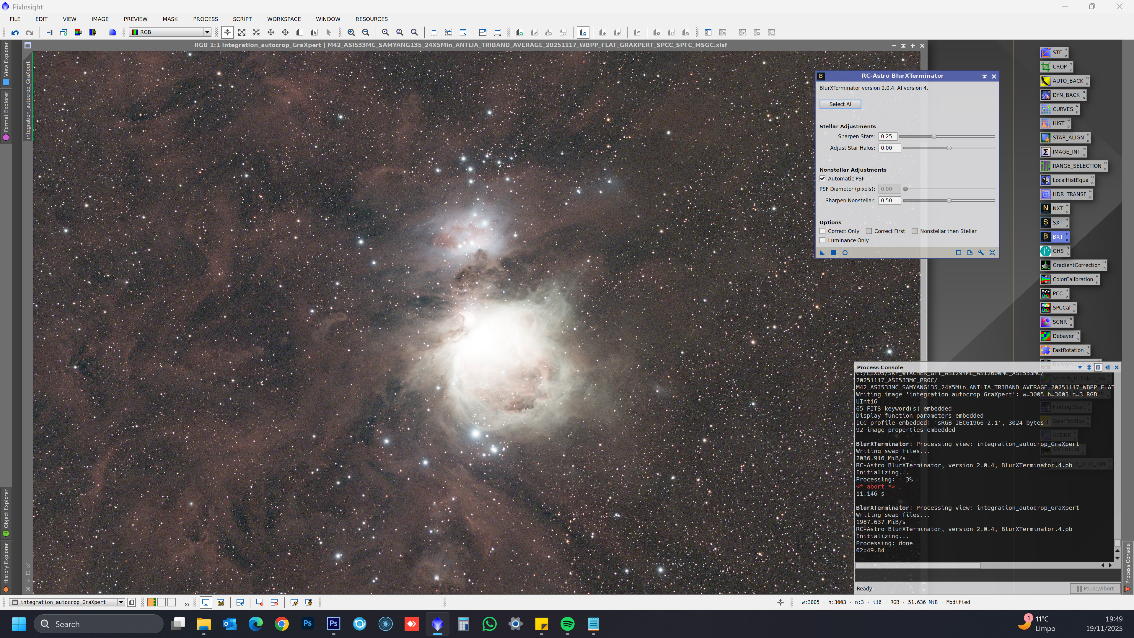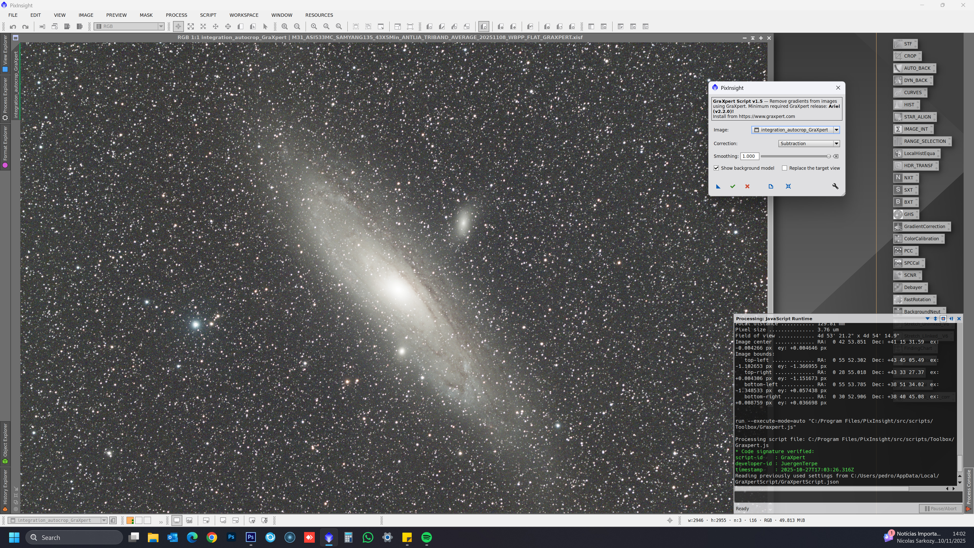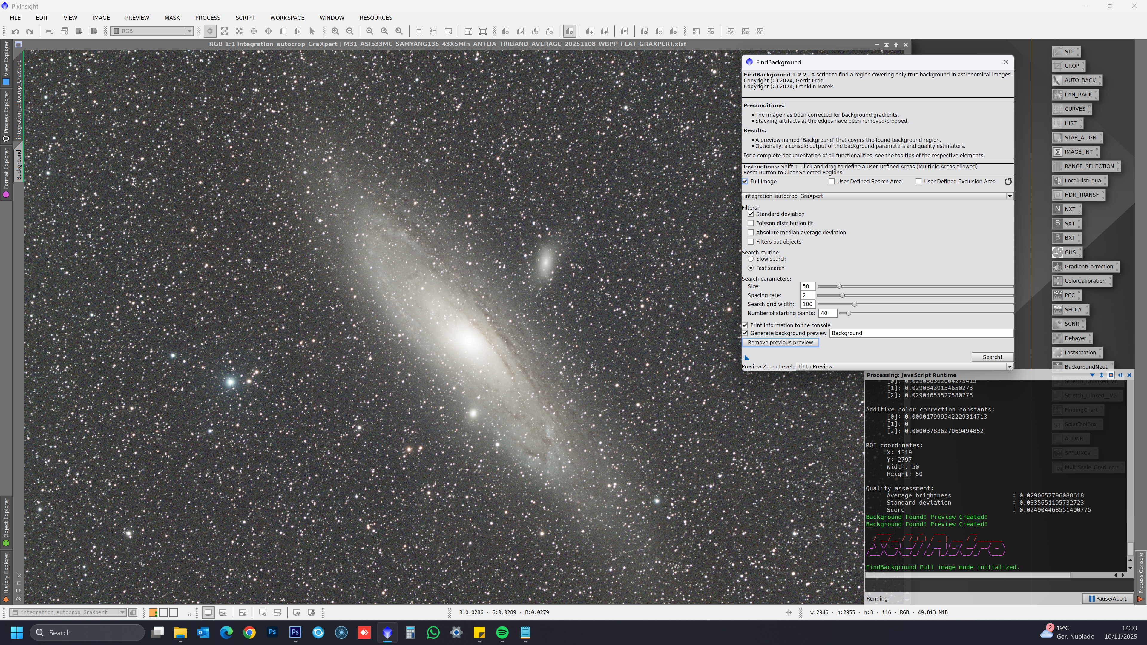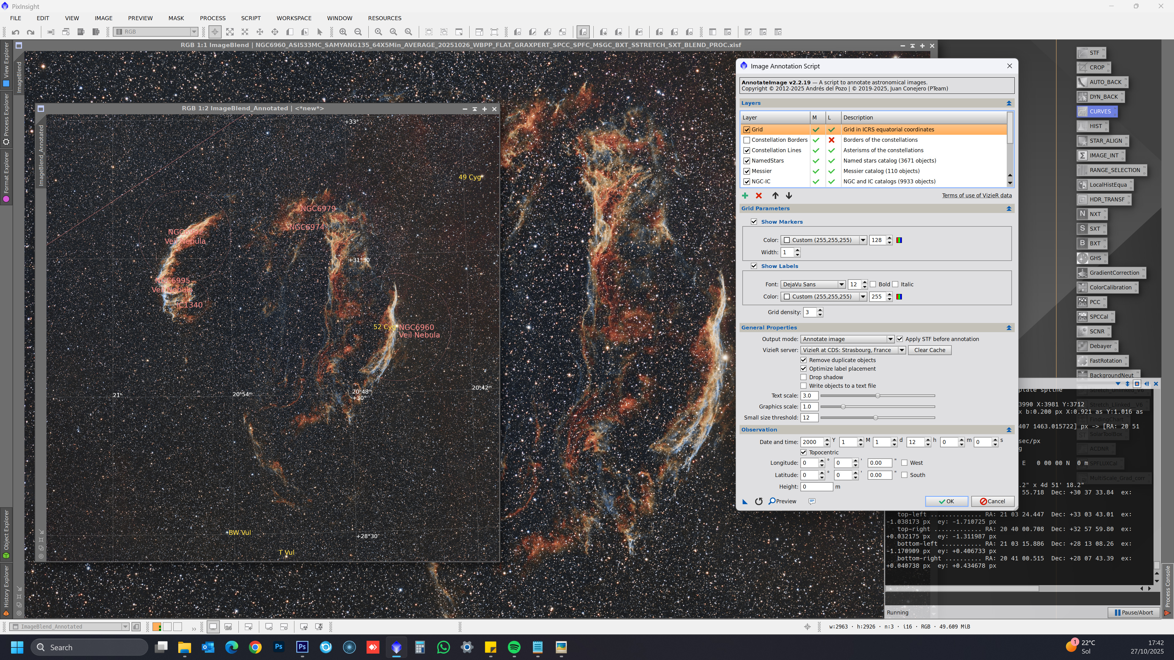 https://youtu.be/U76rU_hsdUY WIDEFIELD CMOS IMAGING | Pedro RE' SAMYANG 135mm F/2.0 | ZWO ASI 533MC | SW Star Adventurer Gti | ASIAIR Pro M31, M42, M45 Veil | PixInsight Processing Tutorial https://pedroreastrophotography.com/ https://youtu.be/atFvb9d3wJQ WIDEFIELD CMOS IMAGING | Pedro RE' SAMYANG 135mm F/2.0 | ZWO ASI 533MC | SW Star Adventurer Gti | ASIAIR Pro Mod Veil Nebula (NGC6995/6960), M031 | PixInsight Processing Tutorial https://pedroreastrophotography.com/ https://youtu.be/EAY5xmTuw1Y WIDEFIELD CMOS IMAGING | Pedro RE' SAMYANG 135mm F/2.0 | ZWO ASI 533MC | SW Star Adventurer Gti | ASIAIR Pro Mod Veil Nebula (NGC6995/6960) | PixInsight Processing Tutorial https://pedroreastrophotography.com/ https://youtu.be/lUUMfSGXiQ8 WIDEFIELD CMOS IMAGING | Pedro RE' | NGC7000 / Veil Nebula (NGC6995/6960) SAMYANG 135mm F/2.0 | ZWO ASI 533MC | SW Star Adventurer Gti | ASIAIR Pro https://pedroreastrophotography.com/ ![]() FULL SIZE FULL SIZE (ANNOTATED) FULL SIZE (MOSAIC) NGC869/NGC884, 75 Min (15x5Min), Samyang 135mm F/2, Sky-Watcher Star Adventurer GTi, ZWO ASIAIR Pro, ZWO ASI533MC, ASI120MM Mini (Guide), Antlia Triband filter ![]() FULL SIZE FULL SIZE (ANNOTATED) FULL SIZE (MOSAIC) M031, 435 Min (87x5Min), Samyang 135mm F/2, Sky-Watcher Star Adventurer GTi, ZWO ASIAIR Pro, ZWO ASI533MC, ASI120MM Mini (Guide), Antlia Triband filter ![]() FULL SIZE FULL SIZE (ANNOTATED) FULL SIZE (MOSAIC) M031, 380 Min (76x5Min), Samyang 135mm F/2), Sky-Watcher Star Adventurer GTi, ZWO ASIAIR Pro, ZWO ASI533MC, ASI120MM Mini (Guide), Antlia Triband filter ![]() FULL SIZE FULL SIZE (ANNOTATED) PIXINSIGHT, PIXINSIGHT, PIXINSIGHT, PIXINSIGHT, PIXINSIGHT, PIXINSIGHT, PIXINSIGHT, PIXINSIGHT, PIXINSIGHT, PIXINSIGHT, PIXINSIGHT, PIXINSIGHT, PIXINSIGHT, PHOTOSHOP CC M031, 215 Min (43x5Min), Samyang 135mm F/2, Sky-Watcher Star Adventurer GTi, ZWO ASIAIR Pro, ZWO ASI533MC, ASI120MM Mini (Guide), Antlia Triband filter ![]() FULL SIZE FULL SIZE (ANNOTATED) FULL SIZE (MOSAIC) FULL SIZE (MOSAIC) PIXINSIGHT, PIXINSIGHT, PIXINSIGHT, PIXINSIGHT, PIXINSIGHT, PIXINSIGHT, PIXINSIGHT, PIXINSIGHT, PIXINSIGHT, PIXINSIGHT, PIXINSIGHT, PIXINSIGHT, PIXINSIGHT, PIXINSIGHT. PHOTOSHOP CC, PHOTOSHOP CC. NGC7000/IC5070, 470 Min (94x5Min), Samyang 135mm F/2, Sky-Watcher Star Adventurer GTi, ZWO ASIAIR Pro, ZWO ASI533MC, ASI120MM Mini (Guide), Antlia Triband filter ![]() FULL SIZE NGC7000/IC5070, 380 Min (76x5Min), Samyang 135mm F/2, Sky-Watcher Star Adventurer GTi, ZWO ASIAIR Pro, ZWO ASI533MC, ASI120MM Mini (Guide), Antlia Triband filter (Hubble Palette) ![]() FULL SIZE FULL SIZE (ANNOTATED) FULL SIZE (MOSAIC) PIXINISIGHT, PIXINISIGHT, PIXINISIGHT, PIXINISIGHT, PIXINISIGHT, PIXINISIGHT, PIXINISIGHT, PIXINISIGHT, PIXINISIGHT, PIXINISIGHT, PIXINISIGHT, PIXINISIGHT, PIXINISIGHT, PIXINISIGHT, PHOTOSHOP CC. NGC7000/IC5070, 380 Min (76x5Min), Samyang 135mm F/2, Sky-Watcher Star Adventurer GTi, ZWO ASIAIR Pro, ZWO ASI533MC, ASI120MM Mini (Guide), Antlia Triband filter ![]() FULL SIZE FULL SIZE (HUBBLE PALETTE) FULL SIZE (MOSAIC) FULL SIZE (MOSAIC) NGC6960/6995, 450Min (90x5Min), Samyang 135mm F/2, Sky-Watcher Star Adventurer GTi, ZWO ASIAIR Pro, ZWO ASI533MC, ASI120MM Mini (Guide), Antlia Triband filter ![]() FULL SIZE FULL SIZE (ANNOTATED) FULL SIZE (HUBBLE PALLETE) PIXINSIGHT, PIXINSIGHT, PIXINSIGHT, PIXINSIGHT, PIXINSIGHT, PIXINSIGHT, PIXINSIGHT, PIXINSIGHT, PIXINSIGHT, PIXINSIGHT, PIXINSIGHT, PIXINSIGHT, PIXINSIGHT, PIXINSIGHT, PHOTOSHOP CC NGC6960/6995, 385Min (77x5Min), Samyang 135mm F/2, Sky-Watcher Star Adventurer GTi, ZWO ASIAIR Pro, ZWO ASI533MC, ASI120MM Mini (Guide), Antlia Triband filter FULL SIZE FULL SIZE (HUBBLE PALLETE) FULL SIZE (ANNOTATED) PIXINSIGHT, PIXINSIGHT, PIXINSIGHT, PIXINSIGHT, PIXINSIGHT, PIXINSIGHT, PIXINSIGHT, PIXINSIGHT, PIXINSIGHT, PIXINSIGHT, PIXINSIGHT, PIXINSIGHT, PIXINSIGHT, PIXINSIGHT, PIXINSIGHT, PHOTOSHOP CC, PHOTOSHOP CC NGC6960/6995, 320Min (64x5Min), Samyang 135mm F/2, Sky-Watcher Star Adventurer GTi, ZWO ASIAIR Pro, ZWO ASI533MC, ASI120MM Mini (Guide), Antlia Triband filter FULL SIZE FULL SIZE FULL SIZE (HUBBLE PALLETE) FULL SIZE (ANNOTATED) FULL SIZE (MOSAIC) PIXINSIGHT, PIXINSIGHT, PIXINSIGHT, PIXINSIGHT, PIXINSIGHT, PIXINSIGHT, PIXINSIGHT, PIXINSIGHT, PIXINSIGHT, PIXINSIGHT, PIXINSIGHT, PIXINSIGHT, PIXINSIGHT, PHOTOSHOP CC, PHOTOSHOP CC NGC6960/6995, 200 Min (40x5Min), Samyang 135mm F/2, Sky-Watcher Star Adventurer GTi, ZWO ASIAIR Pro, ZWO ASI533MC, ASI120MM Mini (Guide), Antlia Triband filter ![]() FULL SIZE FULL SIZE (ANNOTATED) FULL SIZE (MOSAIC) M45, 255Min (51x5Min), Samyang 135mm F/2, Sky-Watcher Star Adventurer GTi, ZWO ASIAIR Pro, ZWO ASI533MC, ASI120MM Mini (Guide), Antlia Triband filter ![]() FULL SIZE FULL SIZE (ANNOTATED) FULL SIZE (MOSAIC) FULL SIZE (MOSAIC) M45, 120Min (24x5Min), Samyang 135mm F/2, Sky-Watcher Star Adventurer GTi, ZWO ASIAIR Pro, ZWO ASI533MC, ASI120MM Mini (Guide), Antlia Triband filter ![]() FULL SIZE FULL SIZE (ANNOTATED) FULL SIZE (MOSAIC) M42, 210Min (42x5Min), Samyang 135mm F/2, Sky-Watcher Star Adventurer GTi, ZWO ASIAIR Pro, ZWO ASI533MC, ASI120MM Mini (Guide), Antlia Triband filter (Hubble Palette) ![]() FULL SIZE FULL SIZE (B&W) FULL SIZE (MOSAIC) M42, 120Min (24x5Min), Samyang 135mm F/2, Sky-Watcher Star Adventurer GTi, ZWO ASIAIR Pro, ZWO ASI533MC, ASI120MM Mini (Guide), Antlia Triband filter (Hubble Palette) ![]() FULL SIZE FULL SIZE (ANNOTATED) FULL SIZE (MOSAIC) PIXINSIGHT, PIXINSIGHT, PIXINSIGHT, PIXINSIGHT, PIXINSIGHT, PIXINSIGHT, PIXINSIGHT, PIXINSIGHT, PIXINSIGHT, PIXINSIGHT, PIXINSIGHT, PIXINSIGHT, PIXINSIGHT, PIXINSIGHT, PHOTOSHOP CC, PHOTOSHOP CC M42, 120Min (24x5Min), Samyang 135mm F/2, Sky-Watcher Star Adventurer GTi, ZWO ASIAIR Pro, ZWO ASI533MC, ASI120MM Mini (Guide), Antlia Triband filter HOME |