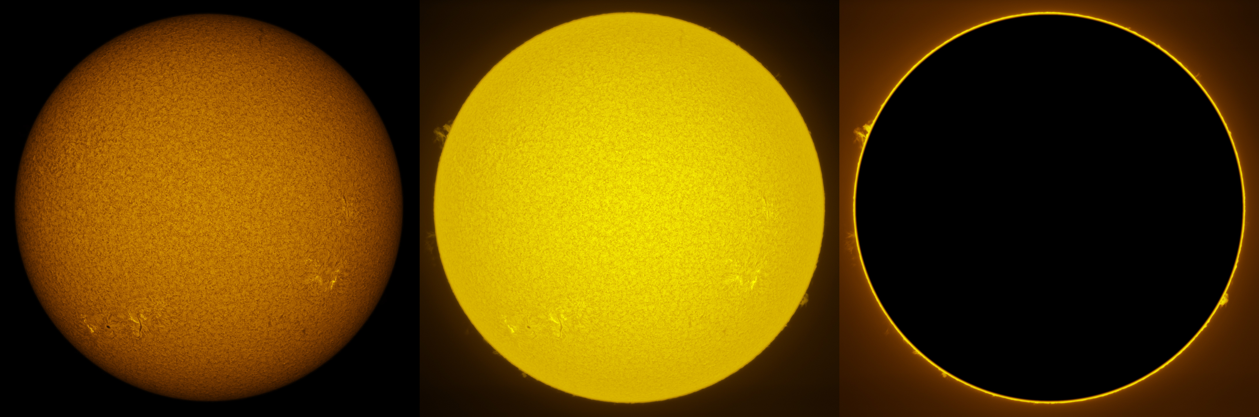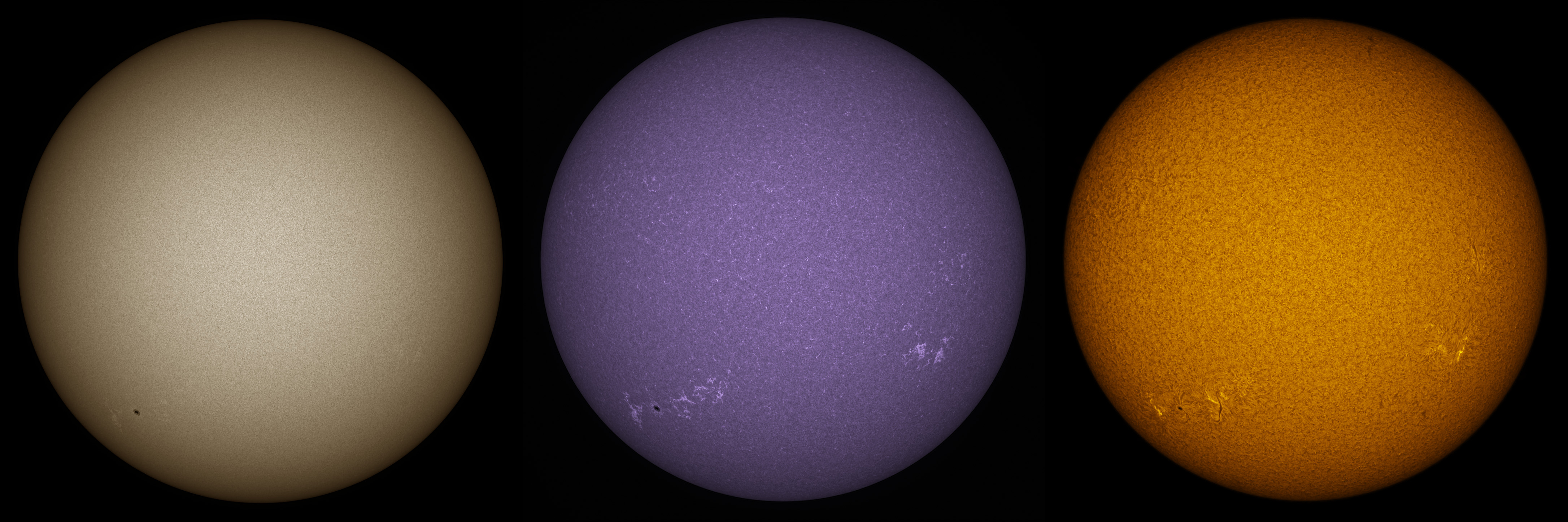 SUN (20201123) WL, CaK & H-alpha. LUNT152 F/6, LUNT152 CaK Module, B3400, X2 Barlow (@X1.4) PGR GRASSHOPPER 3 GS3-U3-28S4M