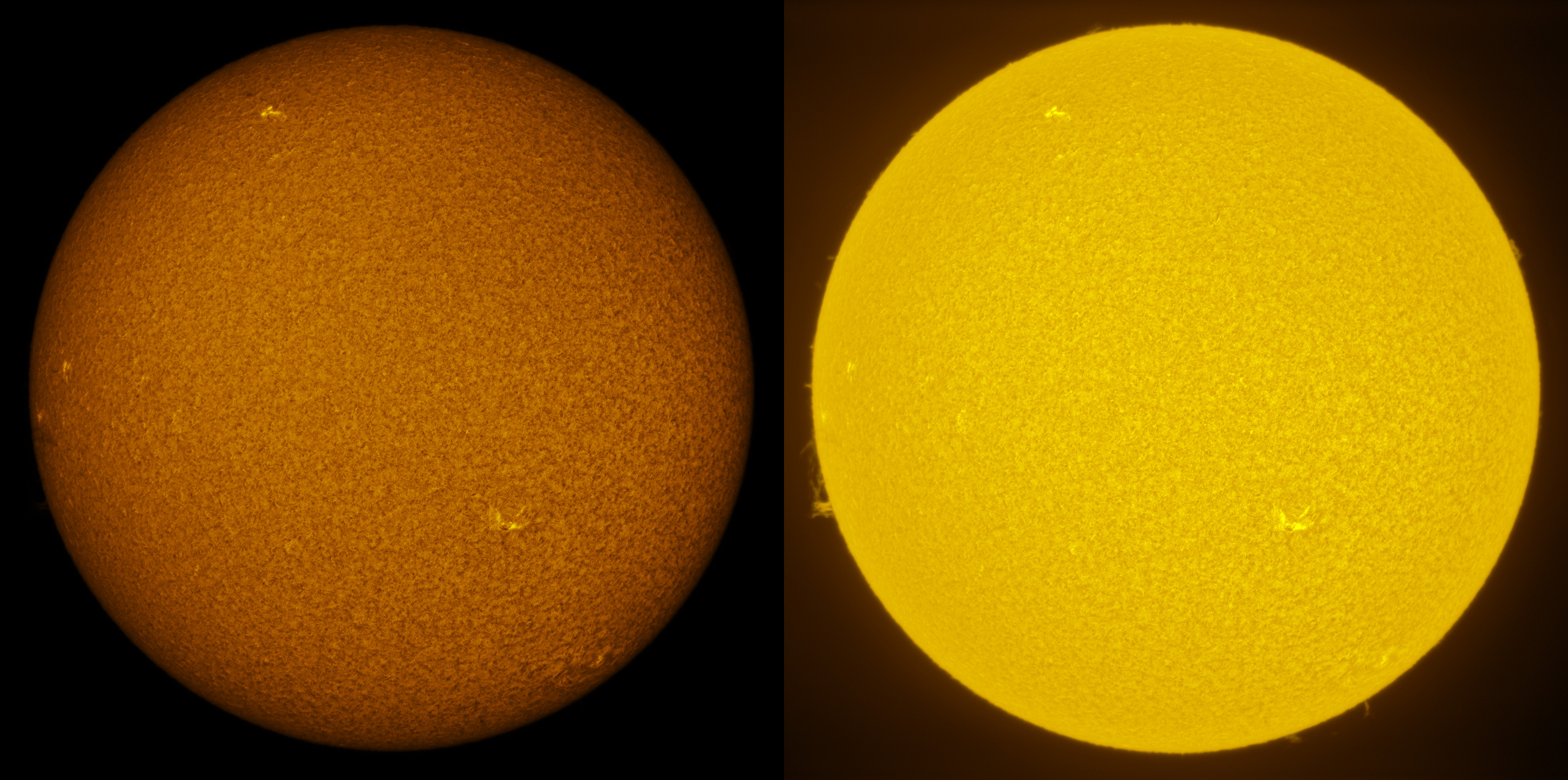 SUN (20210307) WL & H-alpha. LUNT152 F/6, B3400, X2 Barlow (@X1.4), PGR GRASSHOPPER 3 GS3-U3-28S4M