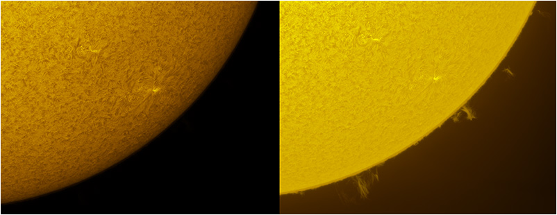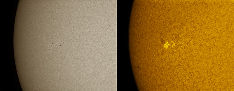 SUN (20210418) WL & H-alpha. LUNT152, B3400, X2 (@X1.4) Barlow, PGR GRASSHOPPER 3 GS3-U3-28S4M
