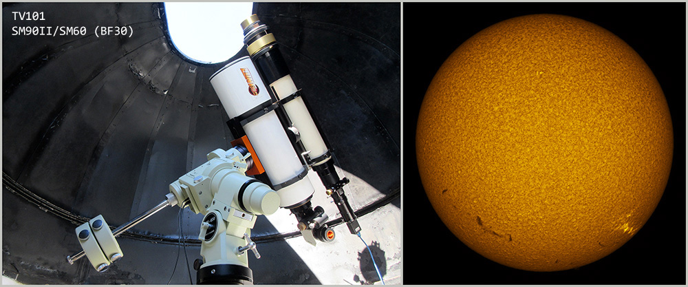 SUN (20210420) H-alpha (16:30 UTC). TV101 F/5.4, DS SM90II/SM60, BF30, PGR GRASSHOPPER 3 GS3-U3-28S4M