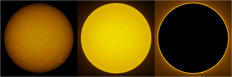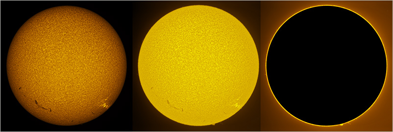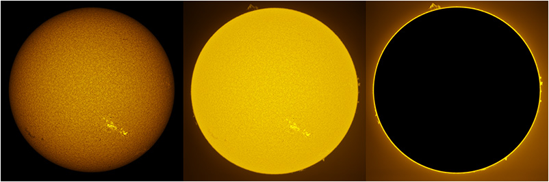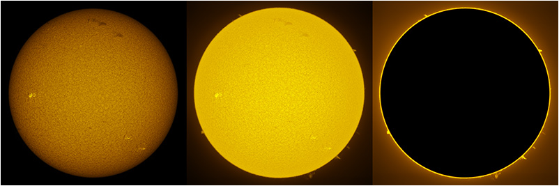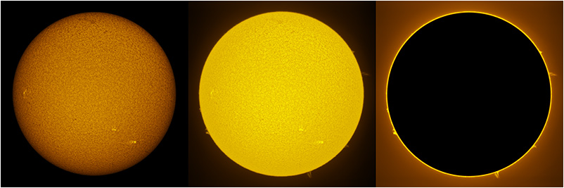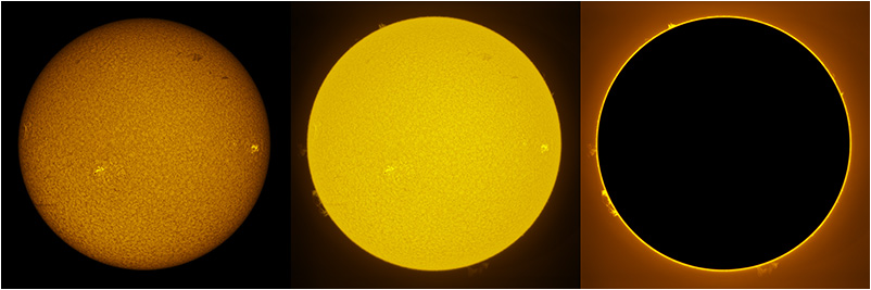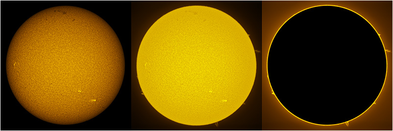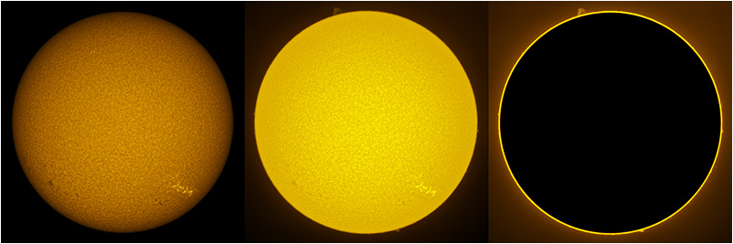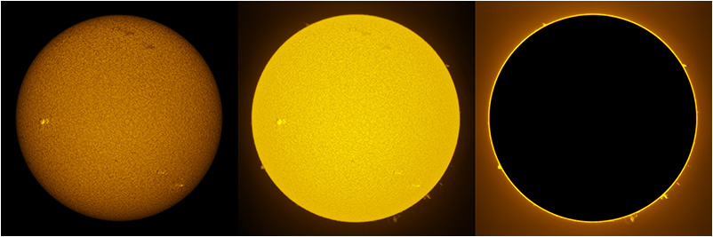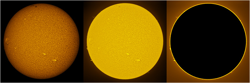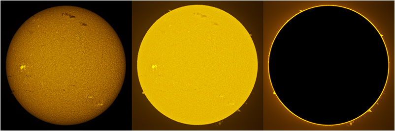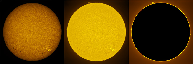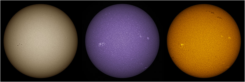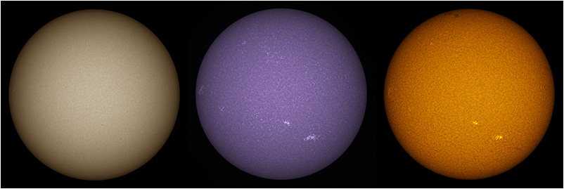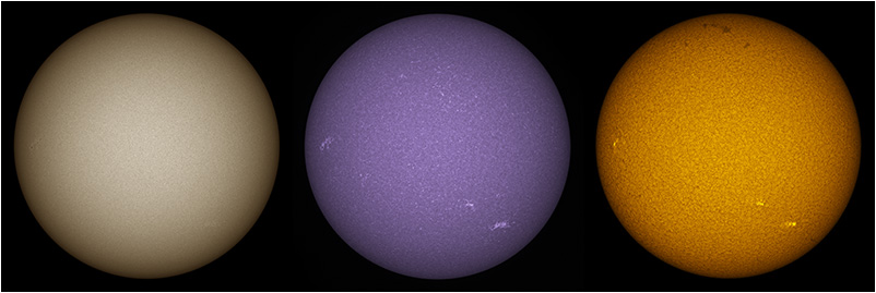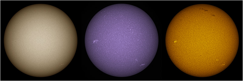 SUN (20210417) WL, CaK & H-alpha (09:00 UTC). TV101 F/5.4, LUNT 1200 CaK Module, SM60, BF30, PGR GRASSHOPPER 3 GS3-U3-28S4
