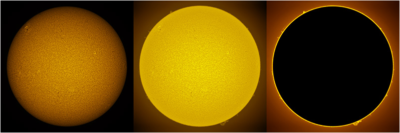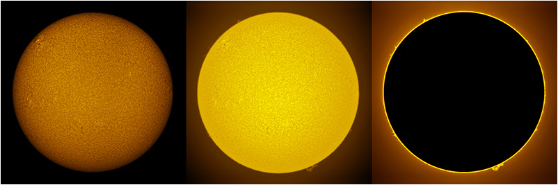 SUN (20210508) WL, CaK & H-alpha (09:00 UTC). TV101 F/5.4, LUNT 1200 CaK Module, SM60, BF30, PGR GRASSHOPPER 3 GS3-U3-28S4