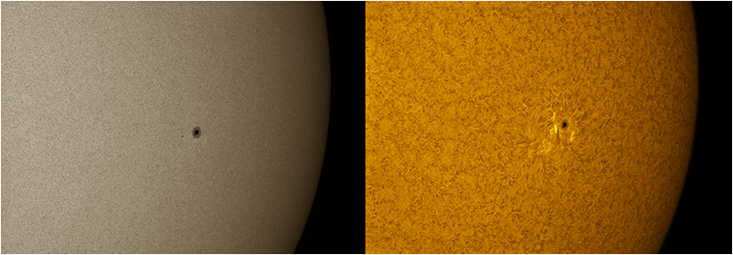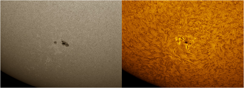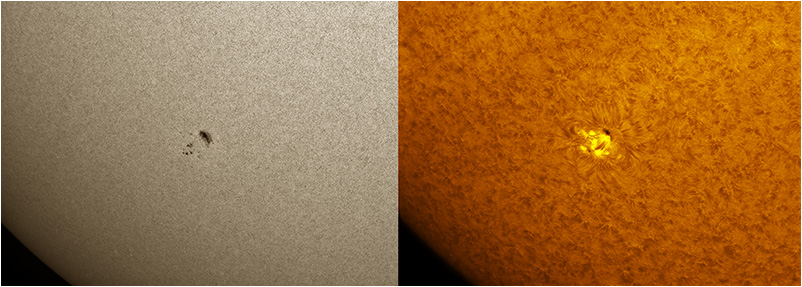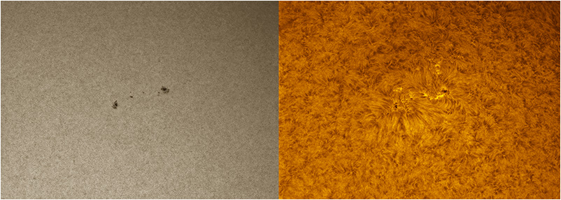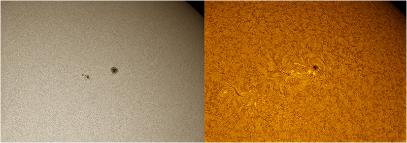 SUN (20210929) WL & H-alpha. LUNT152 F/6, B3400, X2 Barlow (@X1.4), PGR GRASSHOPPER 3 GS3-U3-28S4M