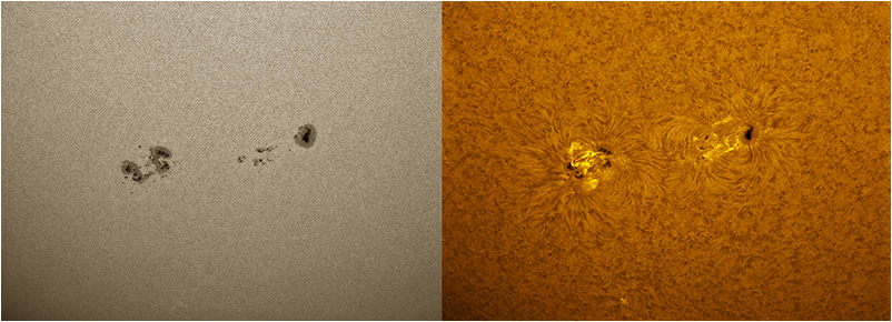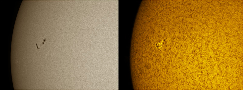 SUN (20210904) WL & H-alpha. LUNT152 F/6, B3400, X2 Barlow, PGR GRASSHOPPER 3 GS3-U3-28S4M