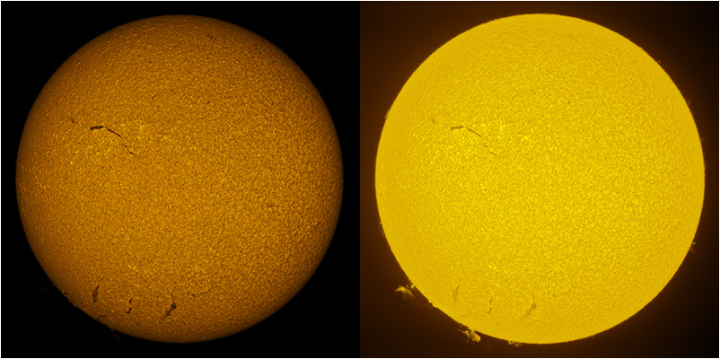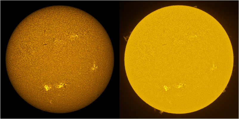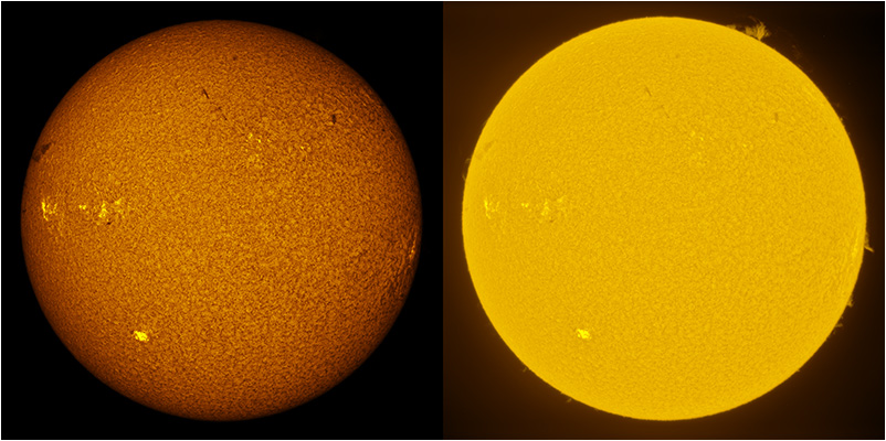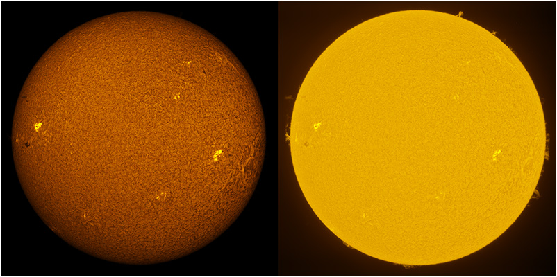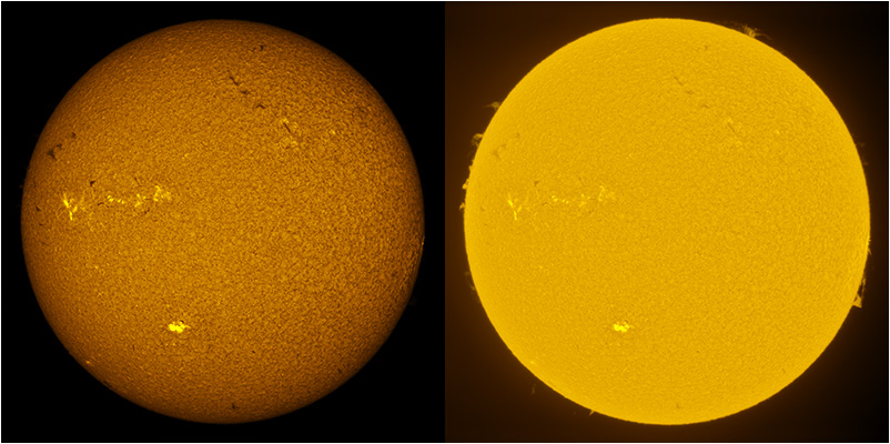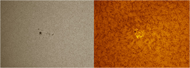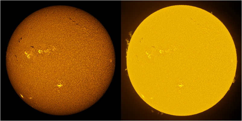 SUN (20210907) WL & H-alpha. LUNT152 F/6, B3400, X2 Barlow (@X1.4), PGR GRASSHOPPER 3 GS3-U3-28S4M