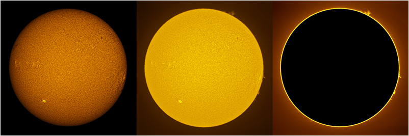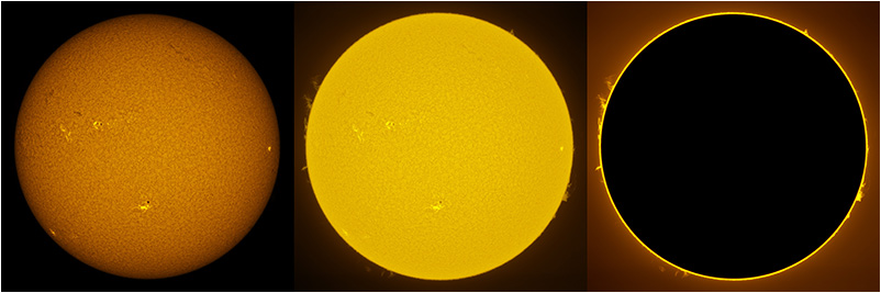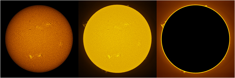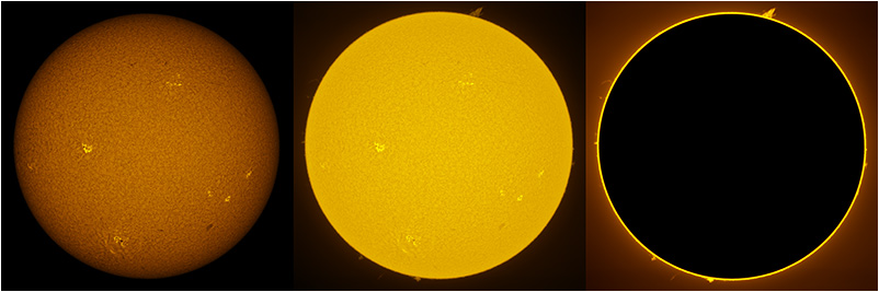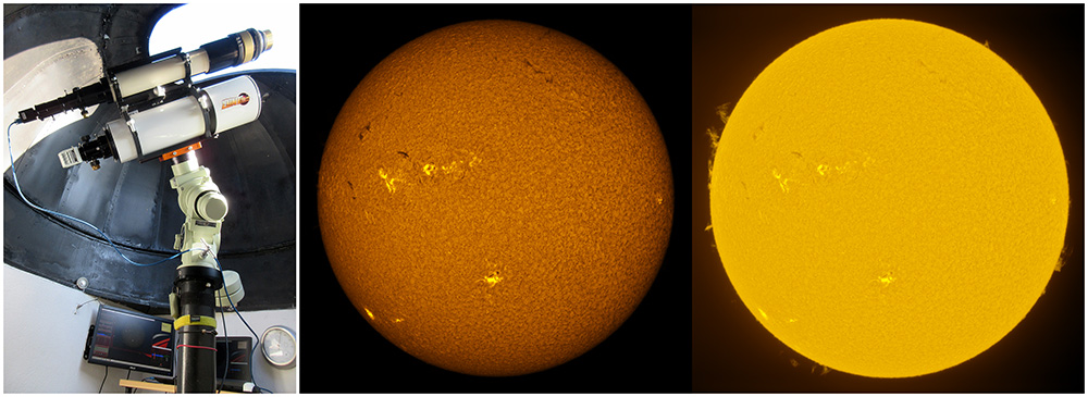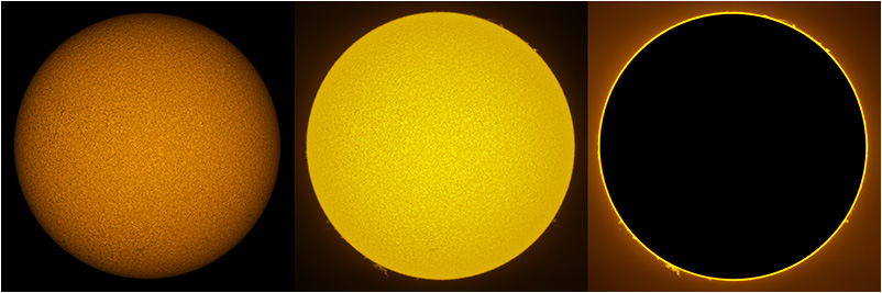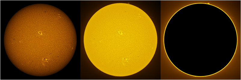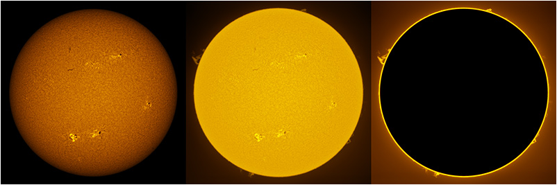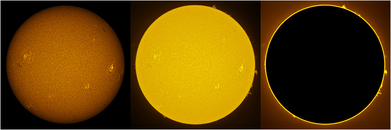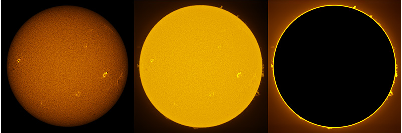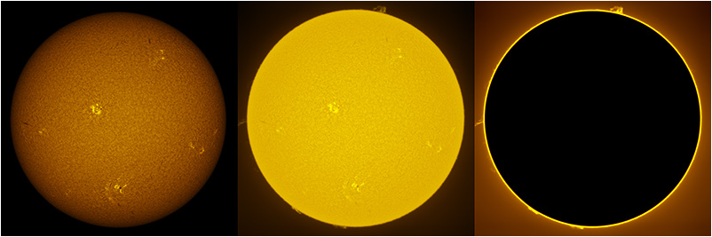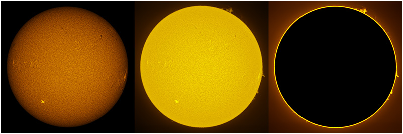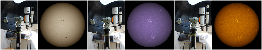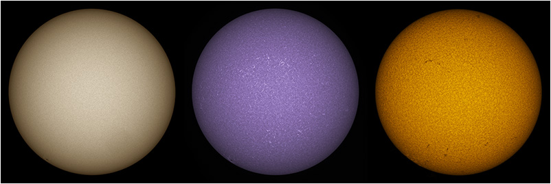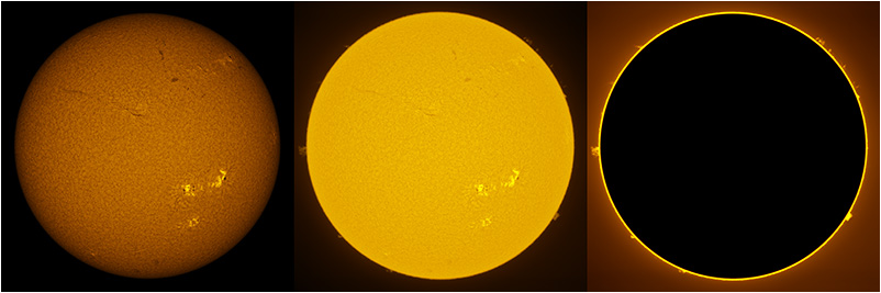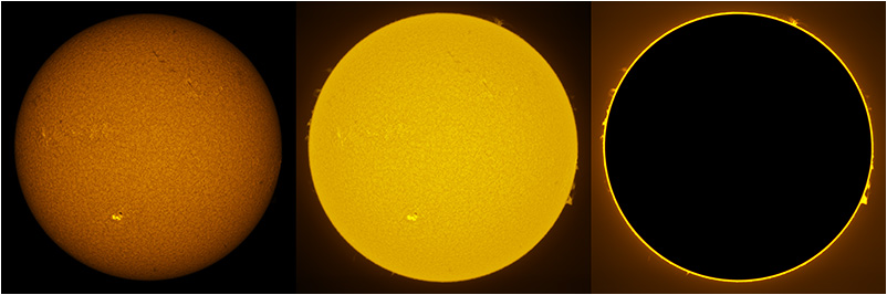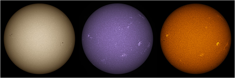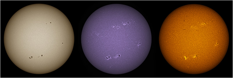 SUN (20210917) WL, CaK & H-alpha (08:00 UTC). TV101 F/5.4, LUNT 1200 CaK Module, SM60, BF30, PGR GRASSHOPPER 3 GS3-U3-28S4