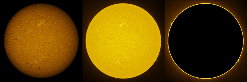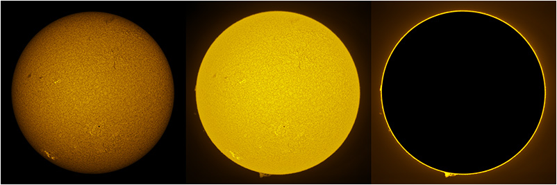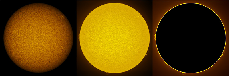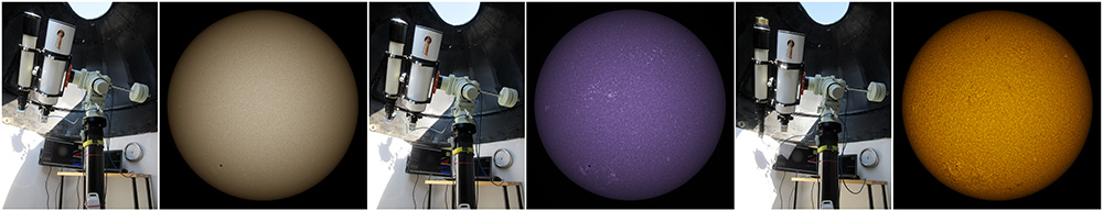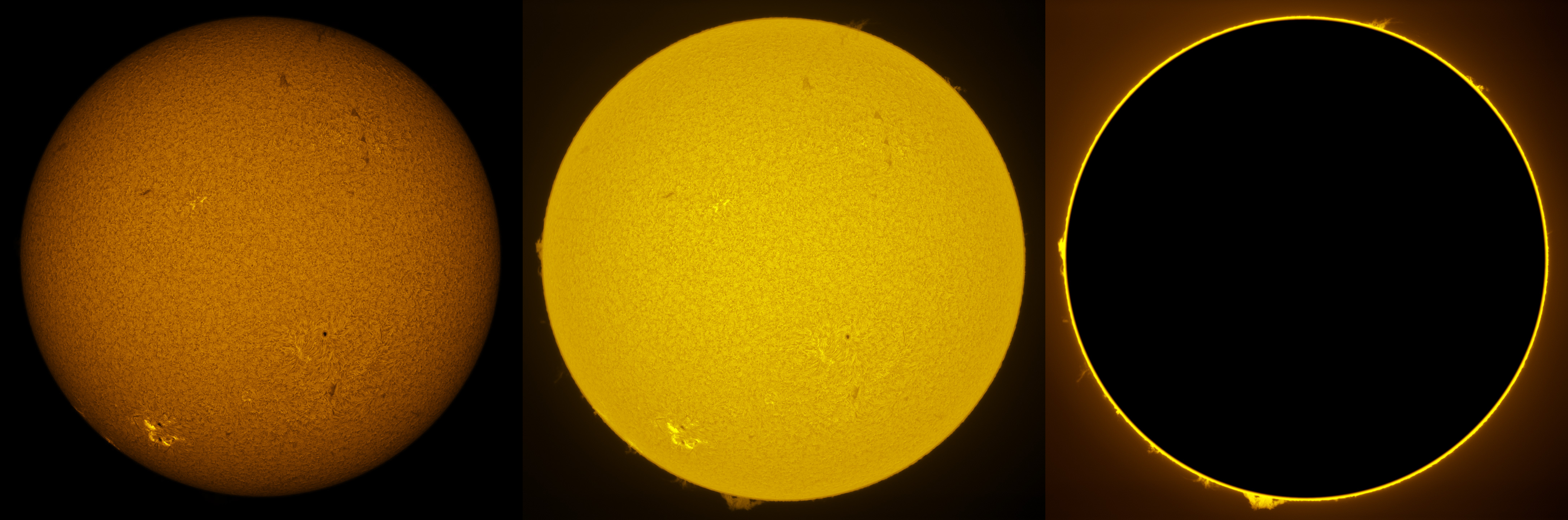 SUN (20211025) WL, CaK & H-alpha. LUNT152 F/6, LUNT152 CaK Module, B3400, X2 Barlow (@X1.4), PGR GRASSHOPPER 3 GS3-U3-28S4M