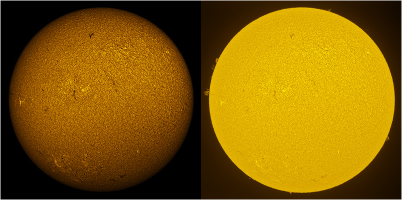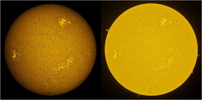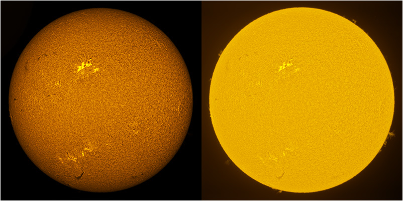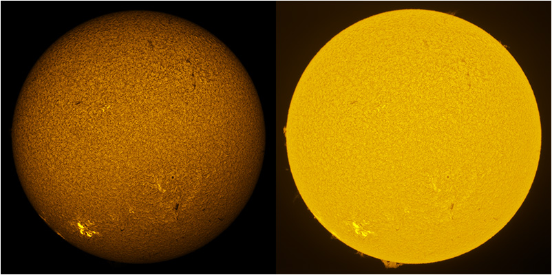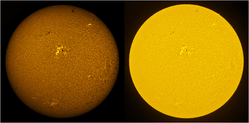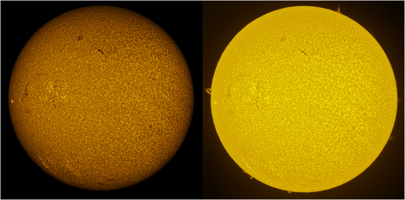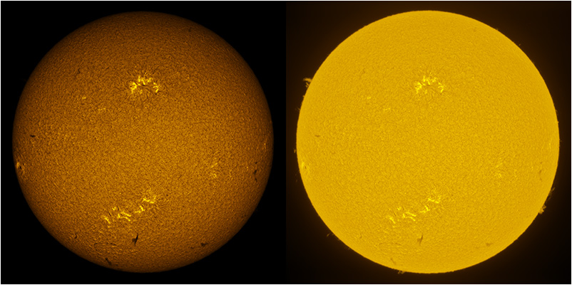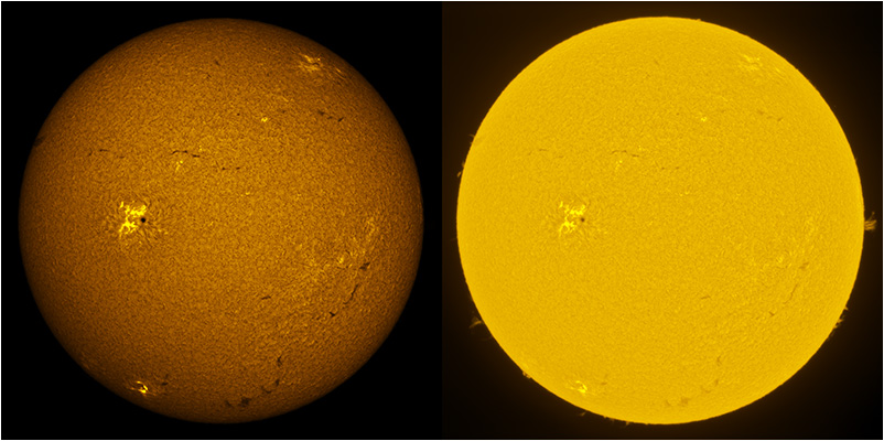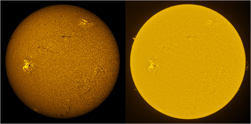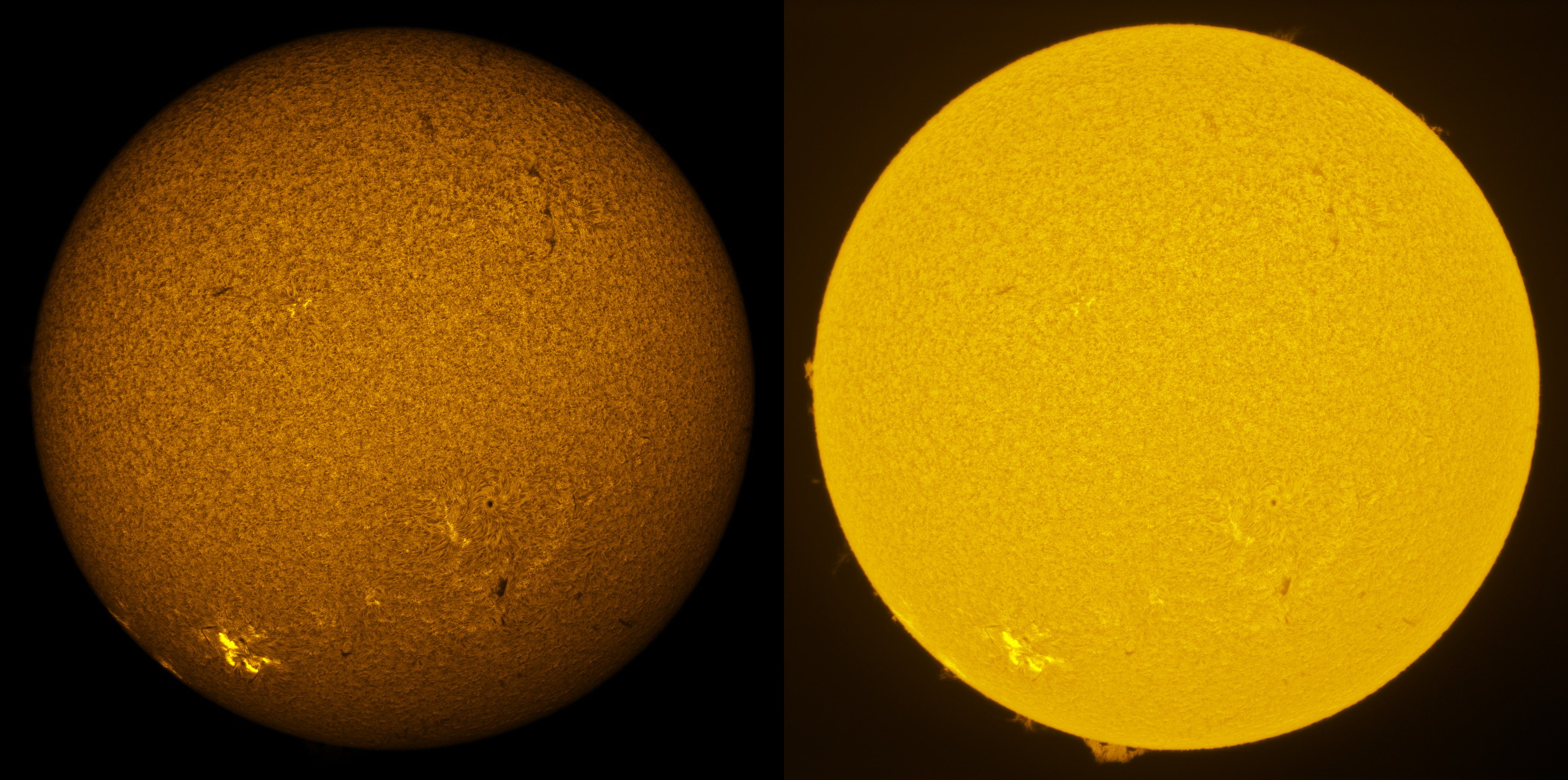 SUN (20211025) WL & H-alpha. LUNT152 F/6, B3400, X2 Barlow (@X1.4), PGR GRASSHOPPER 3 GS3-U3-28S4M