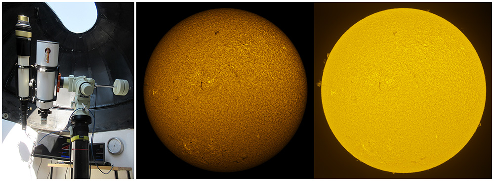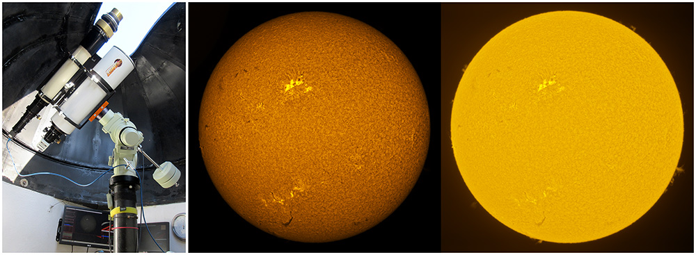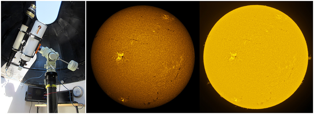 SUN (20211026) WL, CaK & H-alpha (09:00 UTC). TV101 F/5.4, LUNT 1200 CaK Module, SM60, BF30, PGR GRASSHOPPER 3 GS3-U3-28S4M