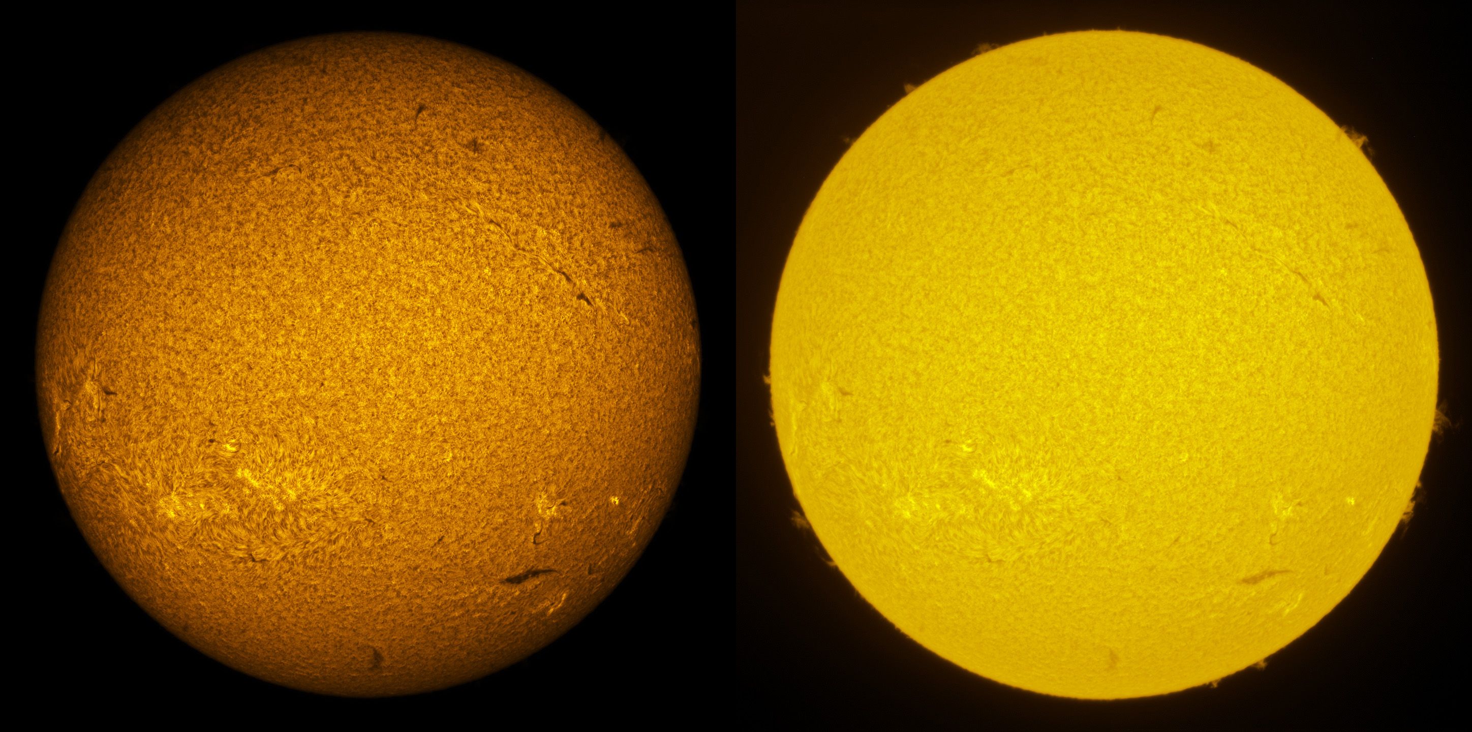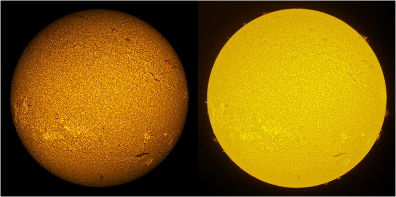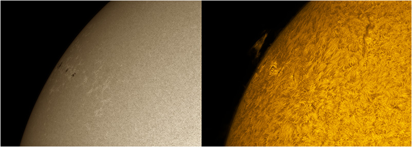 SUN (20220625) WL & H-alpha. LUNT152 F/6, X4 Powermate, DAYSTAR QUARK Chromosphere, ZWO ASI174MM