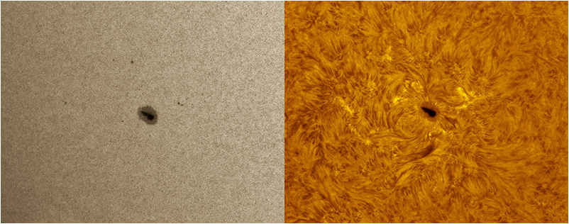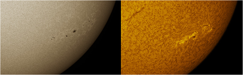 SUN (20220611) WL & H-alpha. LUNT152 F/6, X4 Powermate, DAYSTAR QUARK Chromosphere, ZWO ASI174MM
