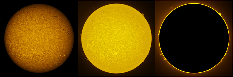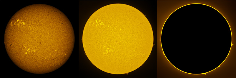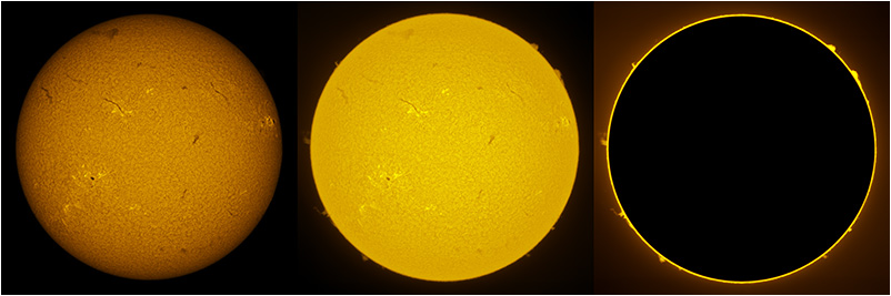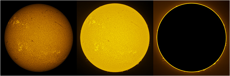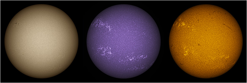 SUN (20220611) WL, CaK & H-alpha (08:00 UTC). TV101 F/5.4, LUNT 1200 CaK Module, SM60, BF30, PGR GRASSHOPPER 3 GS3-U3-28S4M