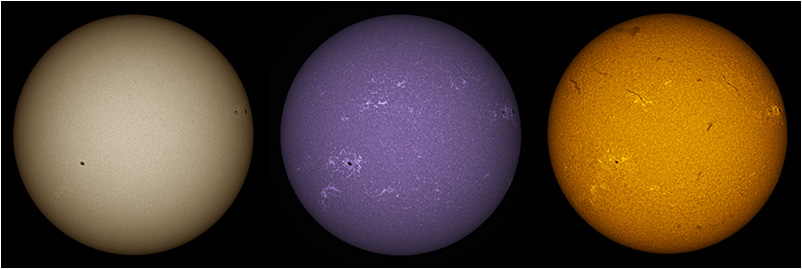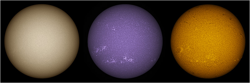 SUN (20220618) WL, CaK & H-alpha (08:00 UTC). TV101 F/5.4, LUNT 1200 CaK Module, SM60, BF30, PGR GRASSHOPPER 3 GS3-U3-28S4M