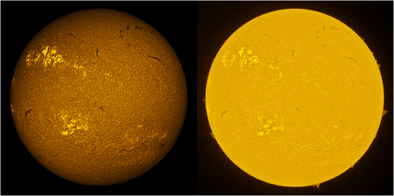 SUN (20220618) WL & H-alpha. LUNT152 F/6, B3400, X2 Barlow, PGR GRASSHOPPER 3 GS3-U3-28S4M