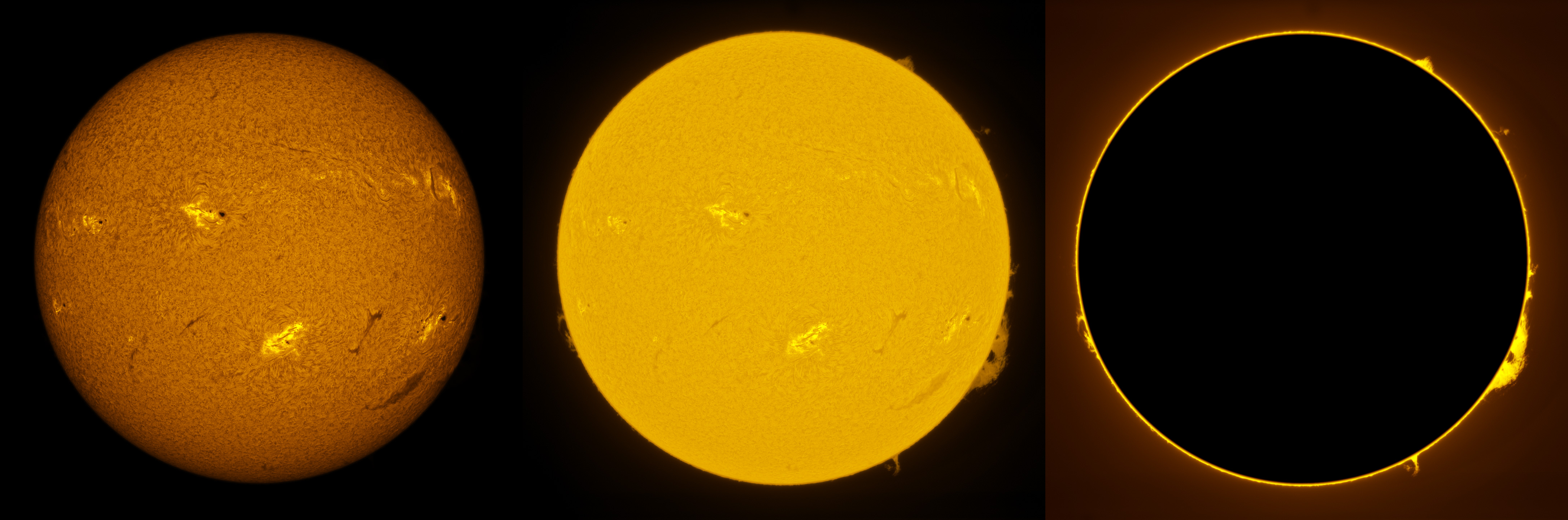 SUN (20220728) WL, CaK & H-alpha (08:00 UTC). TV101 F/5.4, LUNT 1200 CaK Module, SM60, BF30, PGR GRASSHOPPER 3 GS3-U3-28S4M