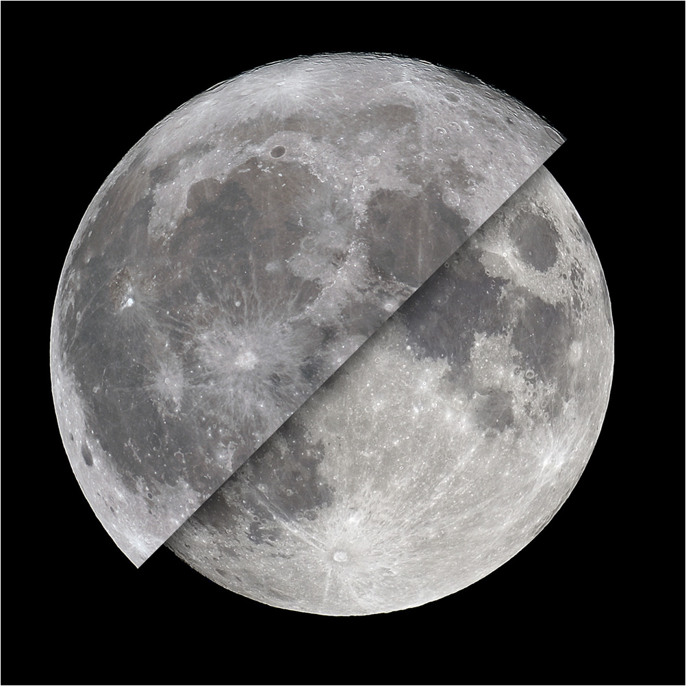 FULL MOON at Perigee & Apogee (20110319/20090606). Takahashi FS128mm F/8.1, Canon 350D, Median Sum 10 images