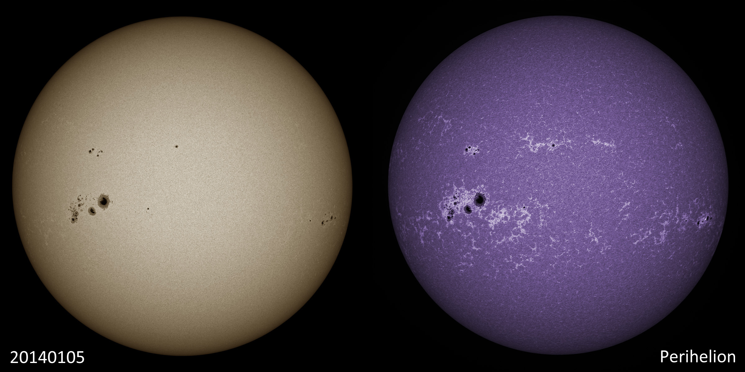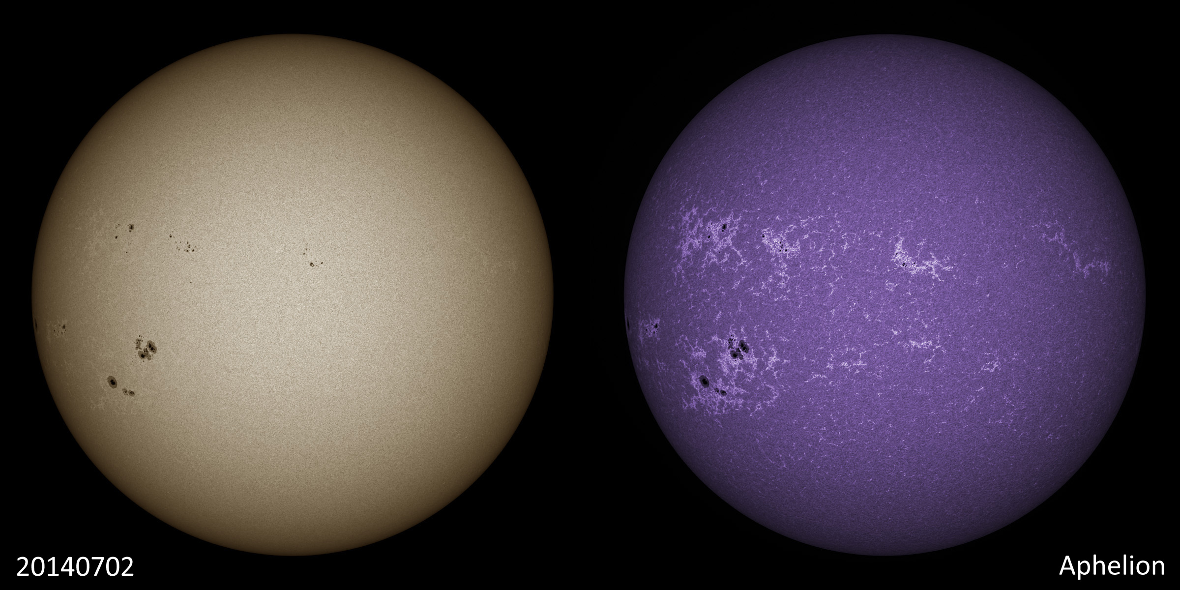 SUN (PERIHELION & APHELION) (20140105/20140702) TV101 F/5.4, 2" Lunt Solar Wedge, LUNT 1200 CaK Module, PGR GRASSHOPPER 3