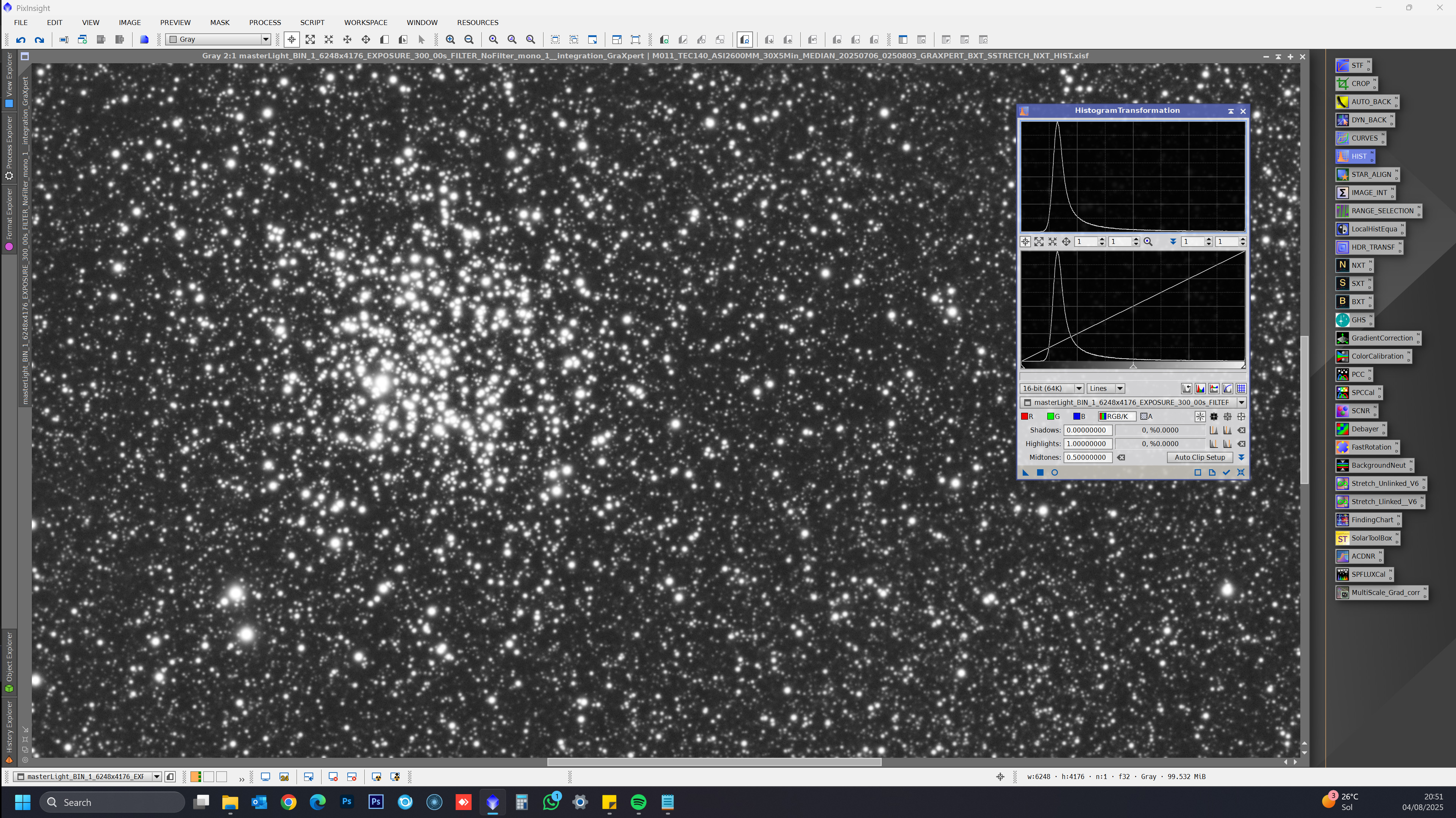 ![]() FULL SIZE FULL SIZE (ANNOTATED) PHOTOSHOP CC PHOTOSHOP CC M022. 95min (19x5min). TEC140 F/7, ASI2600MM, Median, Paramount ME (81% MOON) ![]() FULL SIZE FULL SIZE (ANNOTATED) M092. 80min (16x5min). TEC140 F/7, ASI2600MM, Median, Paramount ME (90% MOON) ![]() FULL SIZE FULL SIZE (ANNOTATED) PIXINSIGHT, PIXINSIGHT M011. 150min (30x5min). TEC140 F/7, ASI2600MM, Median, Paramount ME (83% & 74% MOON) FULL SIZE FULL SIZE (ANNOTATED) PIXINSIGHT PIXINSIGHT M011. 70min (14x5min). TEC140 F/7, ASI2600MM, Median, Paramount ME (83% MOON) ![]() FULL SIZE FULL SIZE (ANNOTATED) FULL SIZE (PIXINSIGHT) FULL SIZE (PS CC) M013. 115min (23x5min). TEC140 F/7, ASI2600MM, Median, Paramount ME (92% MOON) FULL SIZE FULL SIZE (NEGATIVE) FULL SIZE (ANNOTATED) PIXINSIGHT PIXINSIGHT PIXINSIGHT M013. 55min (11x5min). TEC140 F/7, ASI2600MM, Median, Paramount ME ![]() FULL SIZE (POSITIVE) FULL SIZE (NEGATIVE) FULL SIZE (ANNOTATED) FULL SIZE (ANNOTATED) M013. 60min (12x5min). AP130 F/6, FF, STL11000, Median, DDP, Paramount ME ![]() FULL SIZE FULL SIZE (ANNOTATED) FULL SIZE (ANNOTATED) M015. 90min (18x5min). AP130 F/6, FF, STL11000, Median, DDP, Paramount ME (MOON 63%) ![]() FULL SIZE FULL SIZE (BlurXterminator) YOUTUBE VIDEO M022. 70min (14x5min). AP130 F/6, FF, STL11000, Median, DDP, Paramount ME ![]() FULL SIZE (POSITIVE) FULL SIZE (NEGATIVE) FULL SIZE (MOSAIC) M011. 150min (30x5min). TMB175 F/8, FF, STL11000, Median, DDP, Paramount ME FULL SIZE M011. 60min (12x5min). AP130 F/6, FF, STL11000, Median, DDP, Paramount ME FULL SIZE FULL SIZE (BlurXterminator) YOUTUBE VIDEO M011. 120min (24x5min). AP130 F/6, FF, STL11000, Median, DDP, Paramount ME ![]() FULL SIZE (POSITIVE) FULL SIZE (NEGATIVE) FULL SIZE (MOSAIC) YOUTUBE VIDEO YOUTUBE VIDEO M013. 195min (39x5min). TMB152 F/8, FF, STL11000, Median, DDP, Paramount ME (89% MOON) ![]() FULL SIZE (POSITIVE) FULL SIZE (NEGATIVE) FULL SIZE (MOSAIC) M013. 180min (36x5min). TMB175 F/8, FF, STL11000, Median, DDP, Paramount ME ![]() FULL SIZE (POSITIVE) FULL SIZE (NEGATIVE) FULL SIZE (MOSAIC) YOUTUBE VIDEO M022. 50min (10x5min). TMB175 F/8, FF, STL11000, Median, DDP, Paramount ME ![]() FULL SIZE (POSITIVE) FULL SIZE (NEGATIVE) FULL SIZE (MOSAIC) M092. 90min (18x5min). TMB175 F/8, FF, STL11000, Median, DDP, Paramount ME YOUTUBE VIDEO ![]() FULL SIZE (POSITIVE) FULL SIZE (NEGATIVE) FULL SIZE (MOSAIC) M056. 75min (15x5min). TMB175 F/8, FF, STL11000, Median, DDP, Paramount ME YOUTUBE VIDEO ![]() FULL SIZE (POSITIVE) FULL SIZE (NEGATIVE) FULL SIZE (MOSAIC) YOUTUBE VIDEO M071. 265min (53x5min). TMB175 F/8, FF, STL11000, Median, DDP, Paramount ME FULL SIZE FULL SIZE M071. 125min (25x5min). TMB175 F/8, FF, STL11000, Median, DDP, Paramount ME YOUTUBE VIDEO ![]() FULL SIZE (POSITIVE) FULL SIZE (NEGATIVE) FULL SIZE (MOSAIC) YOUTUBE VIDEO M011. 60min (12x5min). TMB175 F/8, FF, STL11000, Median, DDP, Paramount ME FULL SIZE M011. 40min (8x5min). TMB175 F/8, FF, STL11000, Median, DDP, Paramount ME YOUTUBE VIDEO ![]() FULL SIZE (POSTIVE) FULL SIZE (NEGATIVE) FULL SIZE (MOSAIC) FULL SIZE (ANNOTATED PIXINSIGHT) M013. 60min (12x5min). TMB175 F/8, FF, STL11000, Median, DDP, Paramount ME FULL SIZE FULL SIZE M013. 75min (15x5min). TMB175 F/8, FF, STL11000, Median, DDP, Paramount ME YOUTUBE VIDEO (FIRST LIGHT) ![]() FULL SIZE (POSITIVE) FULL SIZE (NEGATIVE) FULL SIZE (MOSAIC) M013. 305min (61x5min). TEC140 F/7, FF, APOGEE ALTA U8300, Median, DDP, Paramount ME FULL SIZE (POSITIVE) FULL SIZE (NEGATIVE) FULL SIZE (MOSAIC) M013. 240min (48x5min). TEC140 F/7, FF, APOGEE ALTA U8300, Median, DDP, Paramount ME FULL SIZE (POSITIVE) FULL SIZE (NEGATIVE) FULL SIZE (NEGATIVE) M013. 90min (18x5min). TEC140 F/7, FF, APOGEE ALTA U8300, Median, DDP, Paramount ME ![]() FULL SIZE (POSITIVE) FULL SIZE (NEGATIVE) FULL SIZE (POSITIVE/NEGATIVE) FULL SIZE (MOSAIC) M045. 555min (111x5min) Luminance. AP130 F/6, STL11002M, self-guided, Median, DDP, Paramount ME ![]() FULL SIZE M013. 1045min (209x5min) Luminance. TMB152mm F/8, STL11002M, self-guided, Median, DDP, Paramount ME FULL SIZE (POSITIVE) FULL SIZE (NEGATIVE) FULL SIZE (MOSAIC) FULL SIZE (RGB), FULL SIZE (RGB) M013. 880min (176x5min) Luminance. TMB152mm F/8, STL11002M, self-guided, Median, DDP, Paramount ME ![]() FULL SIZE (positive) FULL SIZE (negative) FULL SIZE (positive/negative) FULL SIZE (mosaic) M045. 340min (68x5min) Luminance. AP130 F/6, STL11002M, self-guided, Median, DDP, Paramount ME ![]() FULL SIZE (positive) FULL SIZE (positive) FULL SIZE (negative) FULL SIZE (negative) FULL SIZE (positive/negative) FULL SIZE (positive/negative) FULL SIZE (mosaic) FULL SIZE (mosaic) M045. 165min (33x5min) Luminance. AP130 F/6, STL11002M, self-guided, Median, DDP, Paramount ME ![]() FULL SIZE (mosaic) FULL SIZE (positive) FULL SIZE (negative) M013. 715min (143x5min) Luminance. TMB152mm F/8, STL11002M, self-guided, Median, DDP, Paramount ME ![]() FULL SIZE (positive) FULL SIZE (negative) FULL SIZE M013. 440min (88x5min) Luminance. AP130 F/6 , STL11002M, self-guided, Median, DDP, Paramount ME FULL SIZE M013. 200min (40x5min) Luminance. AP130 F/6 , STL11002M, self-guided, Median, DDP, Paramount ME ![]() FULL SIZE M013. 770min (154x5min) Luminance. TMB152mm F/8, STL11002M, self-guided, Median, DDP, Paramount ME FULL SIZE M013. 480min (96x5min) Luminance. TMB152mm F/8, STL11002M, self-guided, Median, DDP, Paramount ME FULL SIZE M013. 150min (30x5min) Luminance. TMB152mm F/8, STL11002M, self-guided, Median, DDP, Paramount ME FULL SIZE M013. 90min (18x5min) Luminance. TMB152mm F/8, STL11002M, self-guided, Median, DDP, Paramount ME ![]() FULL SIZE M013. 450min (90x5min) Luminance. TMB152mm F/8, STL11002M, self-guided, SDMask, DDP, Paramount ME FULL SIZE M013. 180min (36x5min) Luminance. TMB152mm F/8, STL11002M, self-guided, SDMask, DDP, Paramount ME ![]() FULL SIZE M013. 60min 12x5min) Luminance. AP130 F/6, STL11002M, self-guided, Median, DDP, Paramount ME FULL SIZE M013. 145min (29x5min) Luminance. AP130 F/6, STL11002M, self-guided, Median, DDP, Paramount ME ![]() FULL SIZE M002. 1