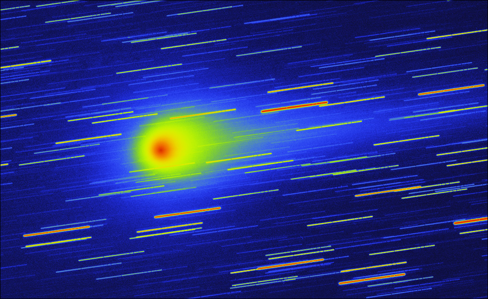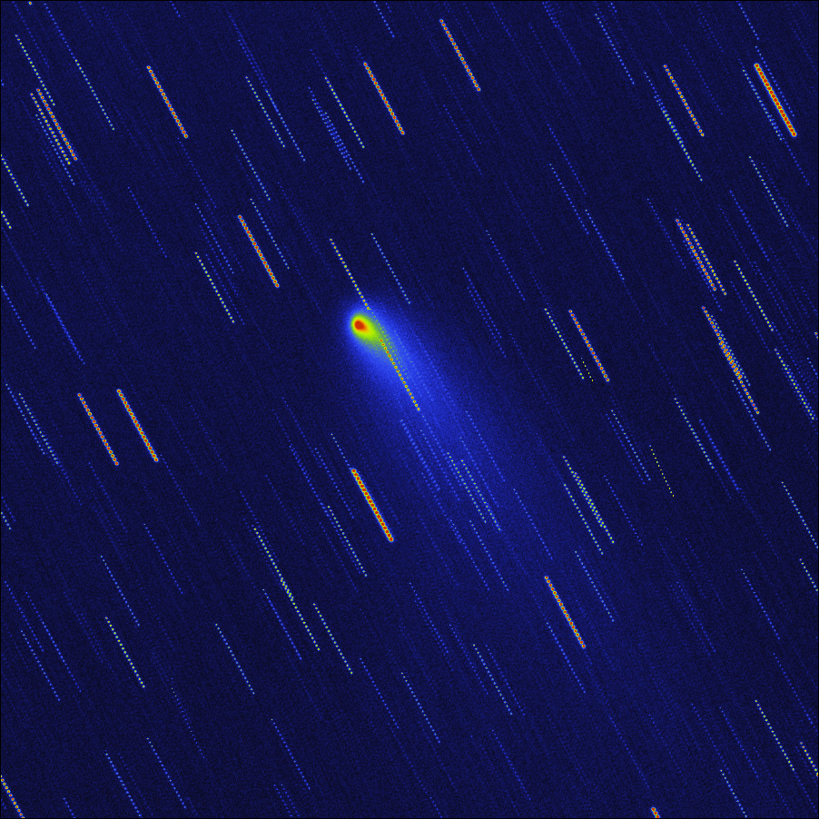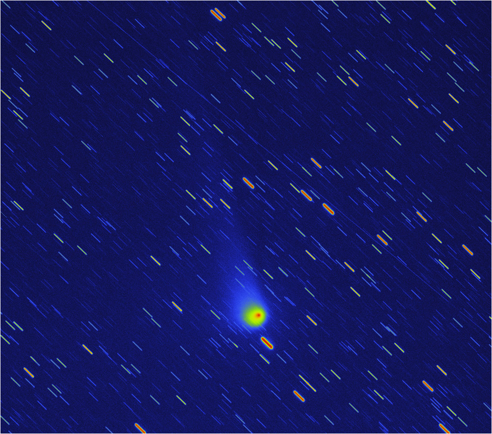 C/2014 E2 Jacques (20140826 23:45UTC), false color. AP130 F/6 STL11000, 90x1min, Sum, DDP. Paramount ME