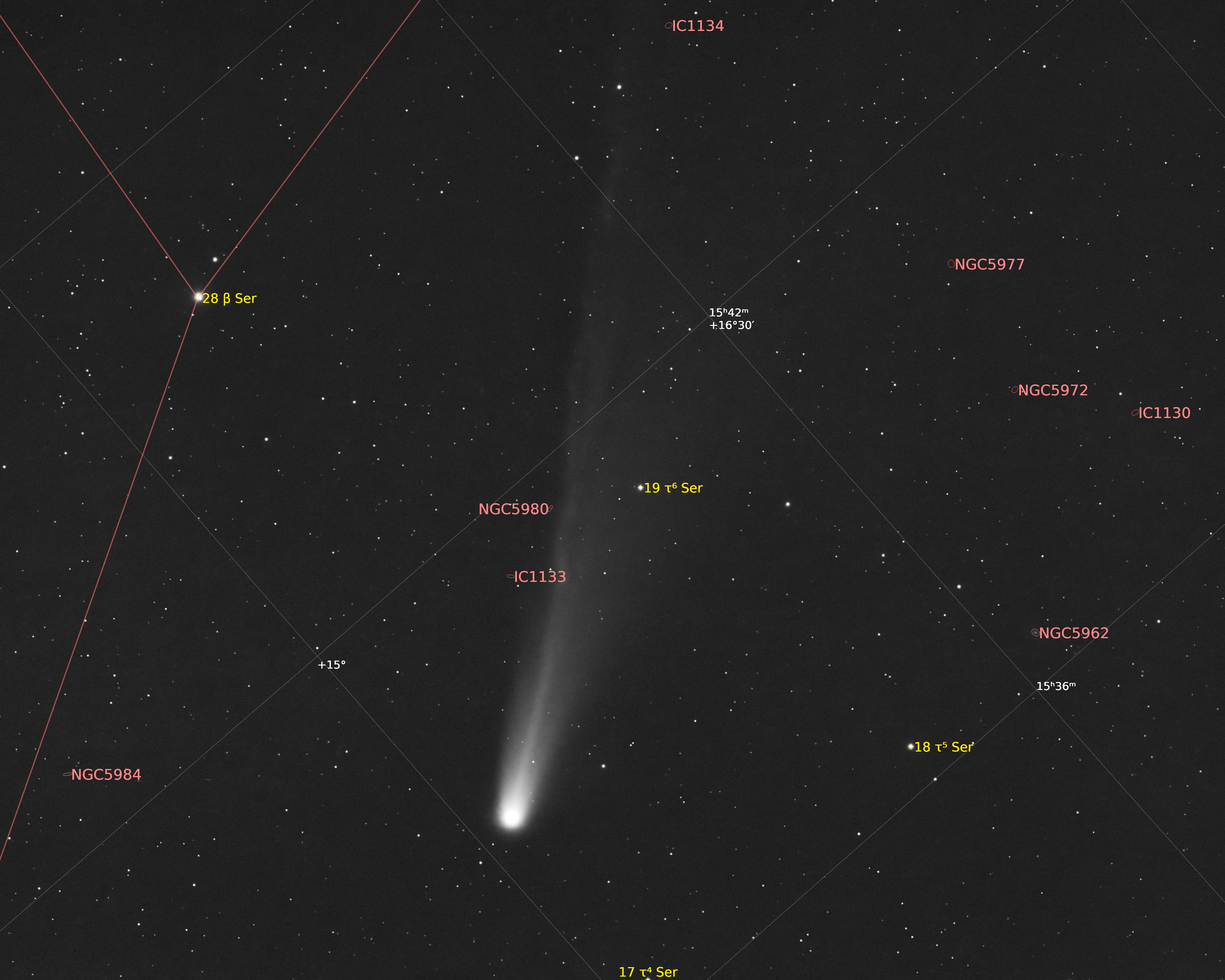 C/2012 F6 Lemmon (20130707 21:38UTC). AP130 F/6 STL11000, 16x5min, Sum, negative image. Paramount ME