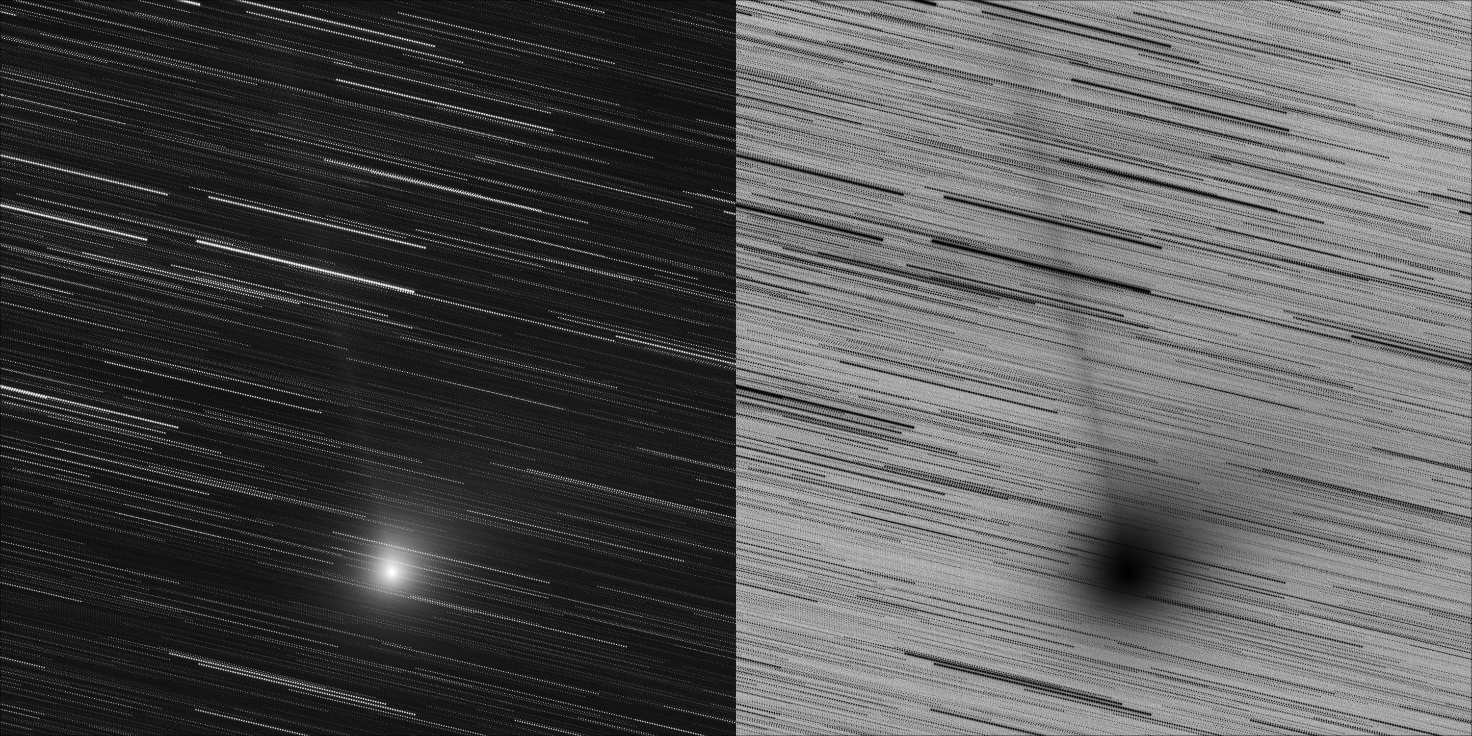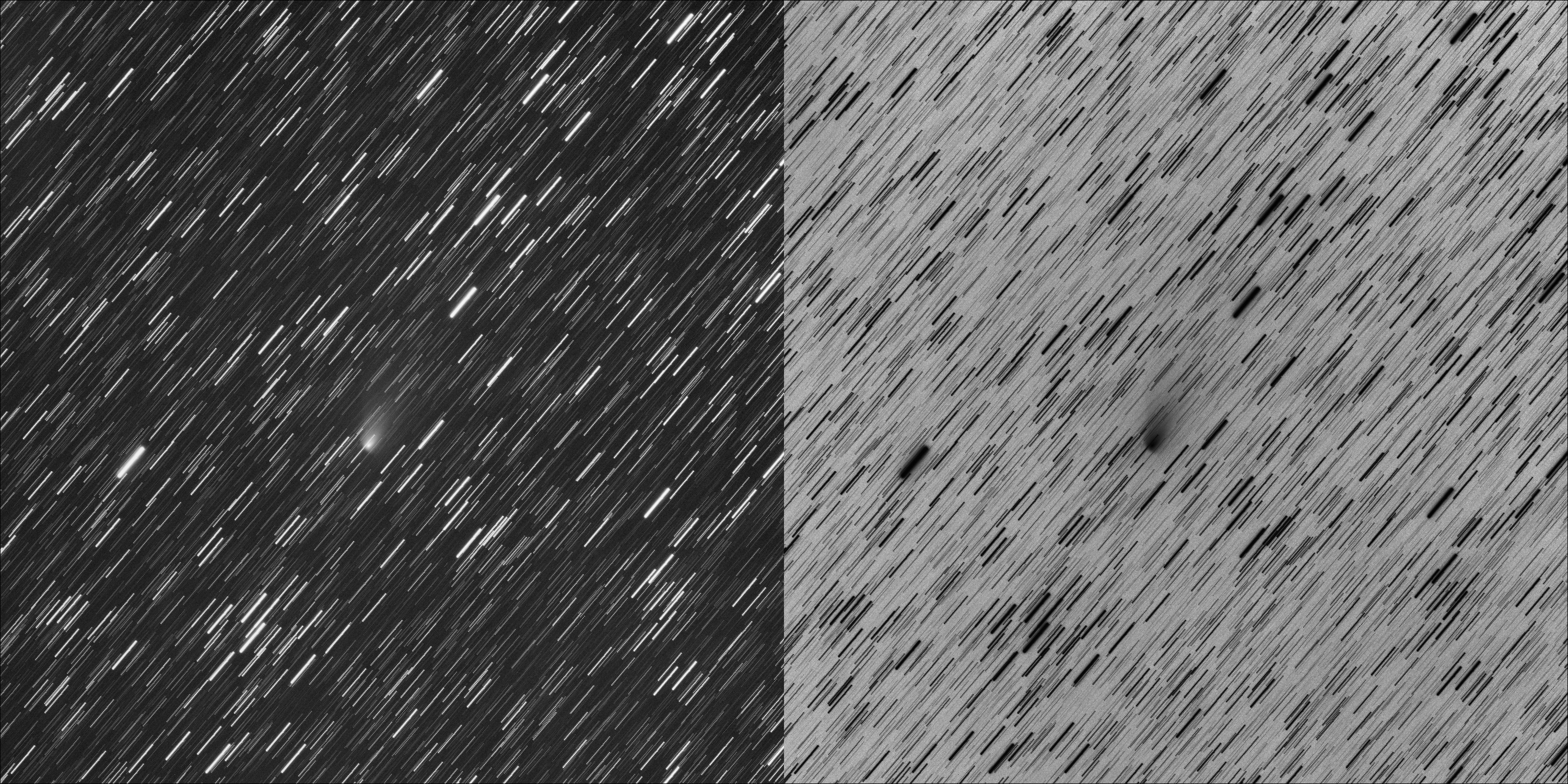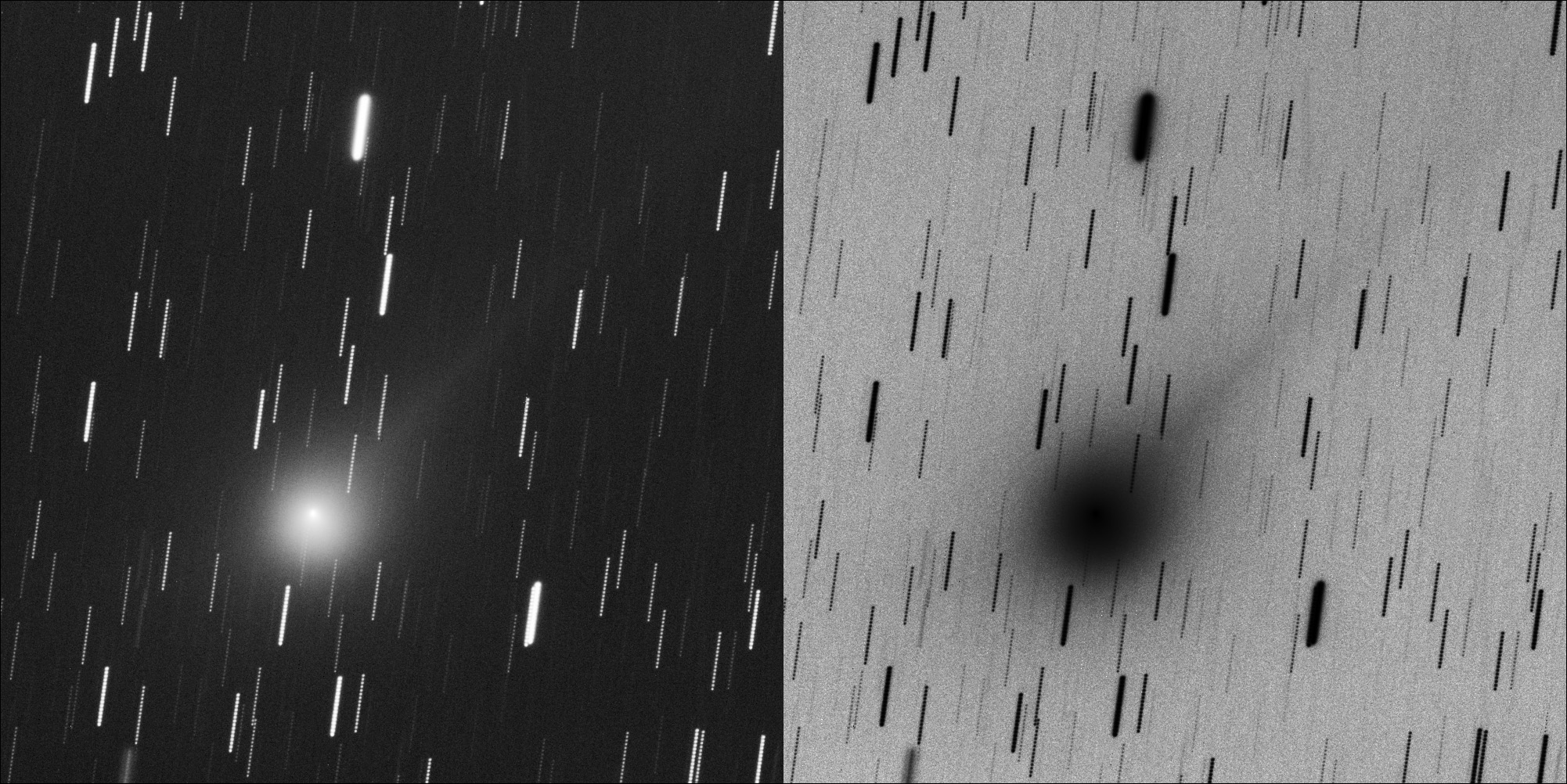 C/2014 Q2 Lovejoy (20150124 20:30UTC). TMB152 F/7.9 STL11000, 90x1min, Sum, DDP. Paramount ME (negative image)