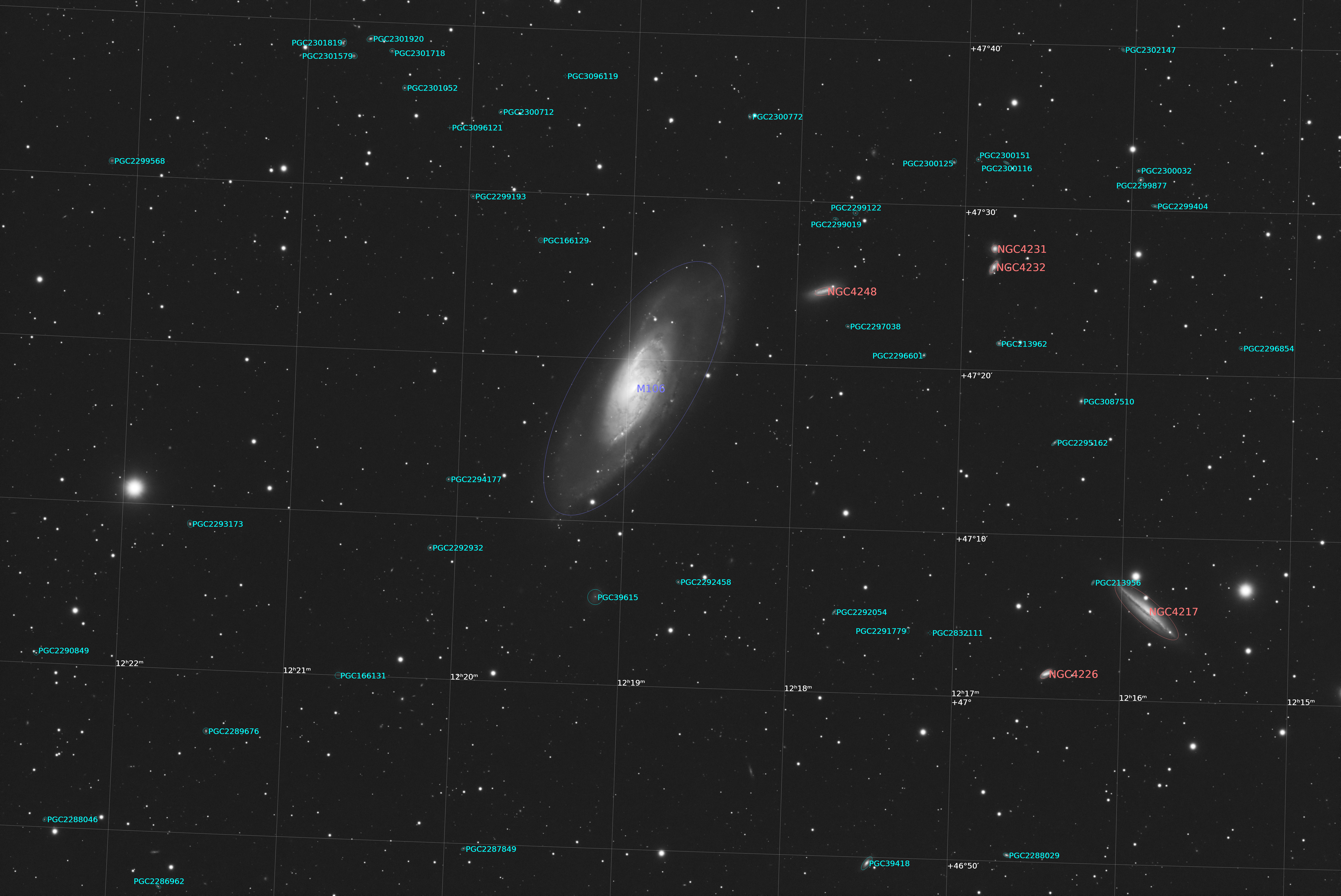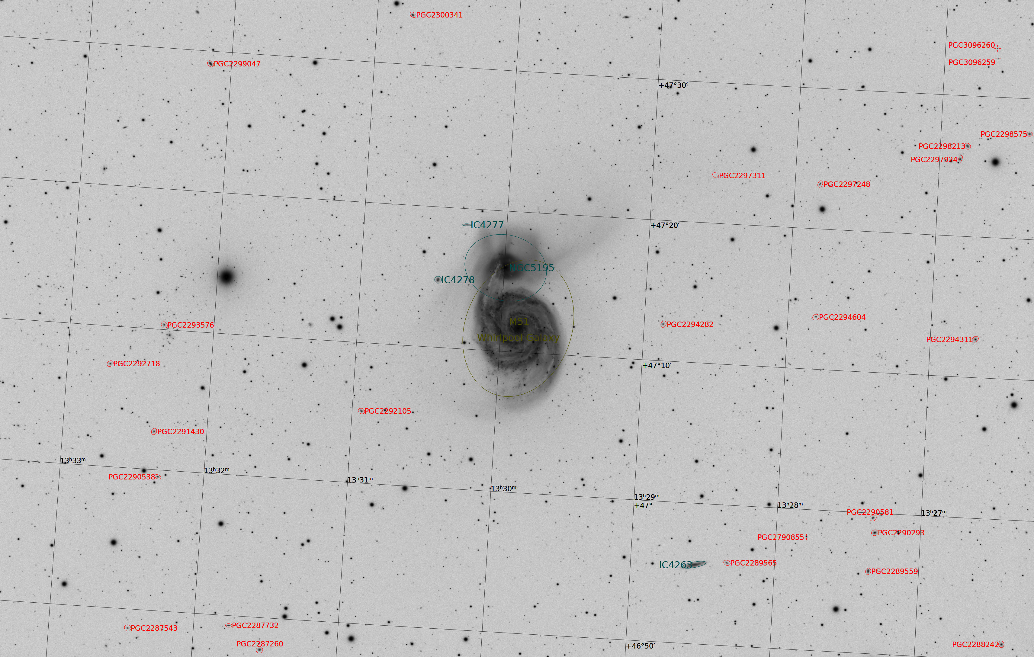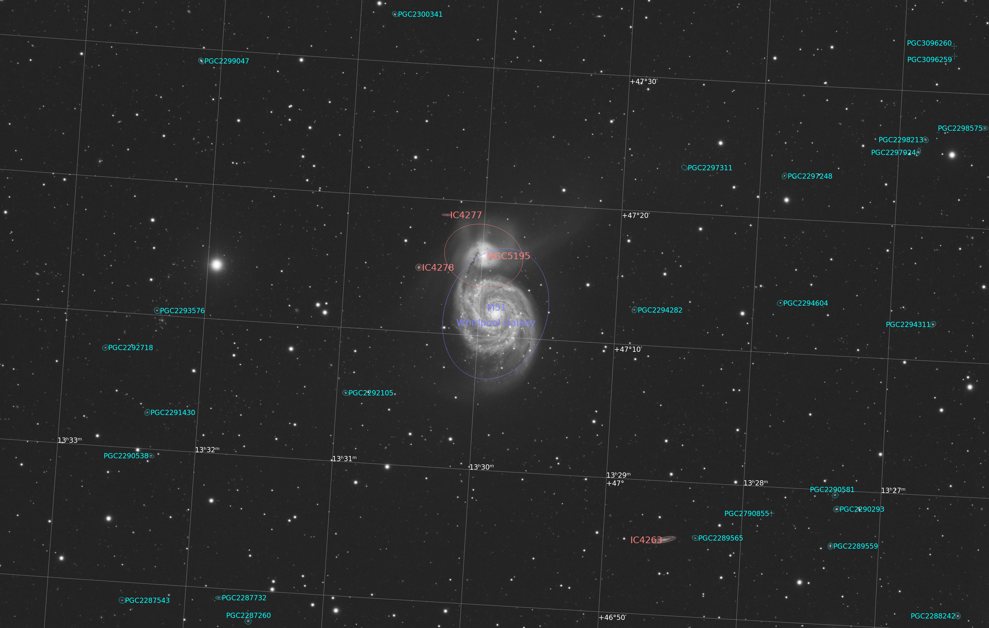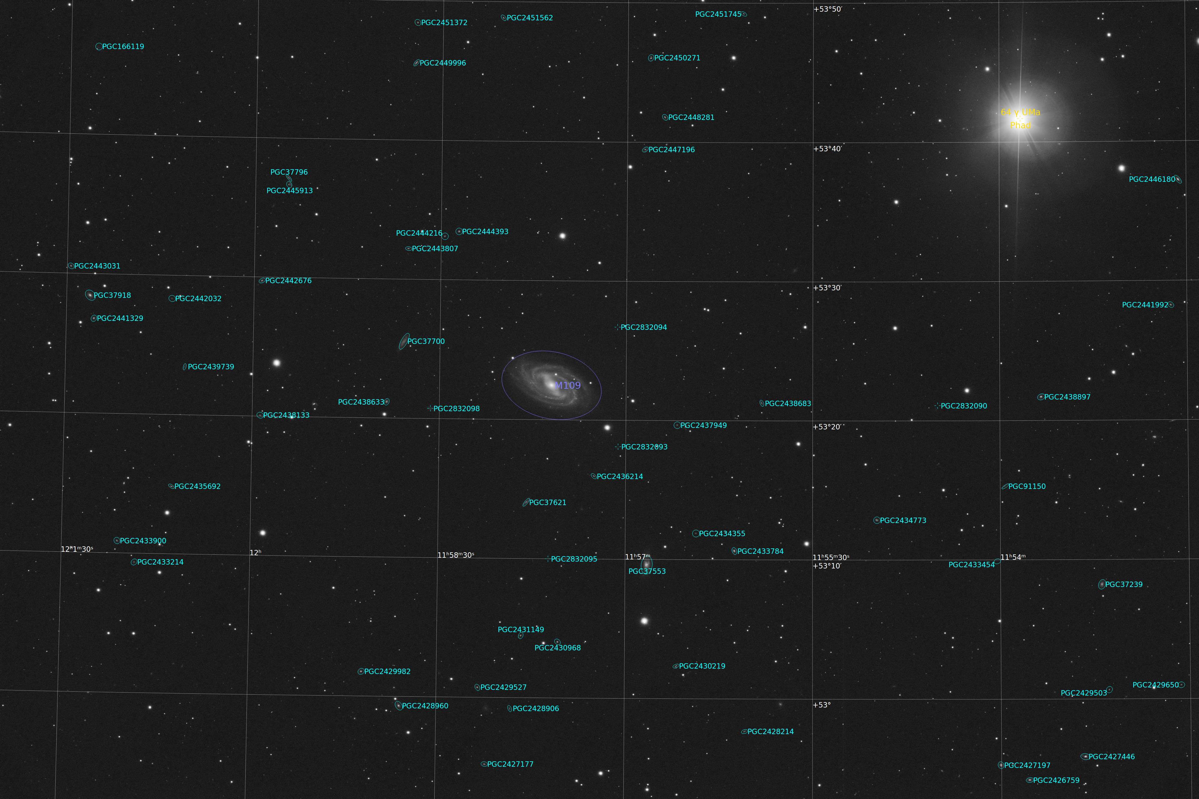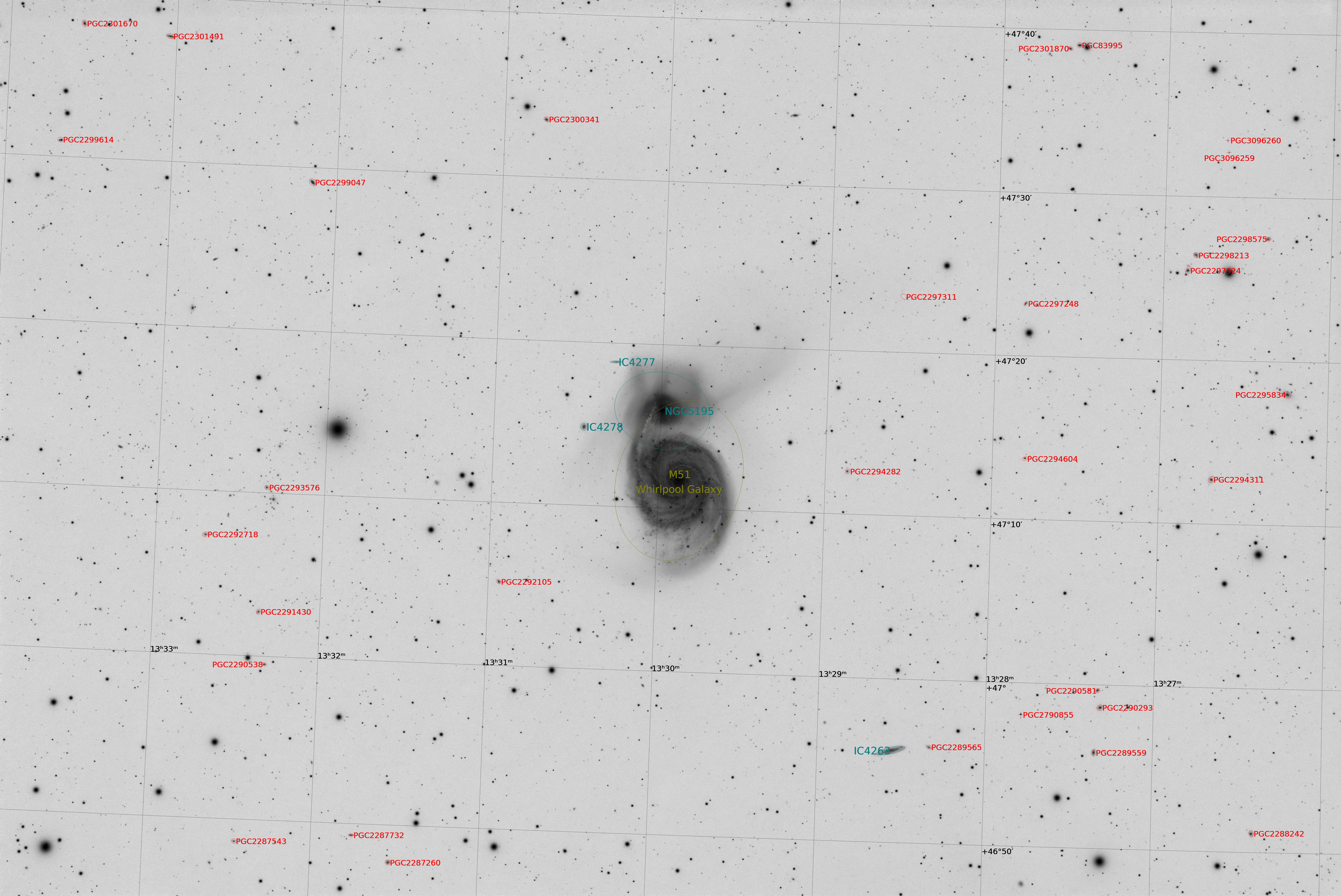 ![]() FULL SIZE FULL SIZE (ANNOTATED) FULL SIZE (NEGATIVE) FULL SIZE (ANNOTATED NEGATIVE) ABELL 2151 (Hercules Cluster). 235Min (47x5Min). TEC140 F/7, ZWO ASI2600MM, Paramount ME FULL SIZE FULL SIZE (ANNOTATED) ABELL 2151 (Hercules Cluster). 115Min (23x5Min). TEC140 F/7, ZWO ASI2600MM, Paramount ME. ![]() FULL SIZE FULL SIZE (NEGATIVE) FULL SIZE (ANNOTATED) PIXINSIGHT NGC4565. 115Min (23x5Min). TEC140 F/7, ZWO ASI2600MM, Paramount ME. ![]() FULL SIZE FULL SIZE (ANNOTATED) M106. 205Min (41x5Min). TEC140 F/7, ZWO ASI2600MM, Paramount ME FULL SIZE FULL SIZE (ANNOTATED) PIXINSIGHT PIXINSIGHT M106. 205Min (41x5Min). TEC140 F/7, ZWO ASI2600MM, Paramount ME FULL SIZE FULL SIZE (ANNOTATED) FULL SIZE (PIXINSIGHT) FULL SIZE (PIXINSIGHT) FULL SIZE (PIXINSIGHT) M106. 125Min (25x5Min). TEC140 F/7, ZWO ASI2600MM, Paramount ME. ![]() FULL SIZE FULL SIZE (ANNOTATED) M101. 180Min (36x5Min). TEC140 F/7, ZWO ASI2600MM, Paramount ME FULL SIZE FULL SIZE (ANNOTATED) PIXINSIGHT PIXINSIGHT M101. 180Min (36x5Min). TEC140 F/7, ZWO ASI2600MM, Paramount ME FULL SIZE FULL SIZE (ANNOTATED) FULL SIZE (PIXINSIGHT) FULL SIZE (PHOTOSHOP CC) M101. 115Min (23x5Min). TEC140 F/7, ZWO ASI2600MM, Paramount ME. ![]() FULL SIZE (MOSAIC) FULL SIZE (ANNOTATED) M051. 320Min (64x5Min). TEC140 F/7, ZWO ASI2600MM, Paramount ME ![]() FULL SIZE FULL SIZE FULL SIZE (ANNOTATED) FULL SIZE (ANNOTATED) FULL SIZE (PIXINSIGHT) FULL SIZE (PIXINSIGHT) FULL SIZE (PIXINSIGHT) FULL SIZE (PIXINSIGHT) FULL SIZE (PIXINSIGHT) FULL SIZE (PIXINSIGHT) FULL SIZE (PIXINSIGHT) FULL SIZE (PIXINSIGHT) FULL SIZE (PHOTOSHOP CC) M051. 320Min (64x5Min). TEC140 F/7, ZWO ASI2600MM, Paramount ME FULL SIZE FULL SIZE (ANNOTATED) FULL SIZE (PHOTOSHOP CC) FULL SIZE (PIXINSIGHT) FULL SIZE (PIXINSIGHT) FULL SIZE (PIXINSIGHT) FULL SIZE (PIXINSIGHT) M051. 215Min (43x5Min). TEC140 F/7, ZWO ASI2600MM, Paramount ME FULL SIZE FULL SIZE (ANNOTATED) FULL SIZE (PIXINSIGHT) M051. 195Min (39x5Min). TEC140 F/7, ZWO ASI2600MM, Paramount ME. 99.5% & 92% MOON FULL SIZE FULL SIZE (ANNOTATED) M051. 105Min (21x5Min). TEC140 F/7, ZWO ASI2600MM, Paramount ME. 99.5% MOON ![]() FULL SIZE FULL SIZE FULL SIZE (MOSAIC) FULL SIZE (ANNOTATED) M051. 39h. TMB175 F/8, TMB152 F/8, TEC140 F/7, STL11000, ALTA U8300, Paramount ME FULL SIZE (POSITIVE) FULL SIZE (NEGATIVE) FULL SIZE (ANNOTATED) FULL SIZE (ANNOTATED) M051. 950min (95X10Min). TMB175 F/8, STL11000, Median, Paramount ME ![]() FULL SIZE (POSITIVE) FULL SIZE (NEGATIVE) FULL SIZE (ANNOTATED) FULL SIZE (ANNOTATED) M109. 90min (9X10Min). TMB175 F/8, STL11000, Median, Paramount ME ![]() FULL SIZE (POSITIVE) FULL SIZE (NEGATIVE) FULL SIZE (ANNOTATED) FULL SIZE (ANNOTATED) Markarian's Chain. 120min (12X10Min). TMB175 F/8, STL11000, Median, Paramount ME ![]() FULL SIZE (POSITIVE) FULL SIZE (NEGATIVE) FULL SIZE (MOSAIC) FULL SIZE (ANNOTATED) FULL SIZE (ANNOTATED) NGC4631. 120min (12X10Min). TMB175 F/8, STL11000, Median, Paramount ME ![]() FULL SIZE (POSITIVE) FULL SIZE (NEGATIVE) FULL SIZE (MOSAIC) FULL SIZE (ANNOTATED) FULL SIZE (ANNOTATED) M106. 270min (27X10Min). TMB175 F/8, STL11000, Median, Paramount ME ![]() FULL SIZE (POSITIVE) FULL SIZE (NEGATIVE) FULL SIZE (MOSAIC) FULL SIZE (ANNOTATED) FULL SIZE (ANNOTATED) YOUTUBE VIDEO M051. 690min (69X10Min). TMB175 F/8, STL11000, Median, Paramount ME FULL SIZE (POSITIVE) FULL SIZE (NEGATIVE) FULL SIZE (ANNOTATED) FULL SIZE (ANNOTATED) YOUTUBE VIDEO M051. 180min (18X10Min). TMB175 F/8, STL11000, Median, Paramount ME ![]() FULL SIZE FULL SIZE (ANNOTATED) FULL SIZE (ANNOTATED) M031. 160min (16X10Min). AP130 F/6, FF, STL11000, Median, DDP, Paramount ME (MOON 63%) ![]() FULL SIZE (POSITIVE) FULL SIZE (NEGATIVE) FULL SIZE (MOSAIC) FULL SIZE (ANNOTATED) FULL SIZE (ANNOTATED) M051. 2340mim (234X10Min) (39h). TMB175 F/8 400Min, TMB152 F/8 1630Min, TEC140 F/7 310Min, STL11000, ALTA U8300, Median, DDP, Paramount ME. FULL SIZE (POSITIVE) FULL SIZE (NEGATIVE) FULL SIZE (MOSAIC) M051. 2340mim (234X10Min) (39h). TMB175 F/8 400Min, TMB152 F/8 1630Min, TEC140 F/7 310Min, STL11000, ALTA U8300, Median, DDP, Paramount ME. ![]() FULL SIZE FULL SIZE FULL SIZE (MOSAIC) FULL SIZE (ANNOTATED) M033. 5310min (531x10min) (88.5h). TMB175 F/8, TMB152 F/8, TEC140 F/7, AP130 F/6, STL11000M, ALTA U8300, Paramount ME FULL SIZE (POSITIVE) FULL SIZE (NEGATIVE) FULL SIZE (MOSAIC) M033. 5310min (531x10min) (88.5h). TMB175 F/8, TMB152 F/8, TEC140 F/7, AP130 F/6, STL11000M, ALTA U8300, Median, DDP, Paramount ME. ![]() FULL SIZE FULL SIZE FULL SIZE (MOSAIC) FULL SIZE (ANNOTATED) M101. 68h. TMB175 F/8, TMB 152mm F/8, TEC140 F/7, SBIG STL11000, APOGEE ALTAU8300, Paramount ME FULL SIZE (POSITIVE) FULL SIZE (NEGATIVE) FULL SIZE (MOSAIC) M101. 3020min (302X10Min) (50.3h). TMB 152mm F/8, STL11002M (241x10min), TEC140 F/7, APOGEE ALTAU8300 (62X10Min), Median, DDP, Paramount ME. ![]() FULL SIZE (BlurXterminator) FULL SIZE (BlurXterminator) FULL SIZE (AstroSharp - First Beta) FULL SIZE (Newest Model) M101. 3020min (302X10Min). TMB 152mm F/8, STL11002M (241x10min), TEC140 F/7, APOGEE ALTAU8300 (62X10Min), Median, DDP, Paramount ME, processed with PixInsight ![]() FULL SIZE (POSITIVE) FULL SIZE (NEGATIVE) FULL SIZE (MOSAIC) FULL SIZE (ANNOTATED) FULL SIZE (ANNOTATED) NGC4565. 690min (69x10min). TMB152 F/8, 45X10Min, MB175 F/8, 24x10Min, STL11000M, Median, DDP, Paramount ME. FULL SIZE (POSITIVE) FULL SIZE (NEGATIVE) FULL SIZE (ANNOTATED) FULL SIZE (ANNOTATED) YOUTUBE VIDEO NGC4565. 240min (24x10min). TMB175 F/8, STL11000M, Median, DDP, Paramount ME. ![]() FULL SIZE (POSITIVE) FULL SIZE (NEGATIVE) FULL SIZE (MOSAIC) ANNOTATED IMAGE (POSITIVE) ANNOTATED IMAGE (NEGATIVE) M081/82. 340min (34x10min). TMB175 F/8, STL11000M, Median, DDP, Paramount ME. FULL SIZE (POSITIVE) FULL SIZE (NEGATIVE) FULL SIZE (MOSAIC) YOUTUBE VIDEO M081/82. 180min (18x10min). TMB175 F/8, STL11000M, Median, DDP, Paramount ME. ![]() FULL SIZE (POSITIVE) FULL SIZE (NEGATIVE) FULL SIZE (MOSAIC) YOUTUBE VIDEO M051. 2340mim (39h). TMB175 F/8 400Min, TMB152 F/8 1630Min, TEC140 F/7 310Min, STL11000