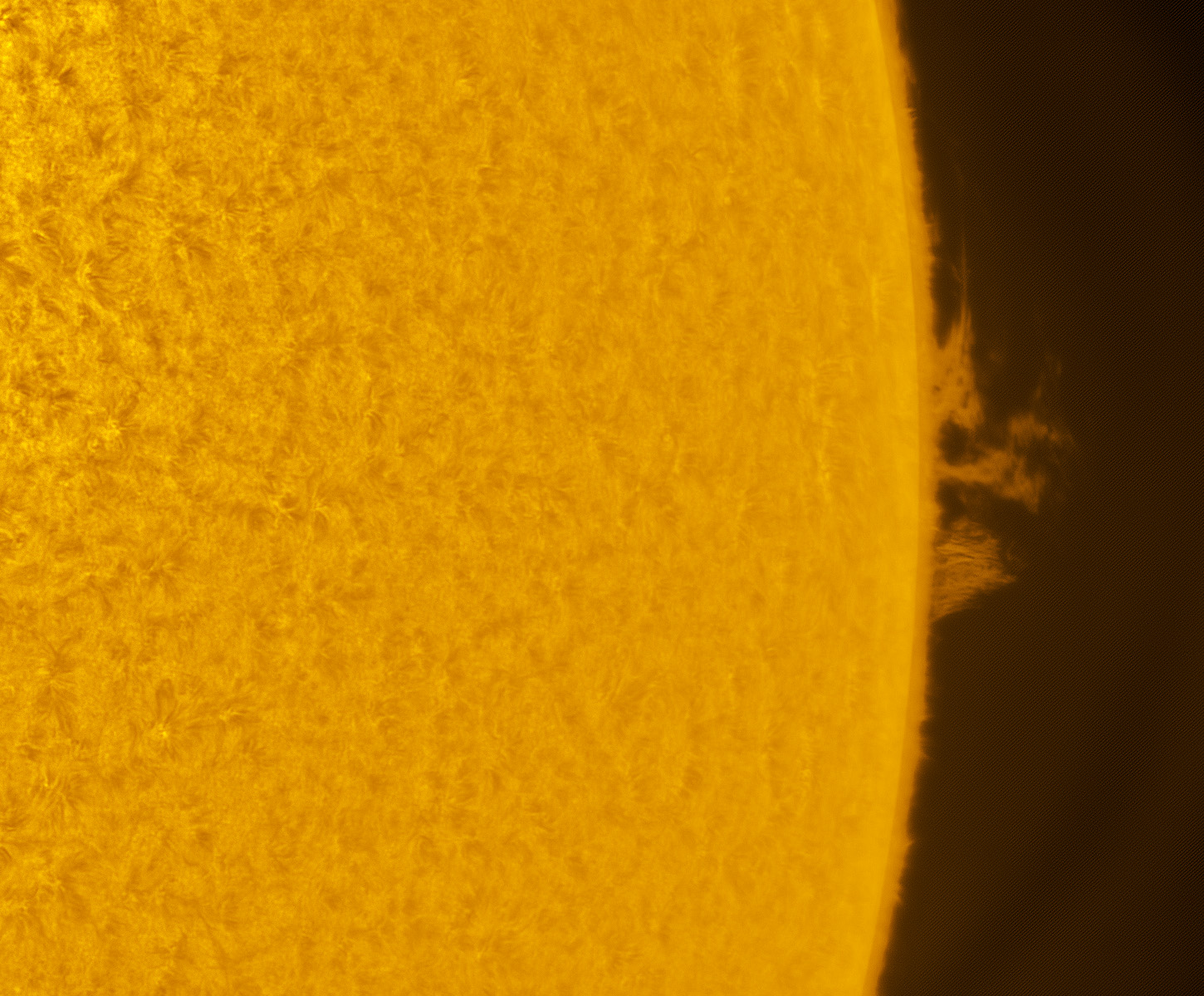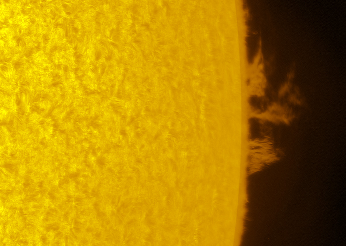 SUN (20190612) H-alpha DISK & PROMS (16:00 UTC). TV101 F/5.4, SM60, BF30, PGR GRASSHOPPER 3 GS3-U3-28S4M