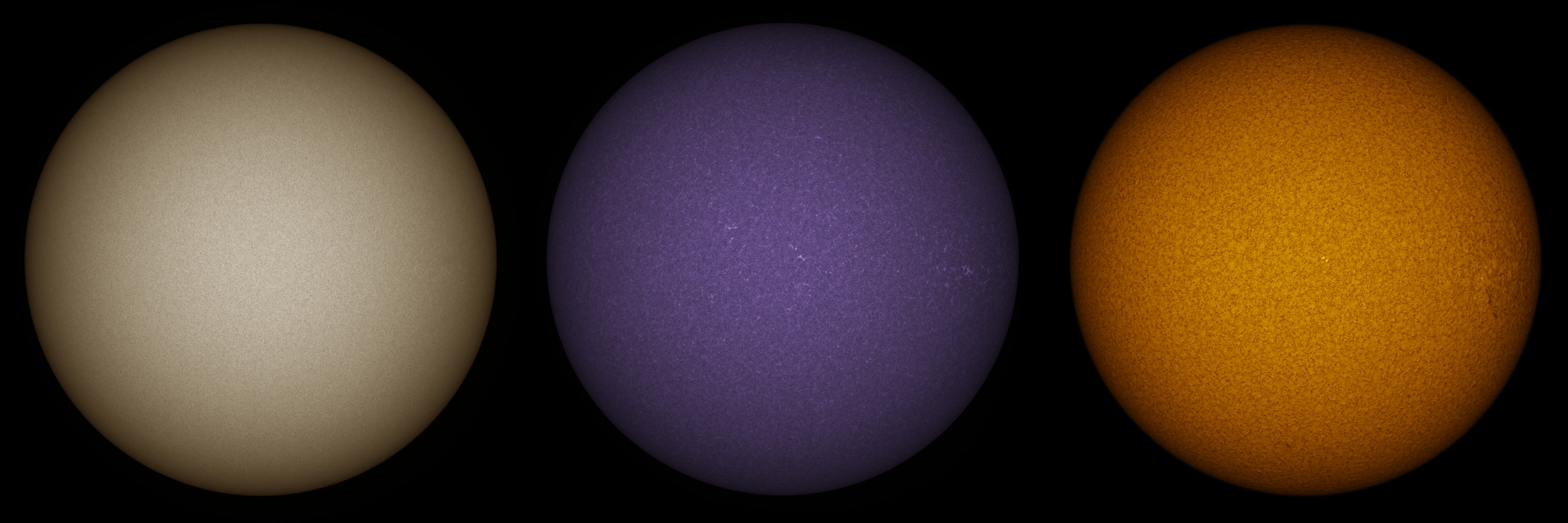 SUN (20190607) WL, CaK & H-alpha (09:00 UTC). TV101 F/5.4, LUNT 1200 CaK Module, SM60, BF30, PGR GRASSHOPPER 3 GS3-U3-28S4M