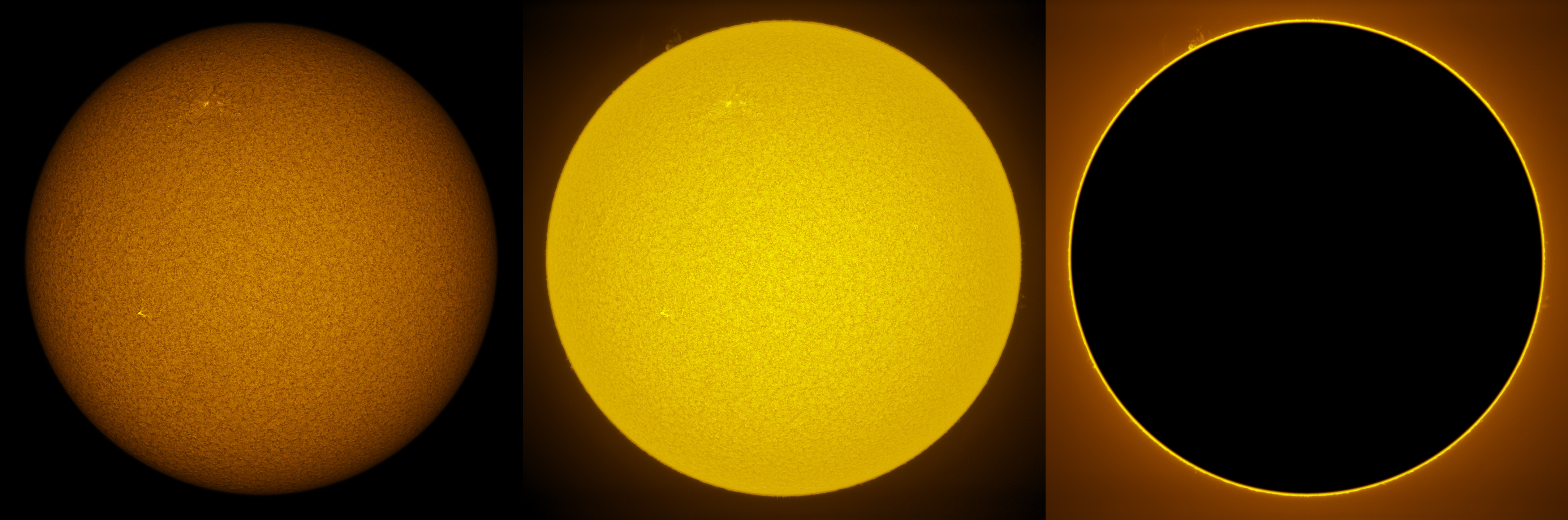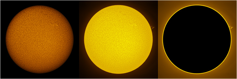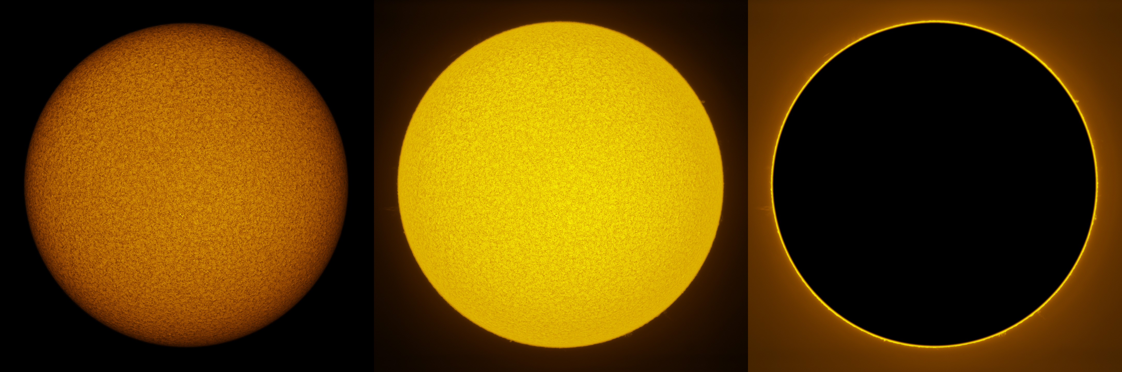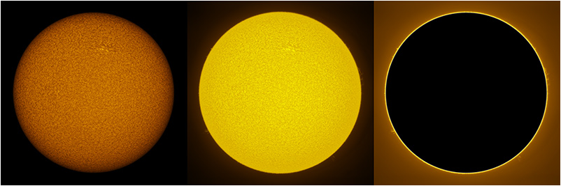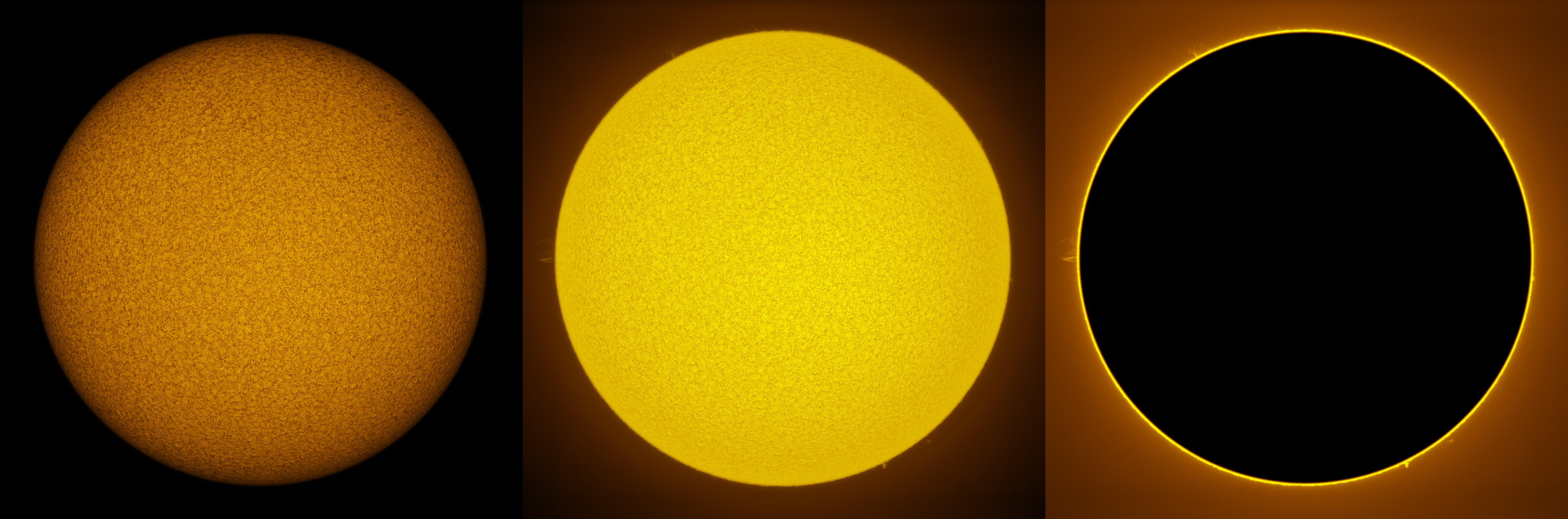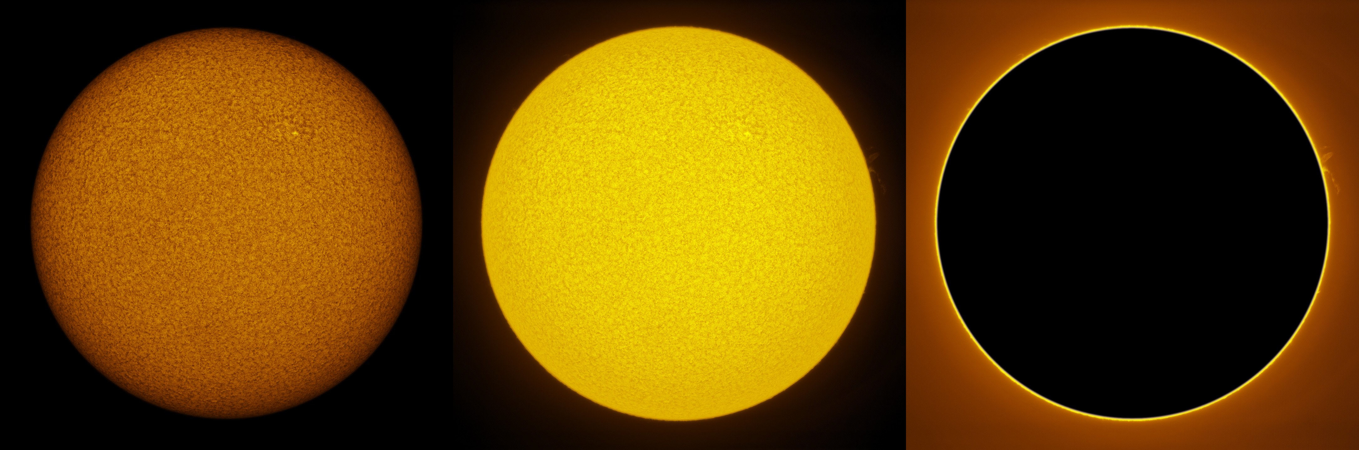 SUN (20200520) WL, CaK & H-alpha (08:30 UTC). TV101 F/5.4, LUNT 1200 CaK Module, SM60, BF30, PGR GRASSHOPPER 3 GS3-U3-28S4M