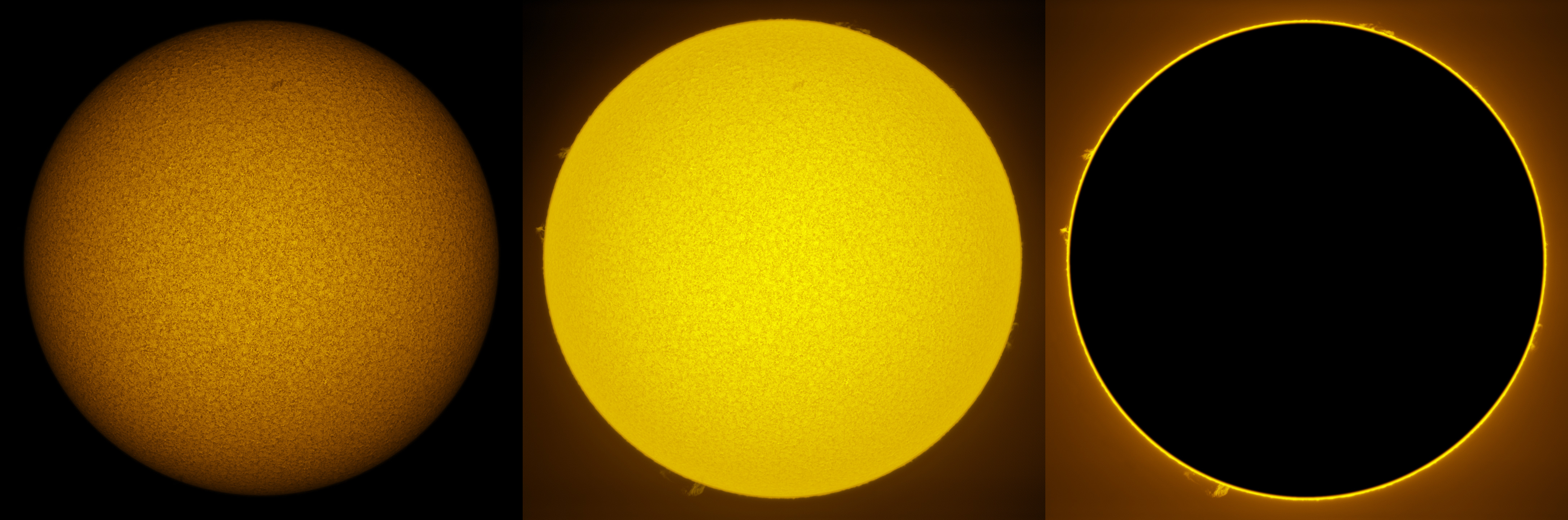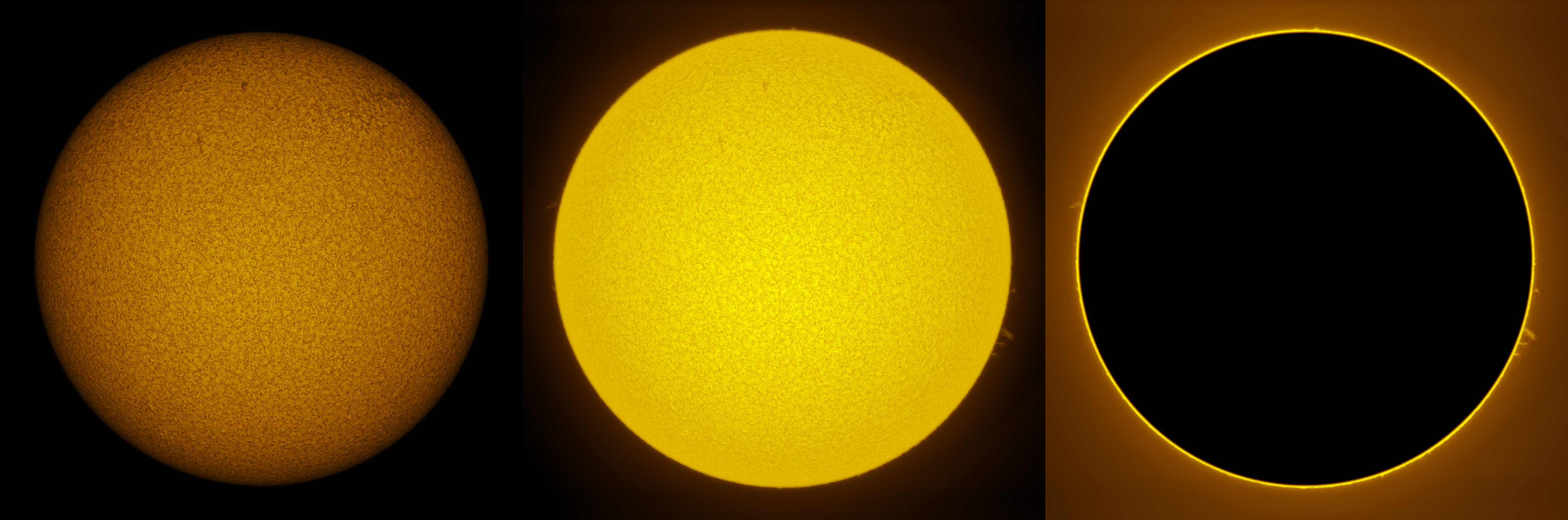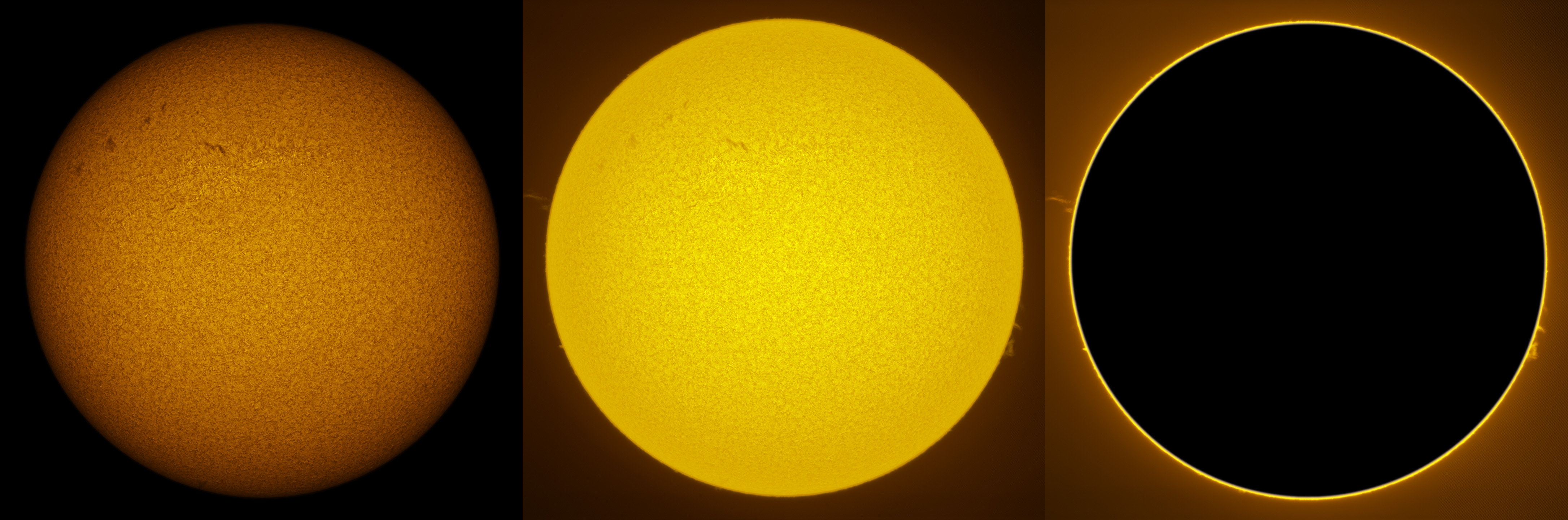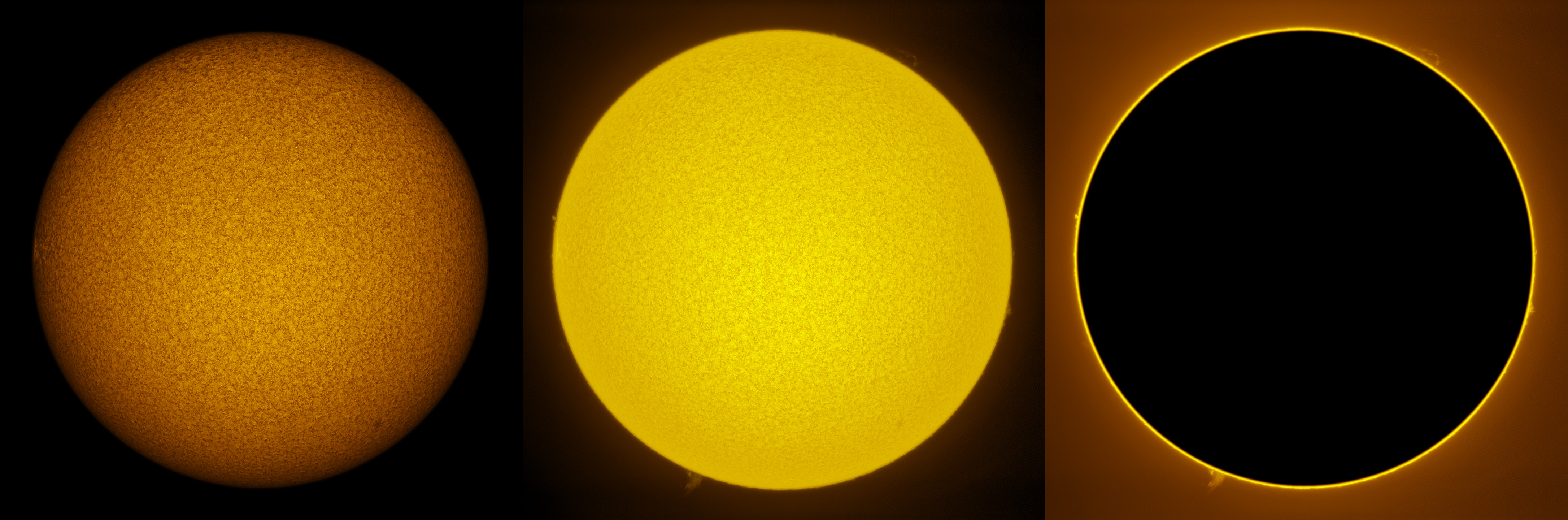 SUN (20200925) WL, CaK & H-alpha (10:00 UTC). TV101 F/5.4, LUNT 1200 CaK Module, SM60, BF30, PGR GRASSHOPPER 3 GS3-U3-28S4
