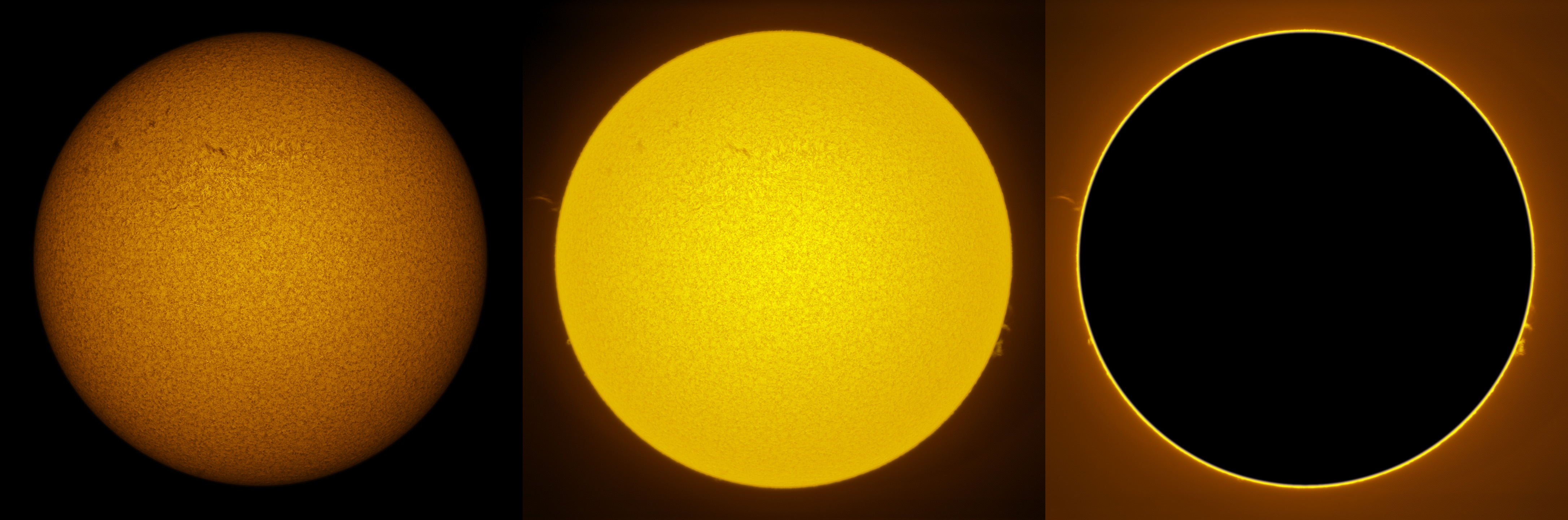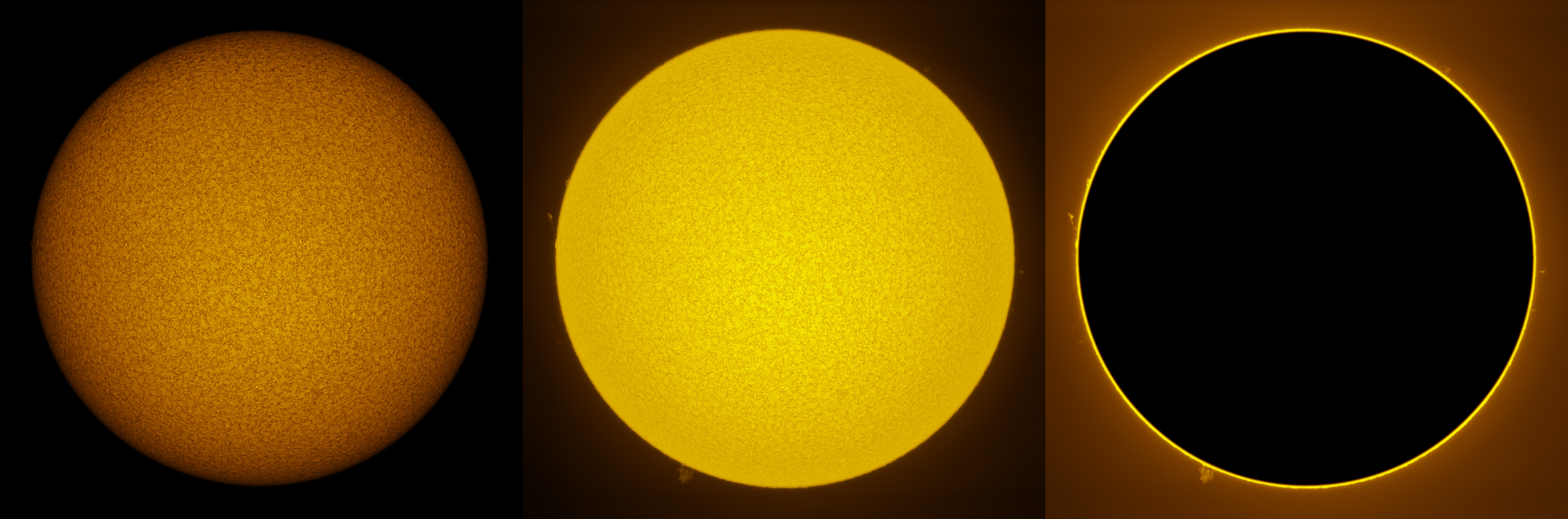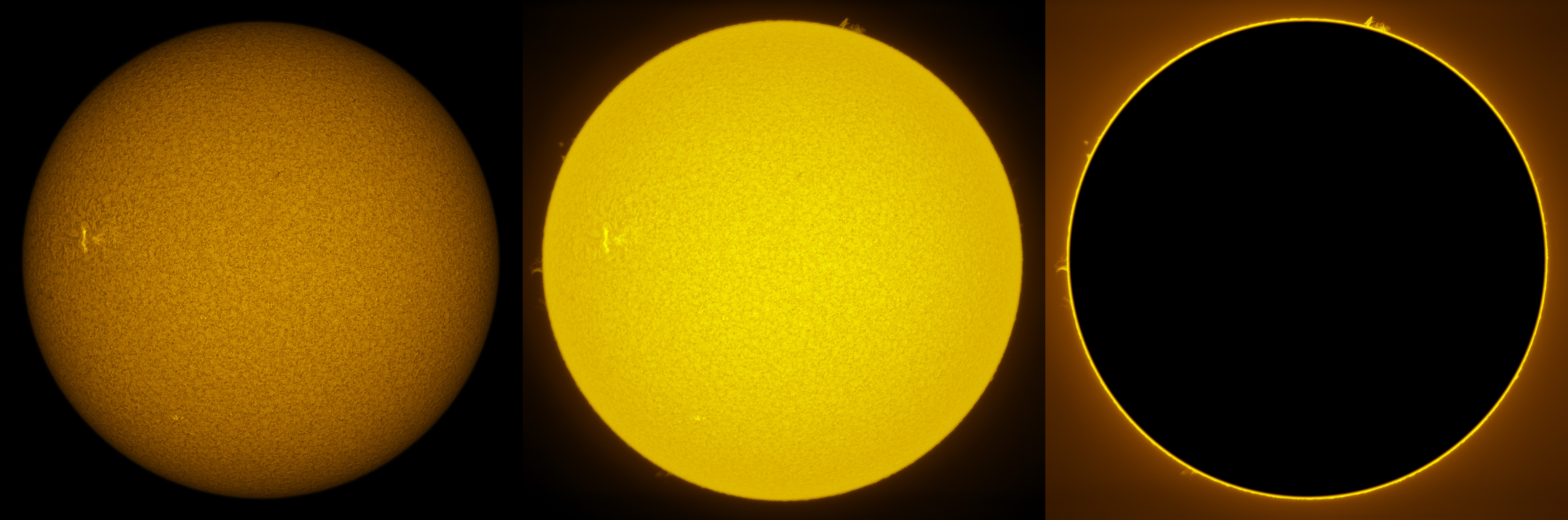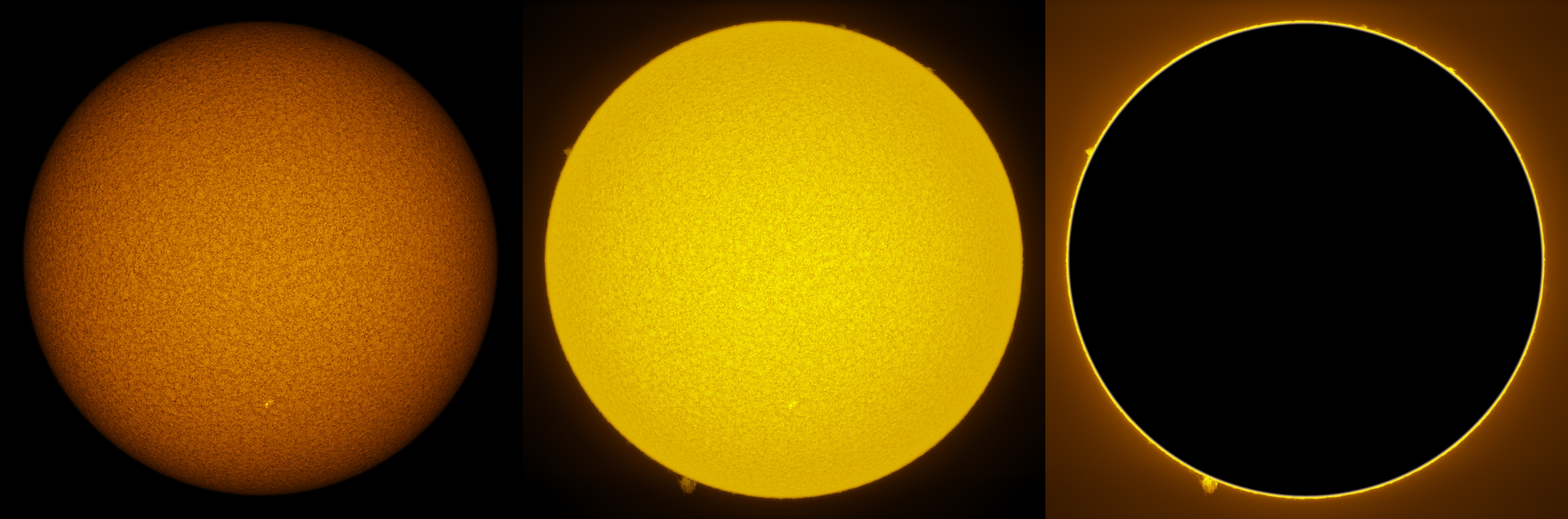 SUN (20200925) WL, CaK & H-alpha (10:00 UTC). TV101 F/5.4, LUNT 1200 CaK Module, SM60, BF30, PGR GRASSHOPPER 3 GS3-U3-28S4
