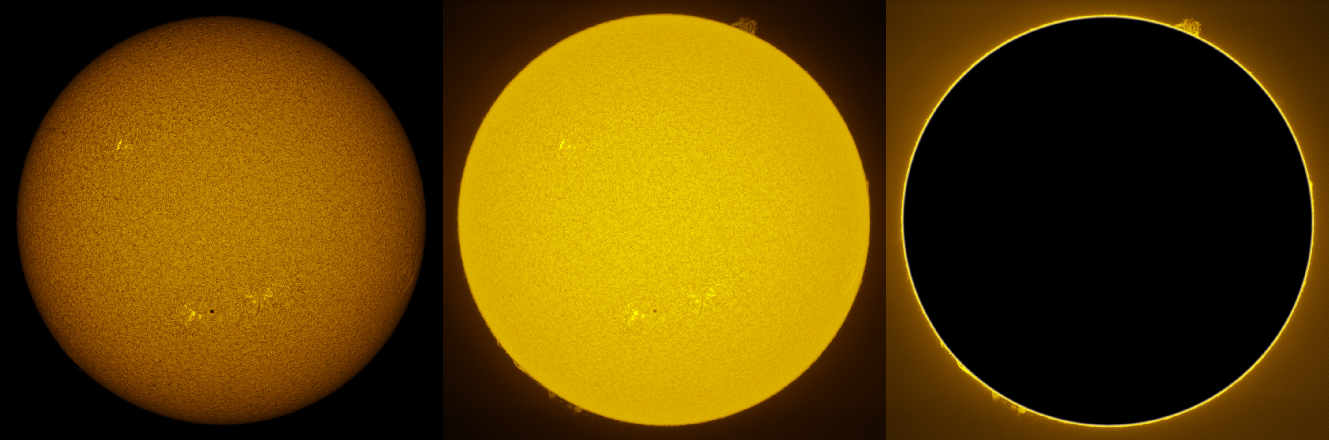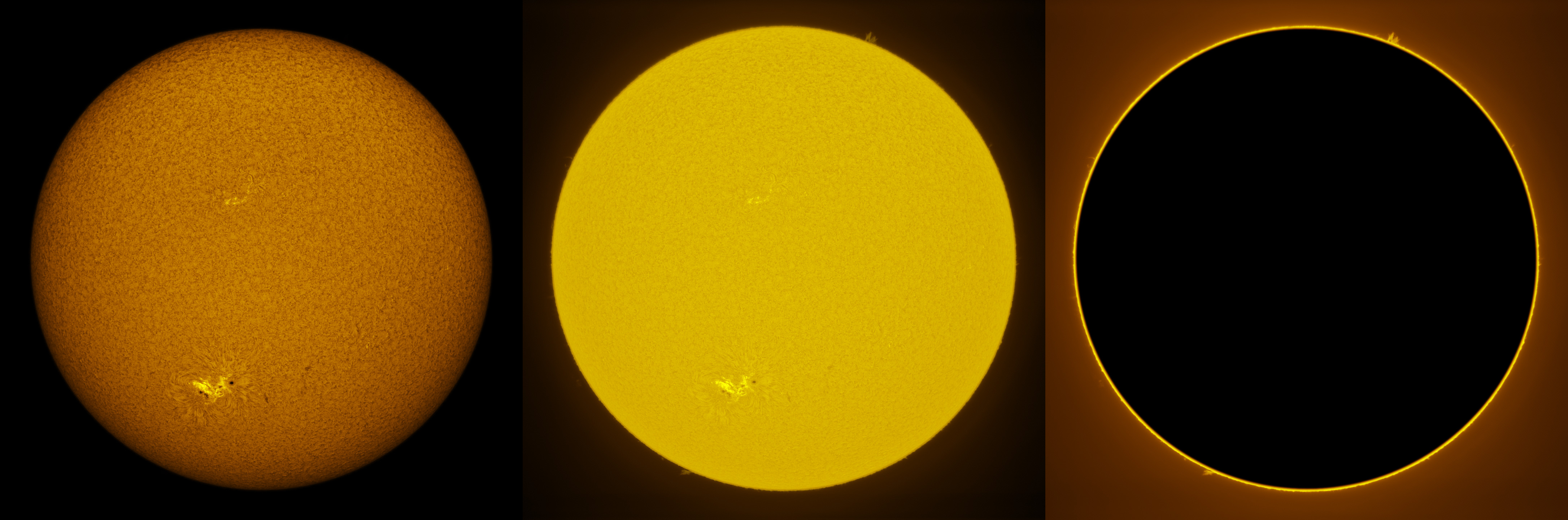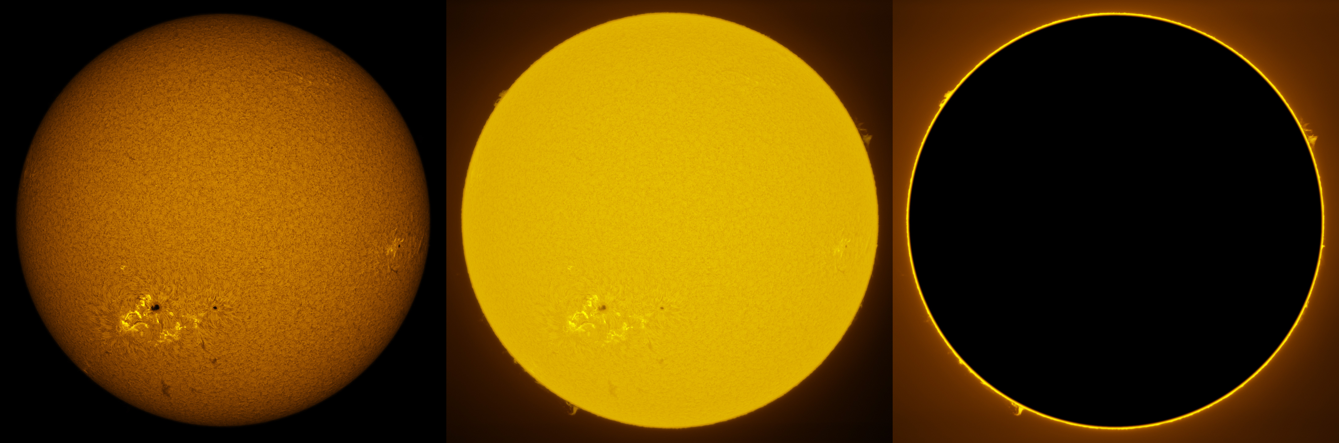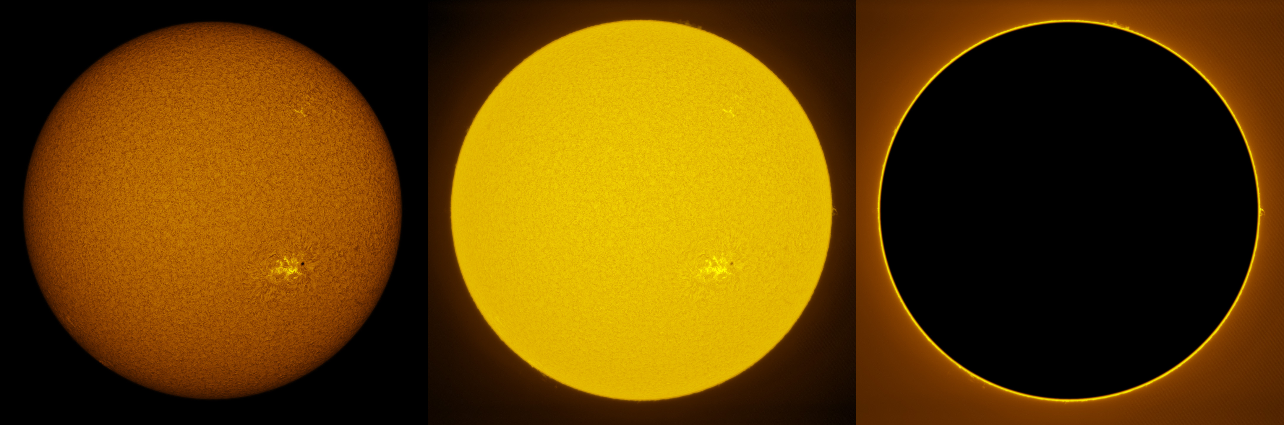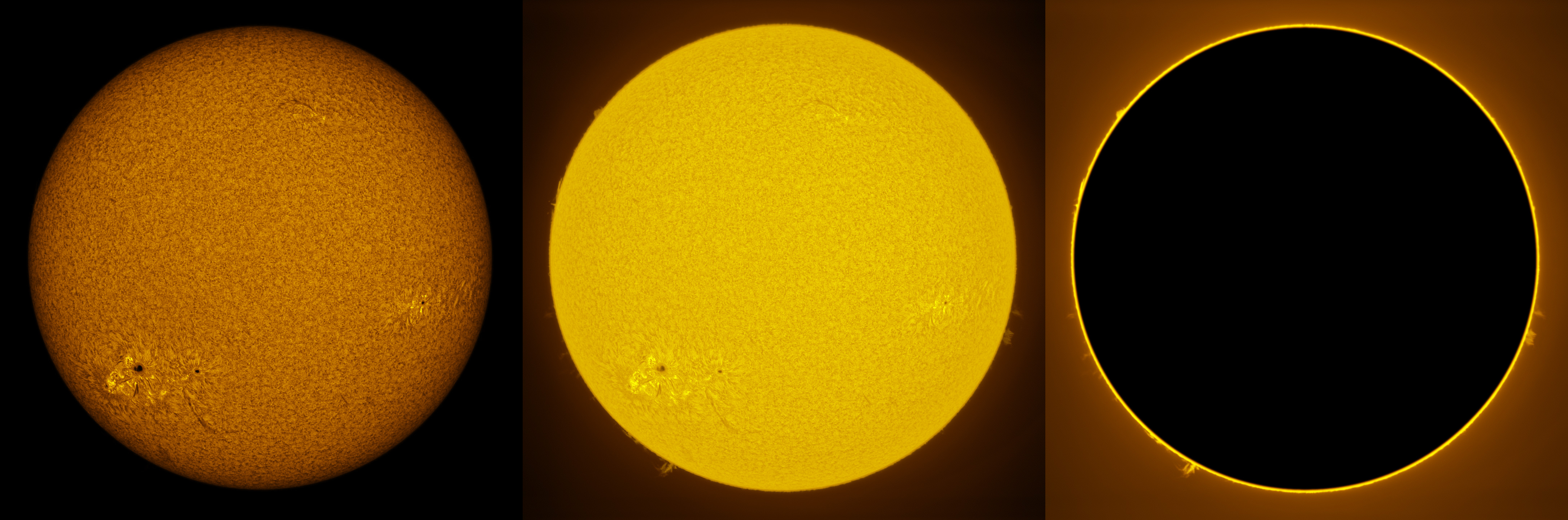 SUN (20201123) WL, CaK & H-alpha. LUNT152 F/6, LUNT152 CaK Module, B3400, X2 Barlow (@X1.4) PGR GRASSHOPPER 3 GS3-U3-28S4M
