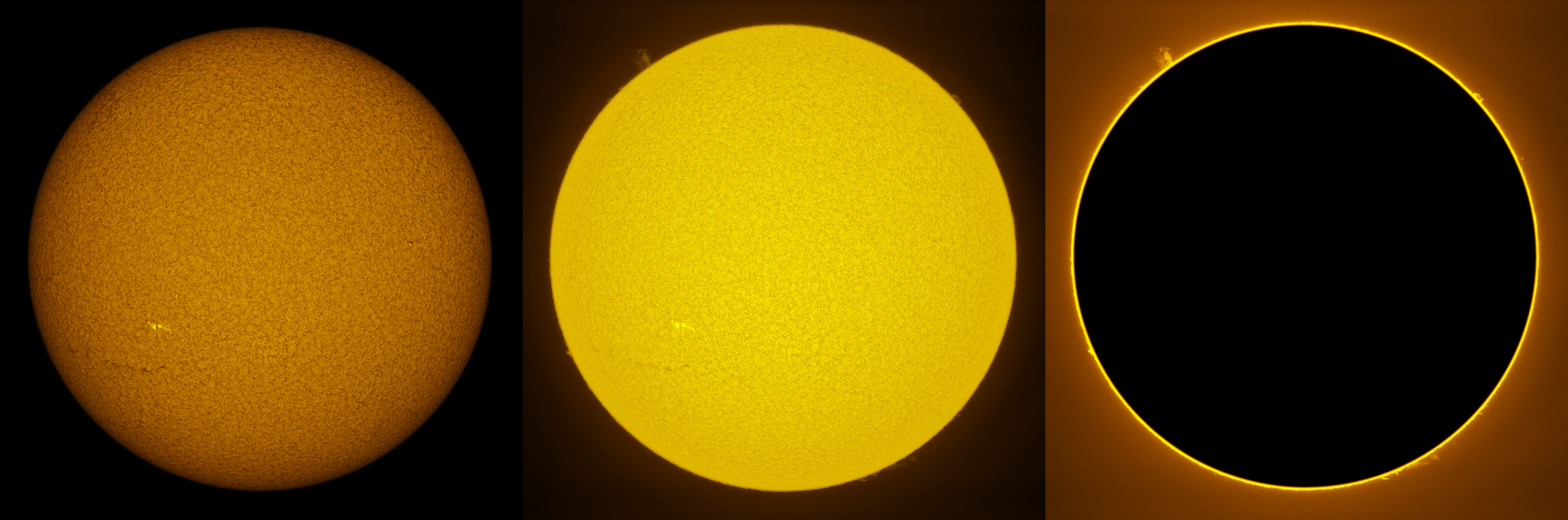 SUN (20210227) WL, CaK & H-alpha (11:30 UTC). TV101 F/5.4, LUNT 1200 CaK Module, SM60, BF30, PGR GRASSHOPPER 3 GS3-U3-28S4
