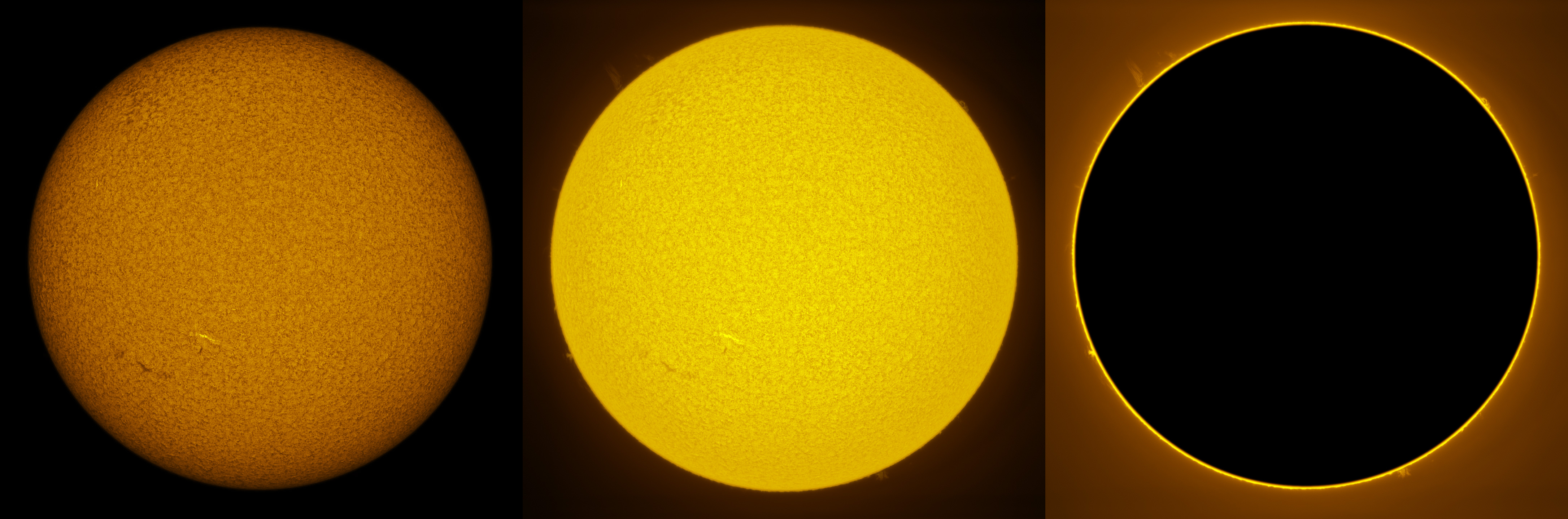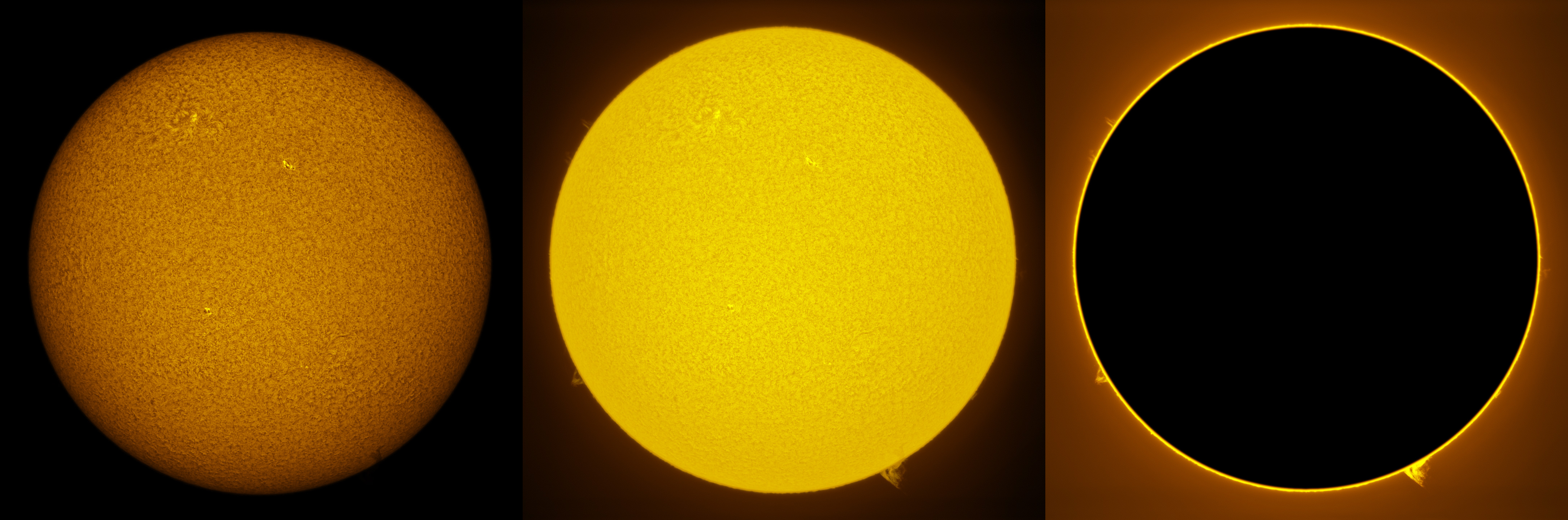 SUN (20210228) WL, CaK & H-alpha (09:00 UTC). TV101 F/5.4, LUNT 1200 CaK Module, SM60, BF30, PGR GRASSHOPPER 3 GS3-U3-28S4