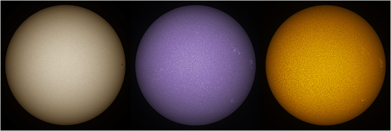 SUN (20210212) WL, CaK & H-alpha (09:00 UTC). TV101 F/5.4, LUNT 1200 CaK Module, SM60, BF30, PGR GRASSHOPPER 3 GS3-U3-28S4