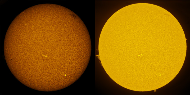 SUN (20210317) WL & H-alpha. LUNT152 F/6, B3400, X2 Barlow (@X1.4), PGR GRASSHOPPER 3 GS3-U3-28S4M