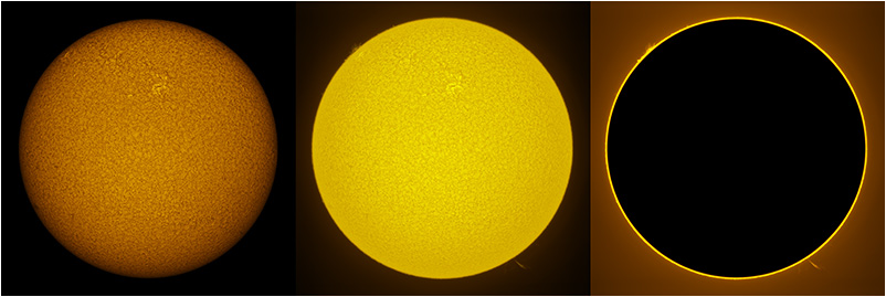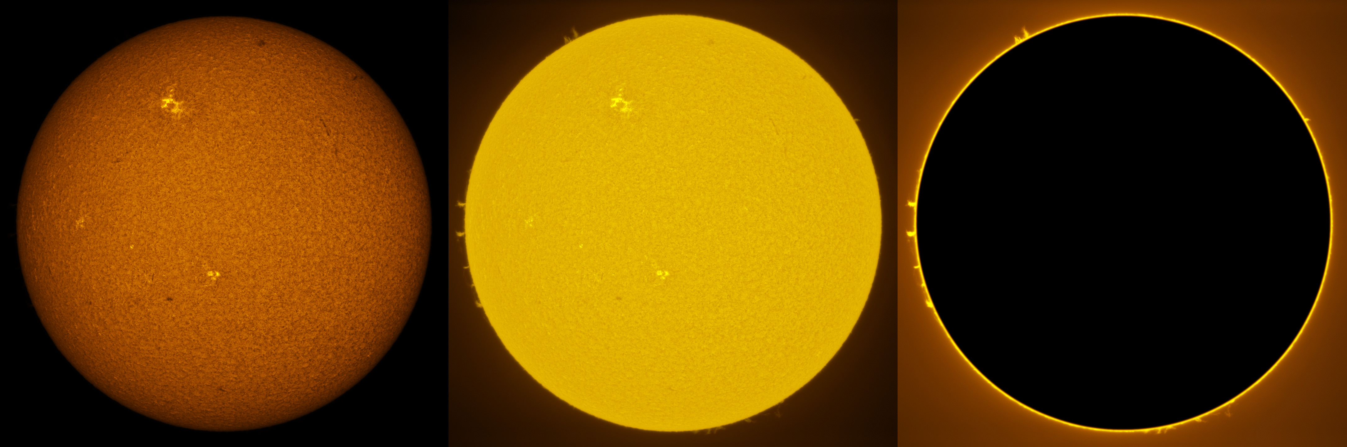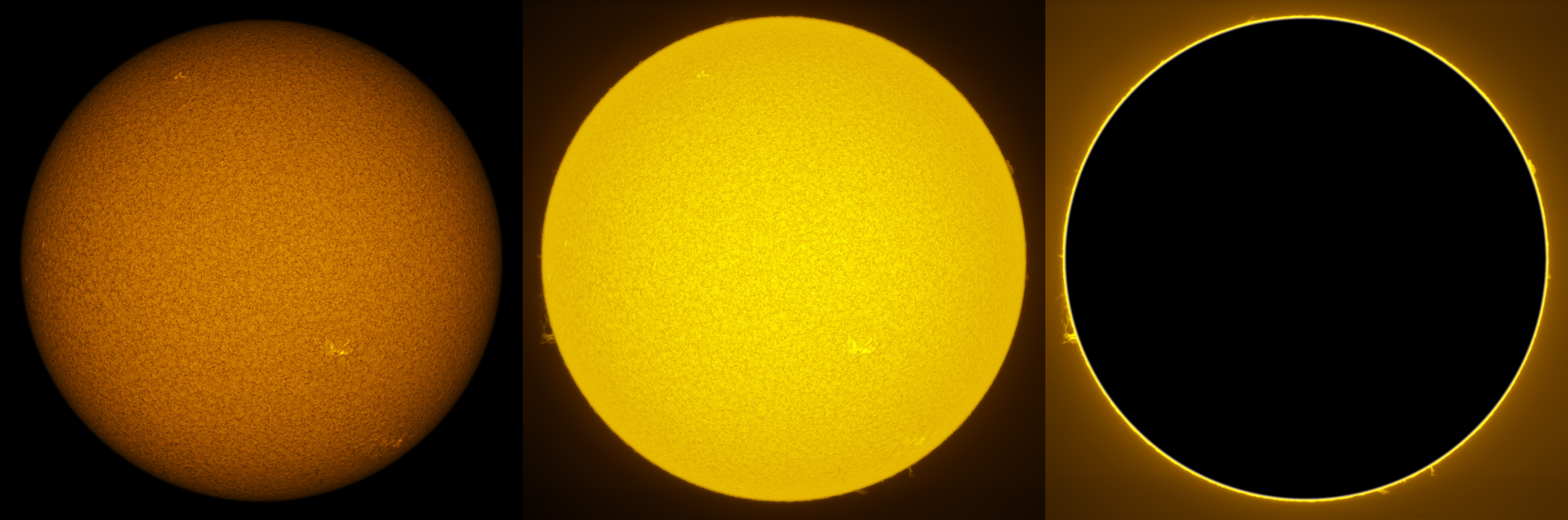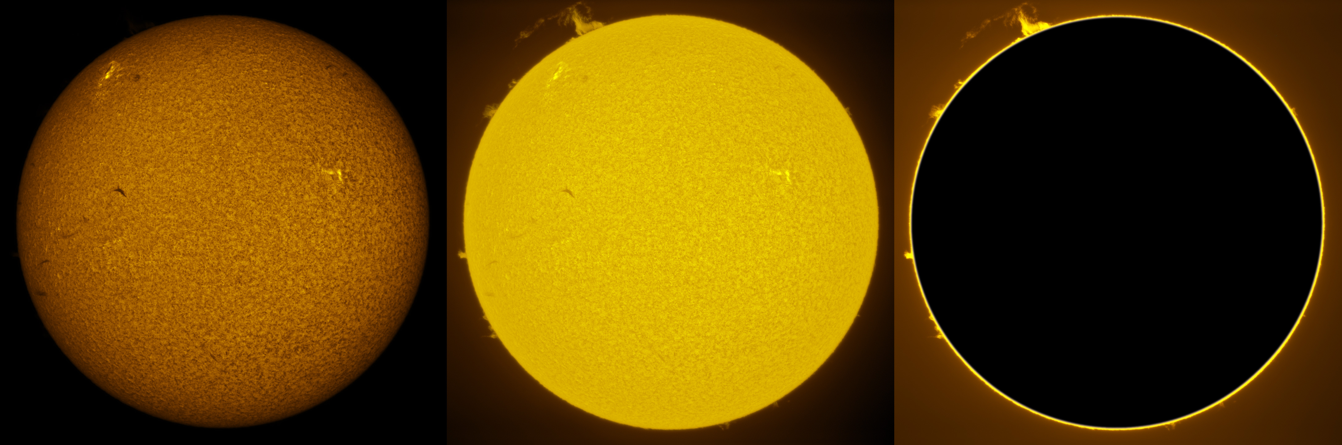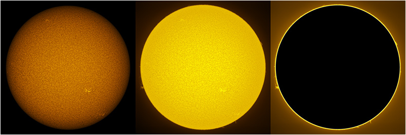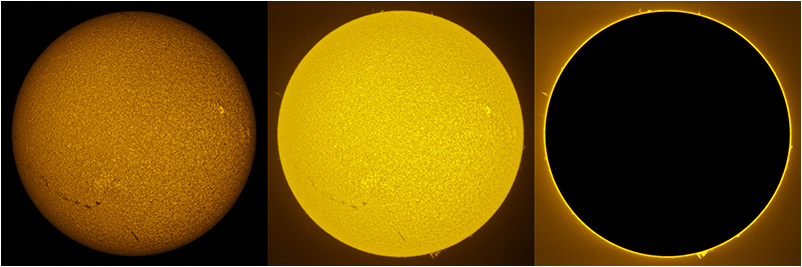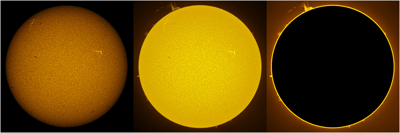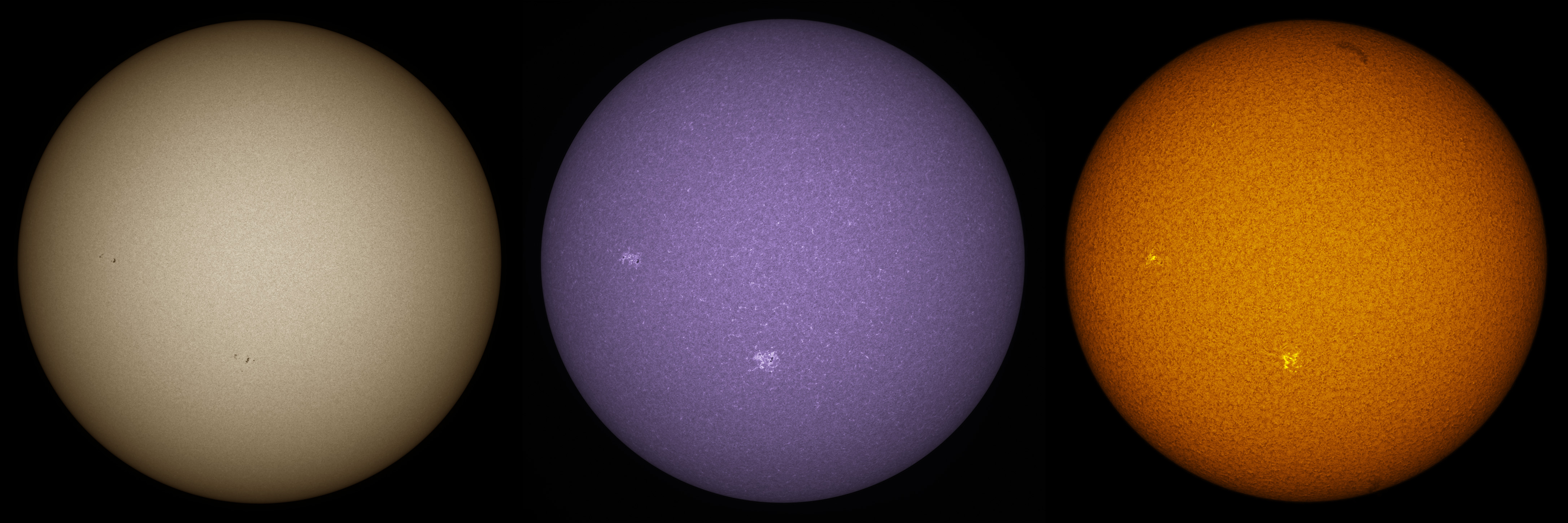 SUN (20210321) WL, CaK & H-alpha (09:30 UTC). TV101 F/5.4, LUNT 1200 CaK Module, SM60, BF30, PGR GRASSHOPPER 3 GS3-U3-28S4