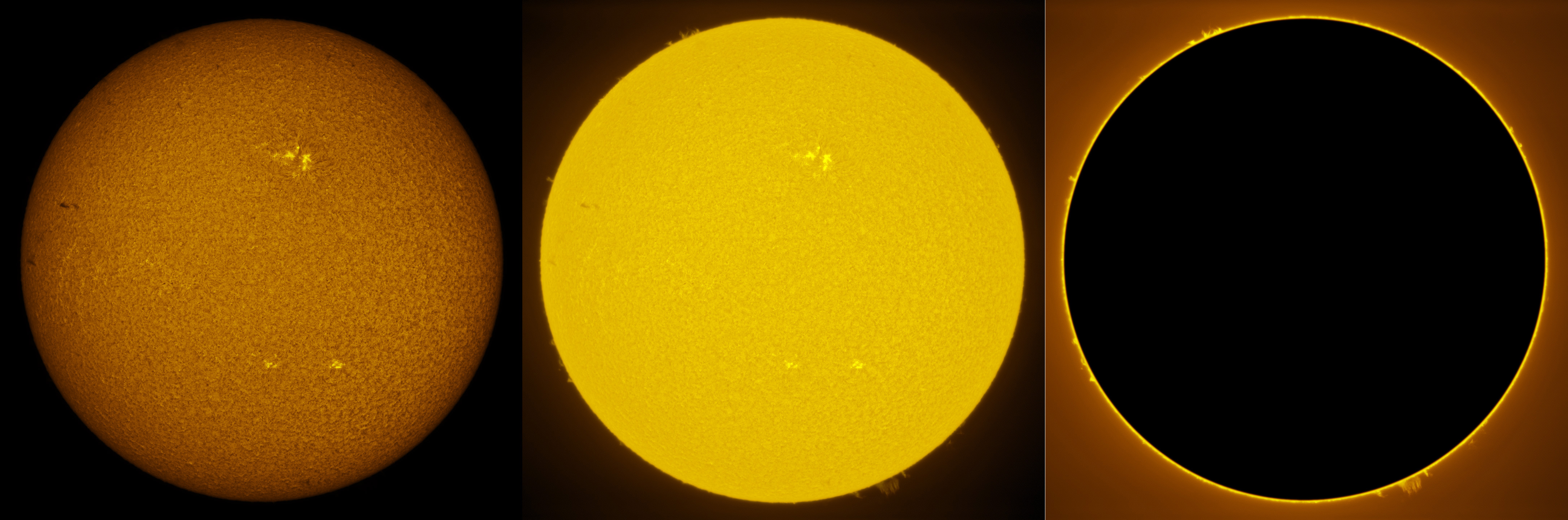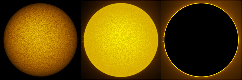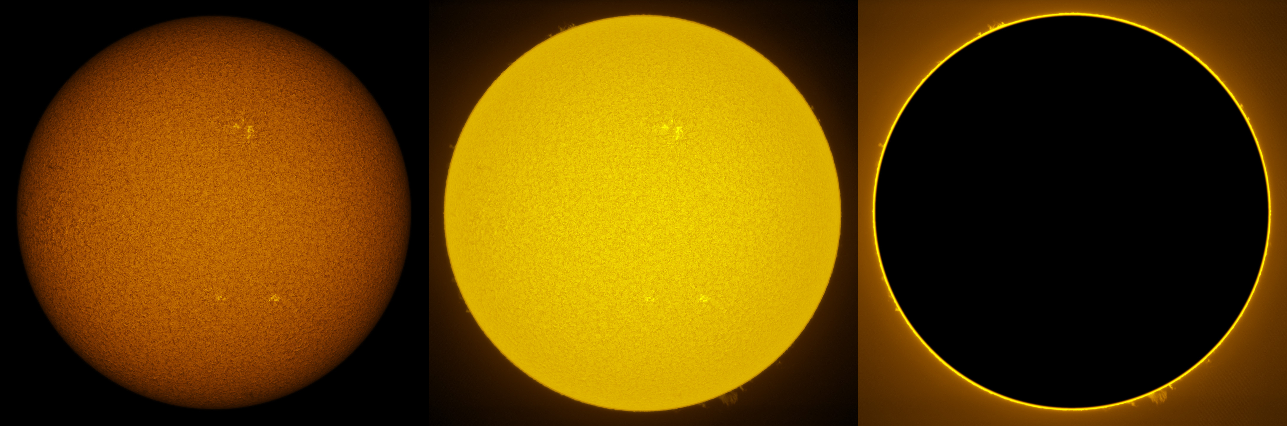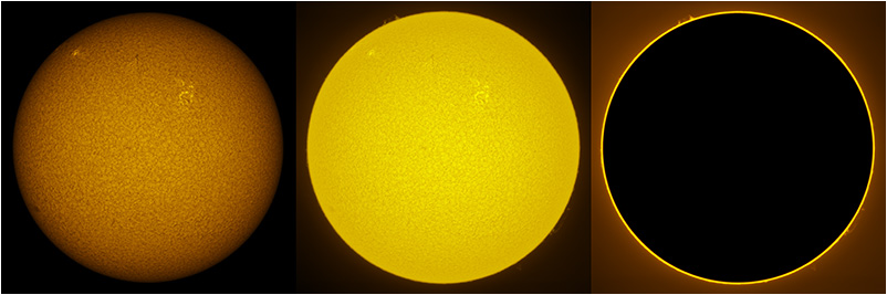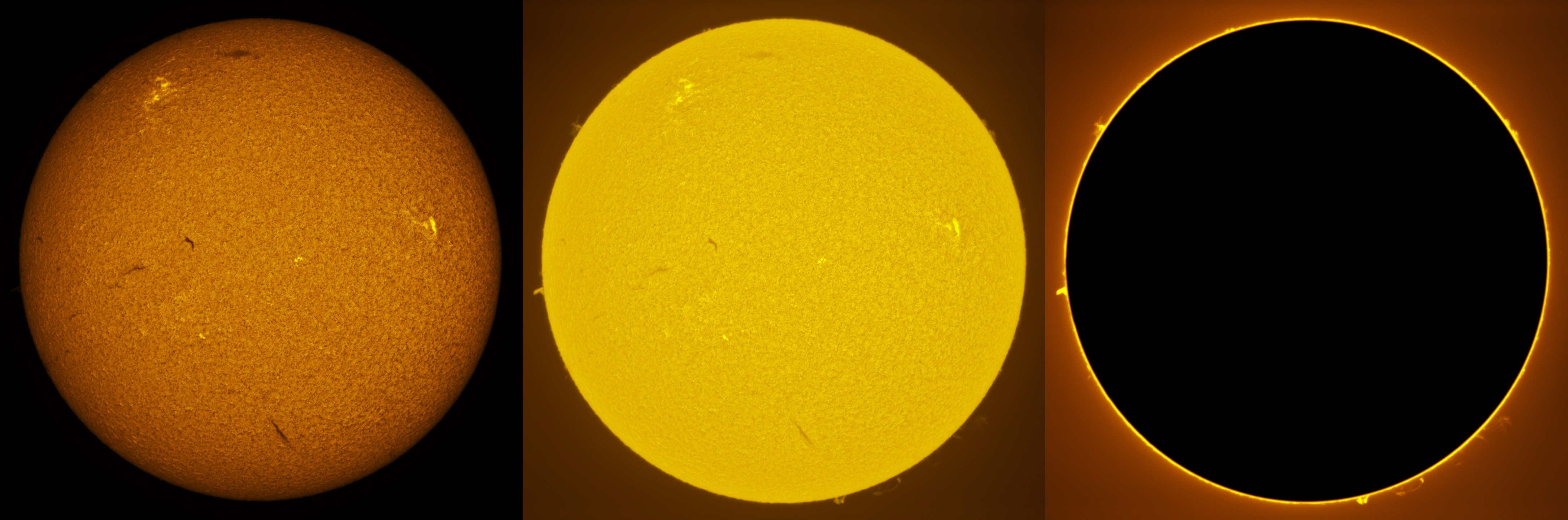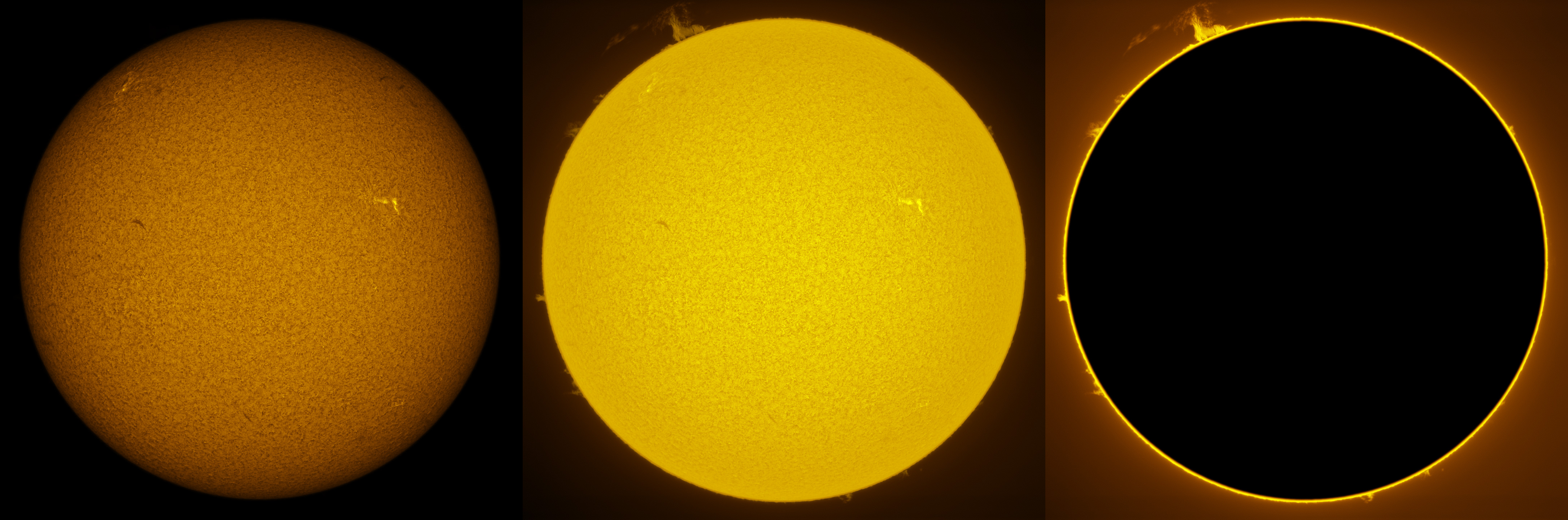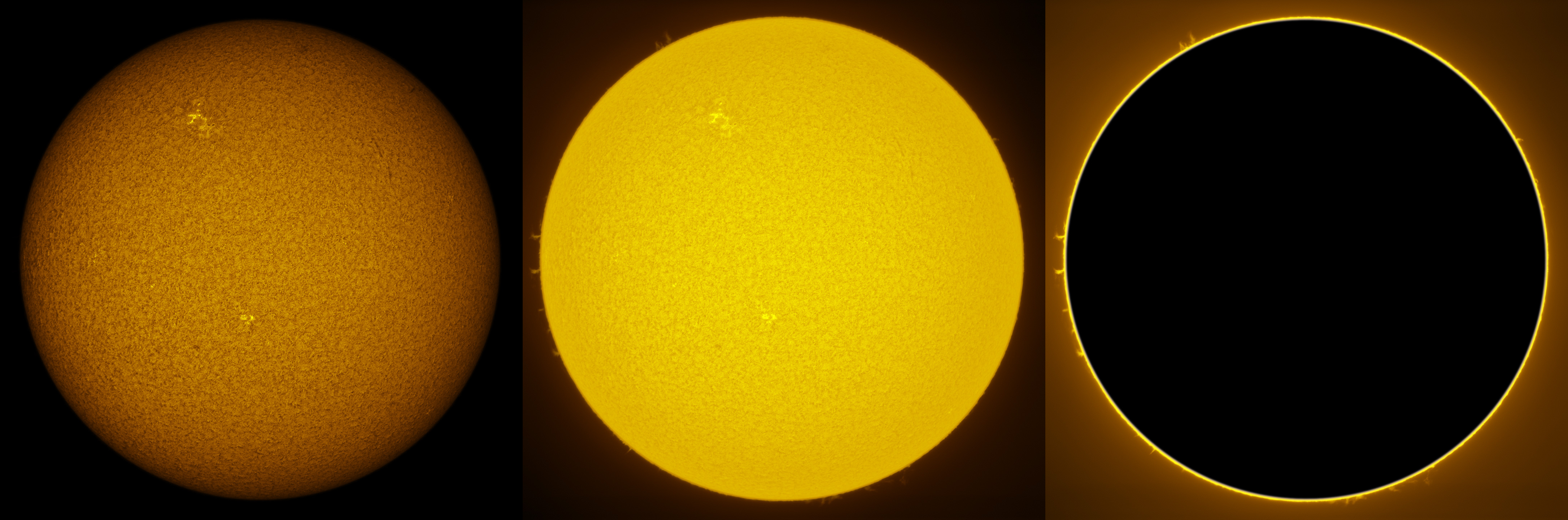 SUN (20210321) WL, CaK & H-alpha (09:30 UTC). TV101 F/5.4, LUNT 1200 CaK Module, SM60, BF30, PGR GRASSHOPPER 3 GS3-U3-28S4