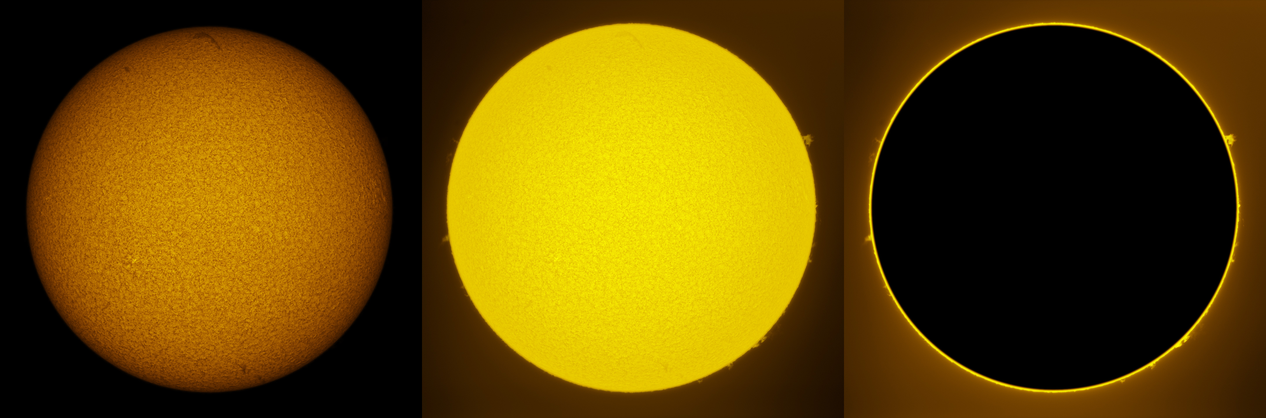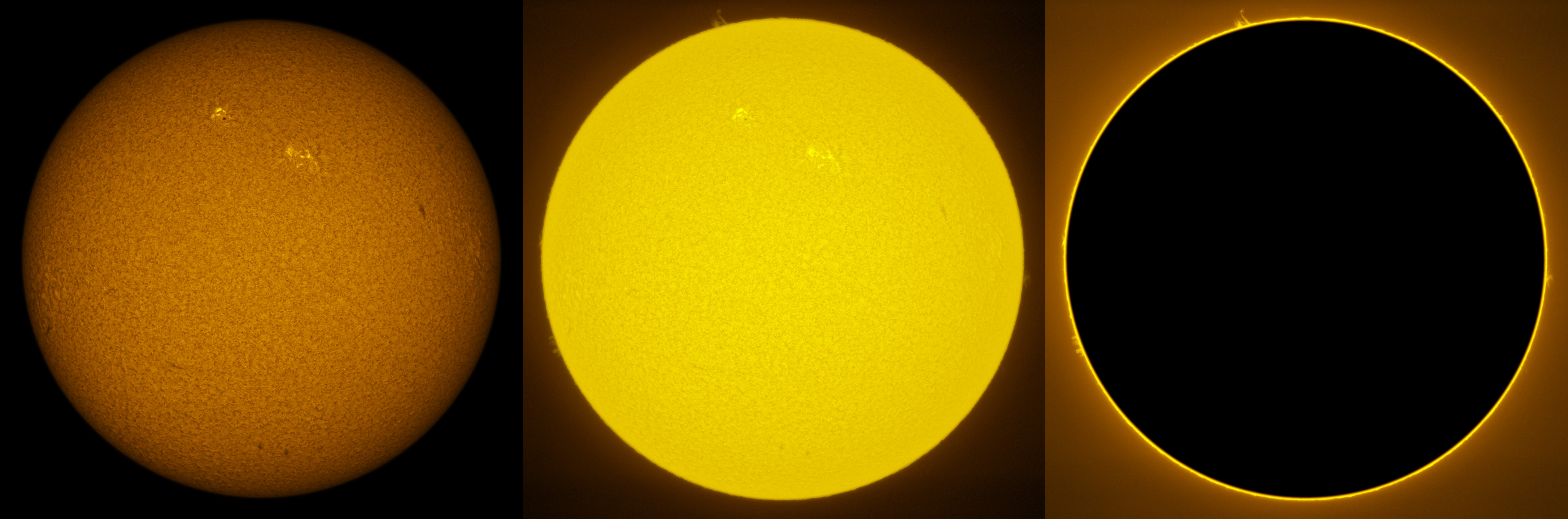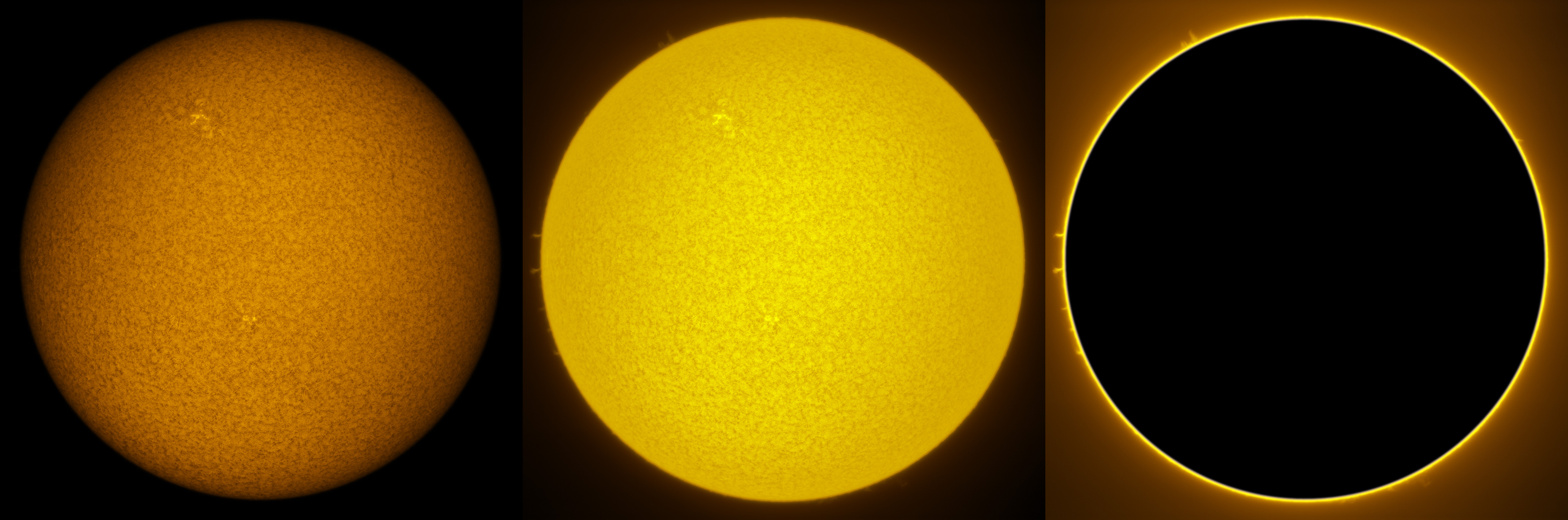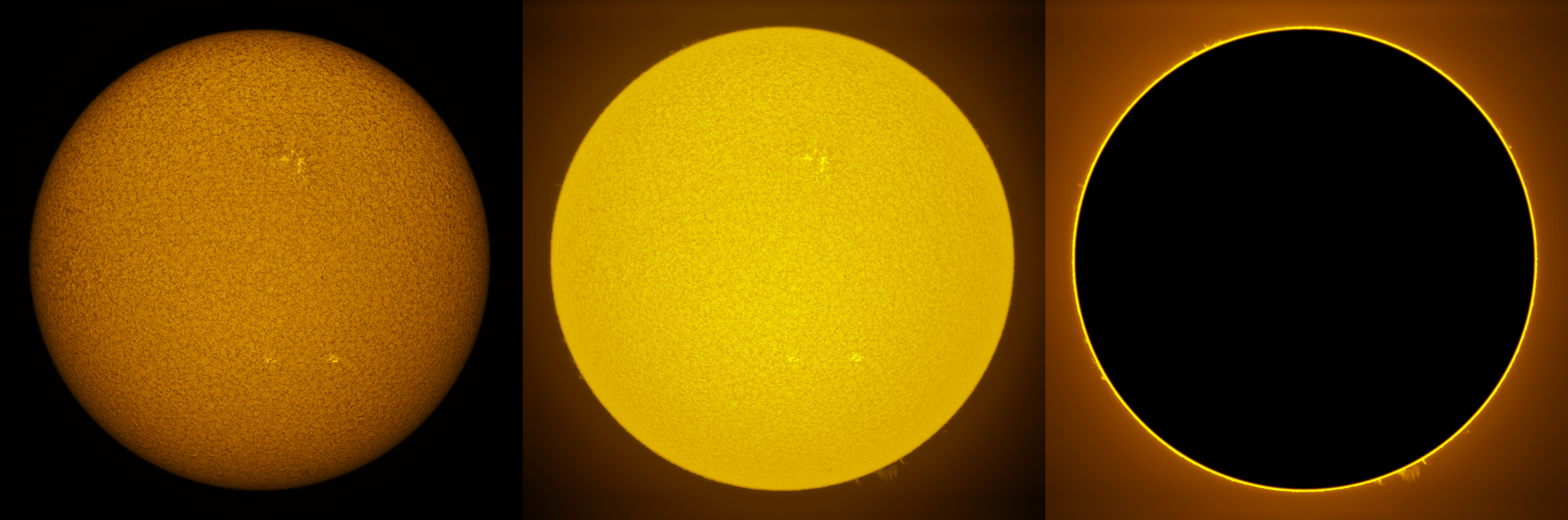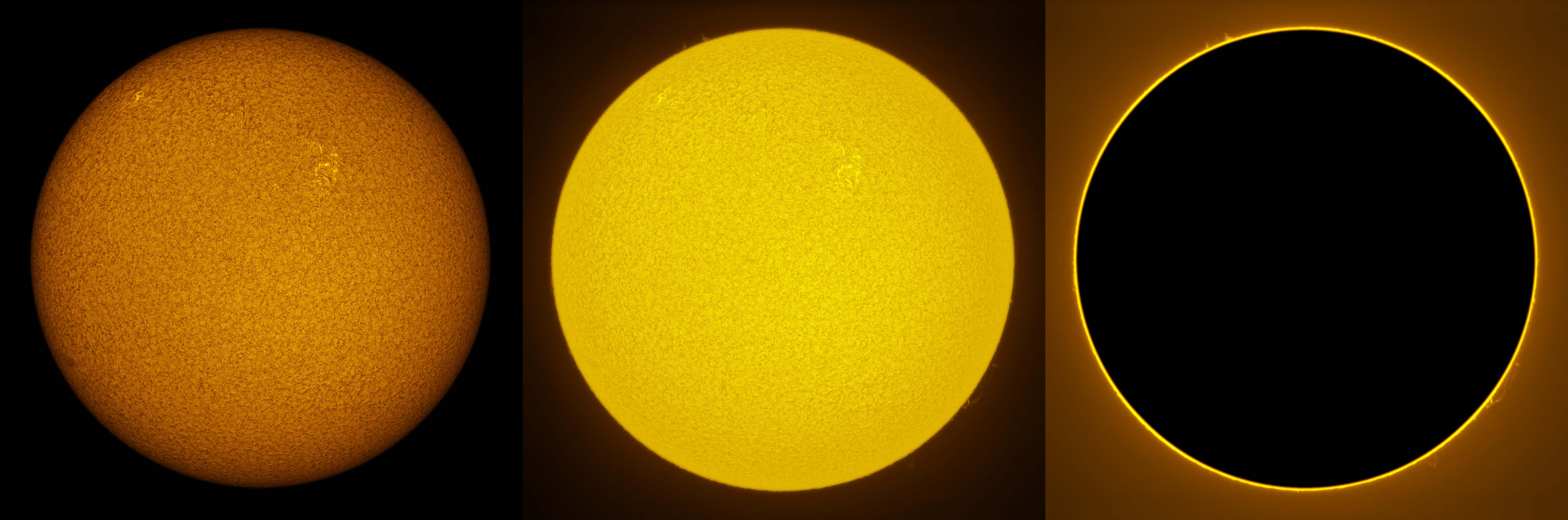 SUN (20210321) WL, CaK & H-alpha (09:30 UTC). TV101 F/5.4, LUNT 1200 CaK Module, SM60, BF30, PGR GRASSHOPPER 3 GS3-U3-28S4