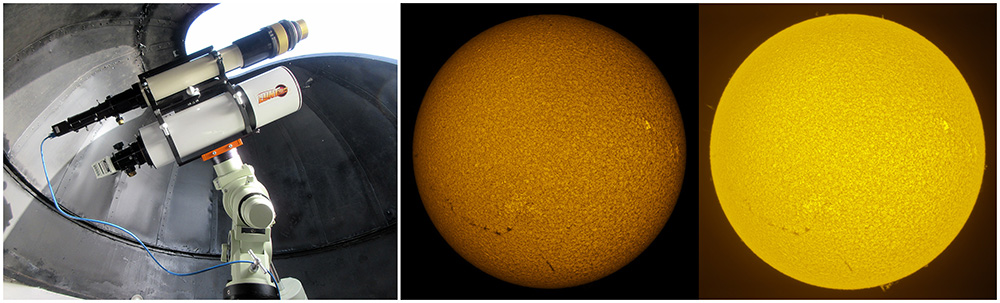 SUN (20210318) WL, CaK & H-alpha (09:30 UTC). TV101 F/5.4, LUNT 1200 CaK Module, SM60, BF30, PGR GRASSHOPPER 3 GS3-U3-28S4