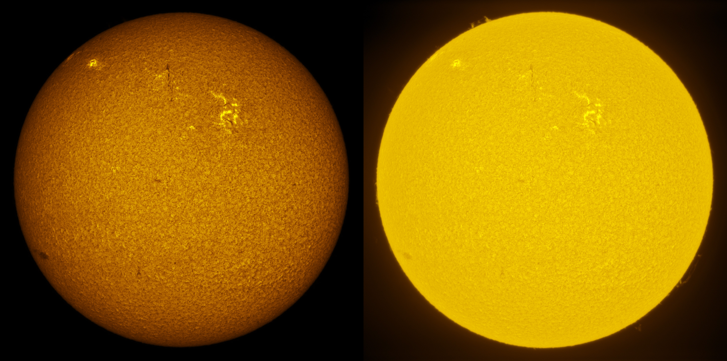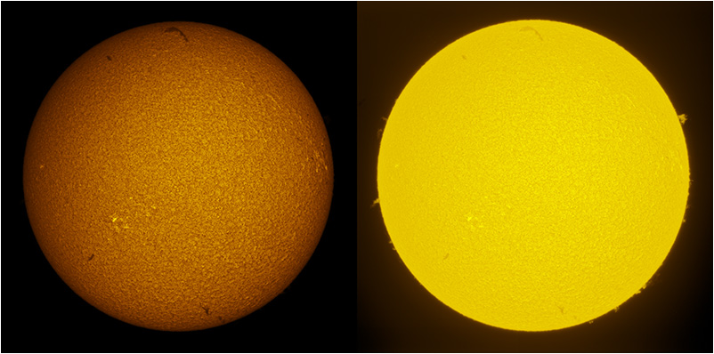 SUN (20210307) WL & H-alpha. LUNT152 F/6, B3400, X2 Barlow (@X1.4), PGR GRASSHOPPER 3 GS3-U3-28S4M