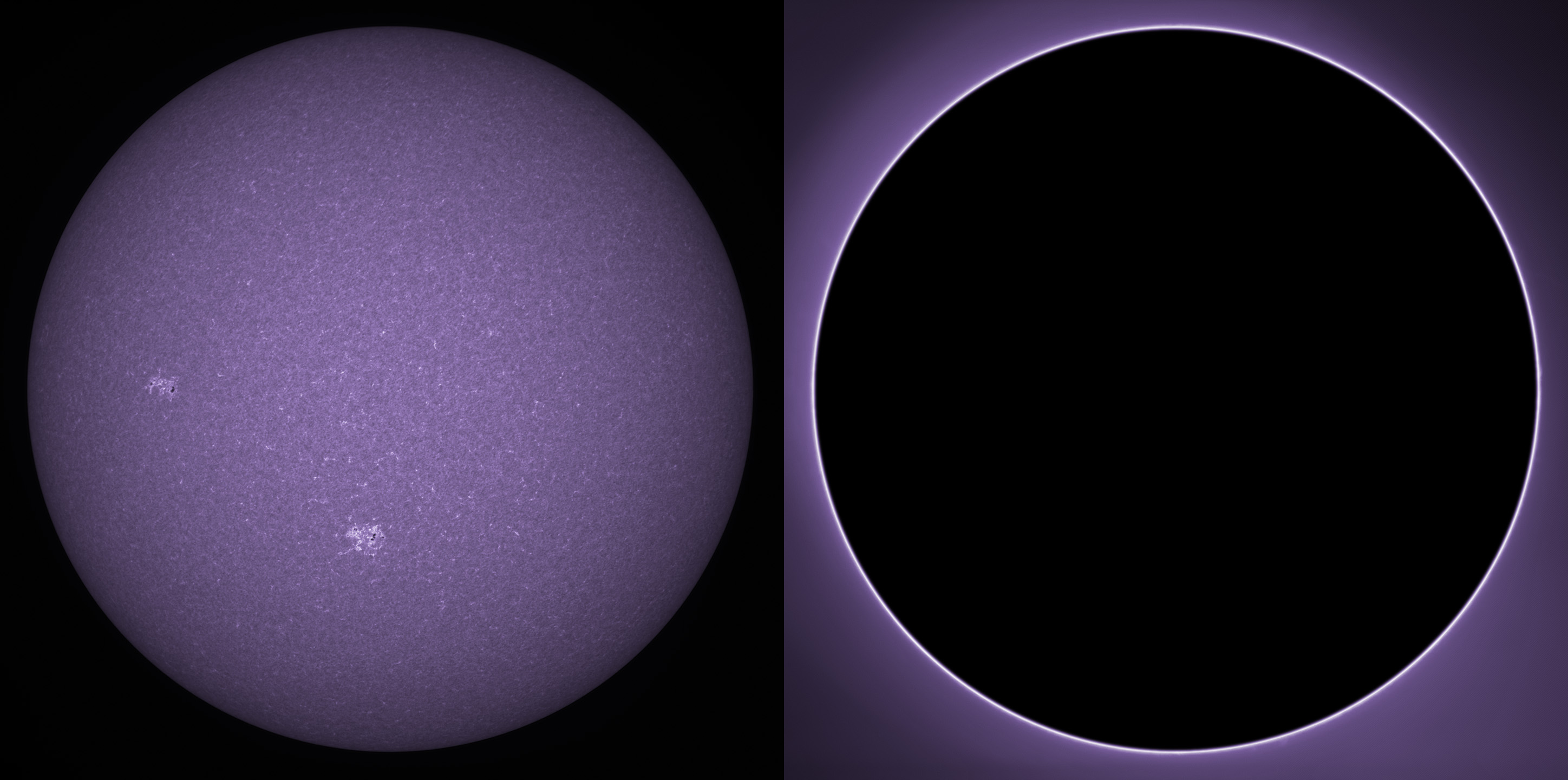 SUN (20210303) WL & H-alpha. LUNT152, B3400, X2 Barlow (@X1.4), PGR GRASSHOPPER 3 GS3-U3-28S4M