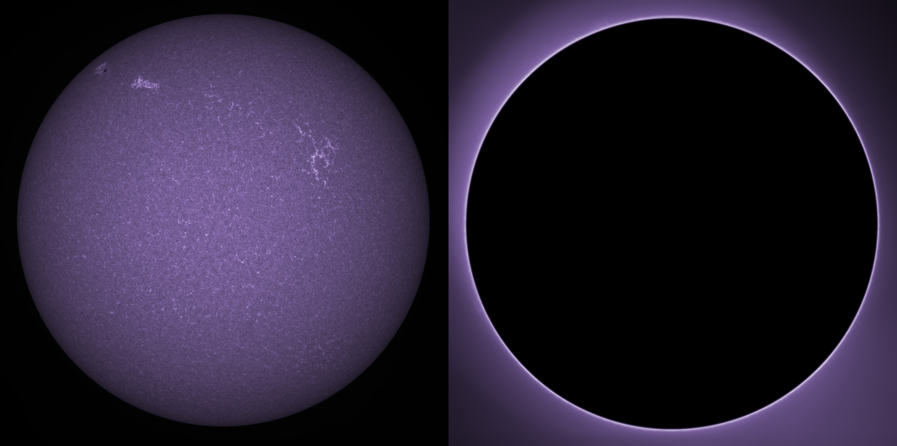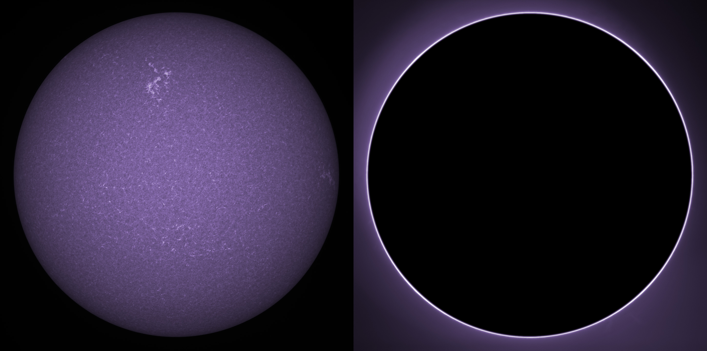 SUN (20210320) WL, CaK & H-alpha (09:30 UTC). TV101 F/5.4, LUNT 1200 CaK Module, SM60, BF30, PGR GRASSHOPPER 3 GS3-U3-28S4