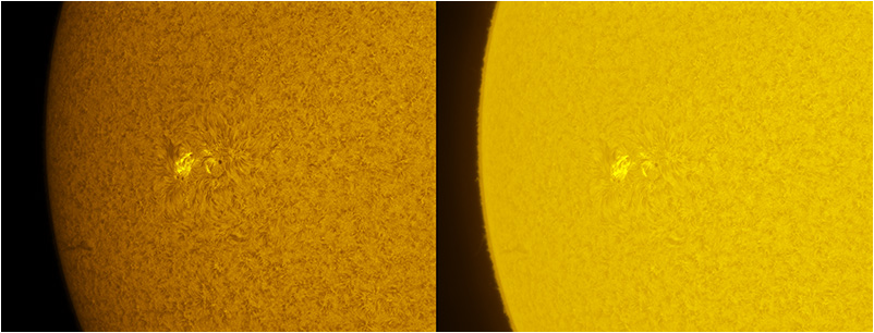 SUN (20210418) WL & H-alpha. LUNT152, B3400, X2 (@X1.4) Barlow, PGR GRASSHOPPER 3 GS3-U3-28S4M