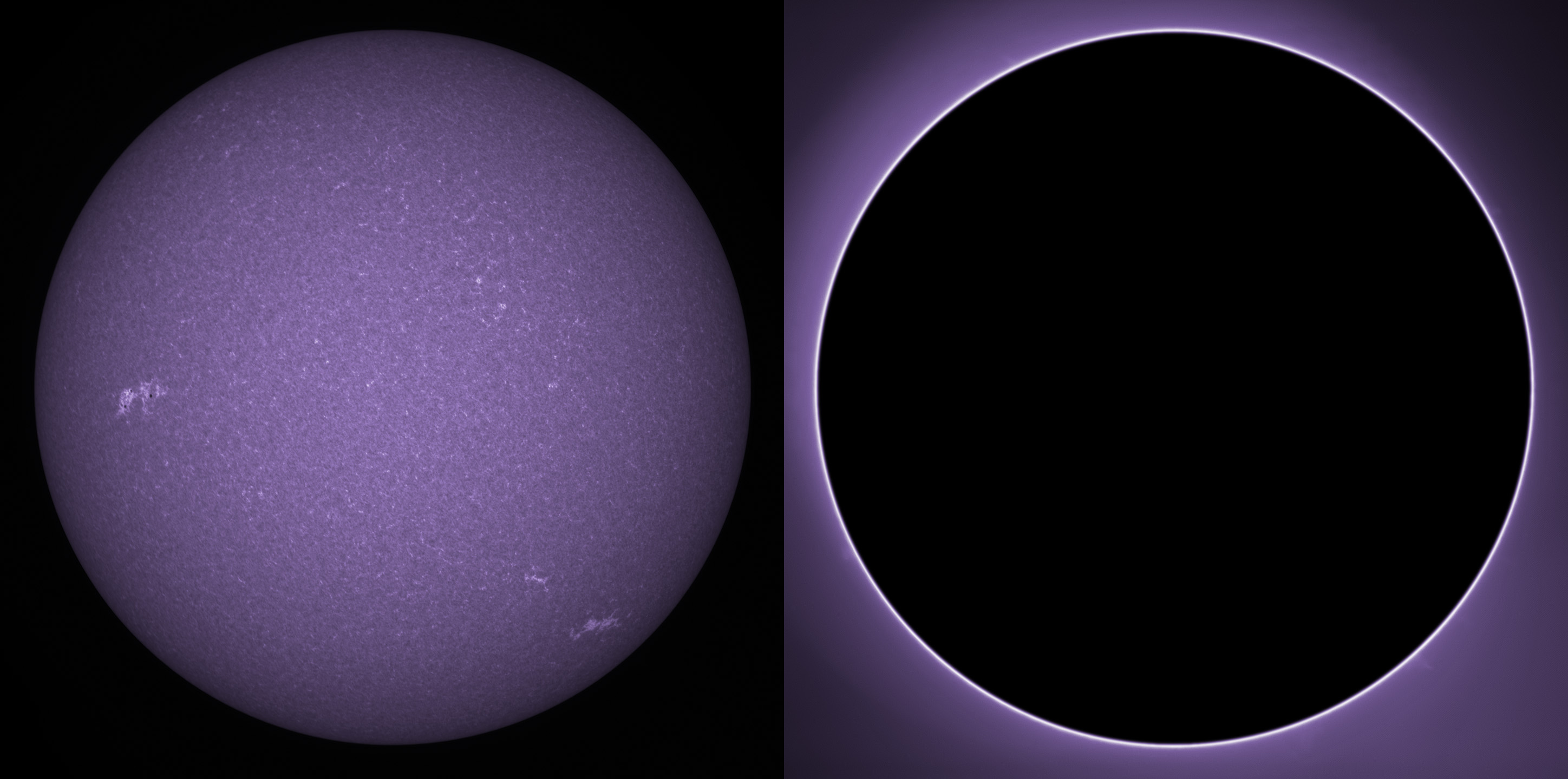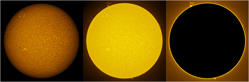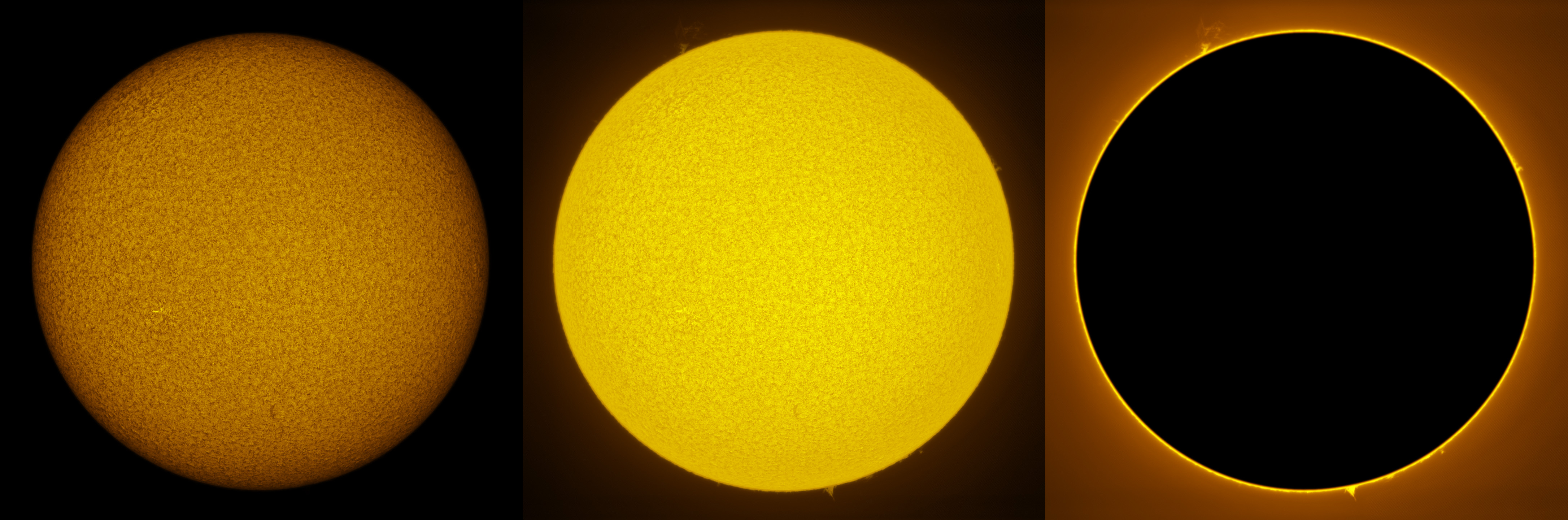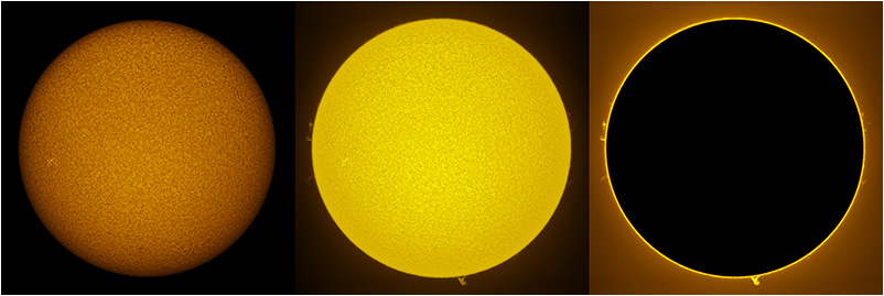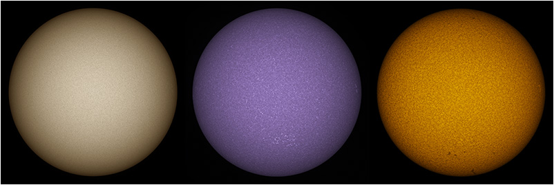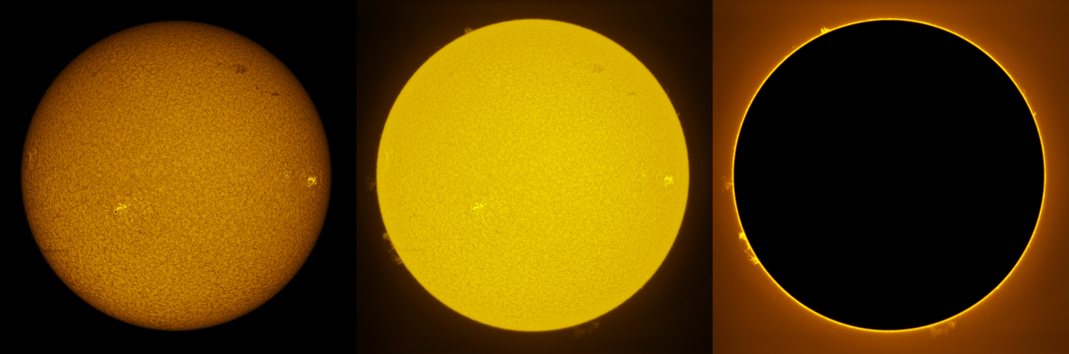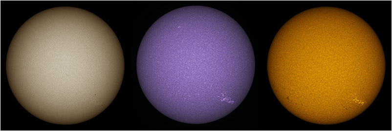 SUN (20210417) WL, CaK & H-alpha (09:00 UTC). TV101 F/5.4, LUNT 1200 CaK Module, SM60, BF30, PGR GRASSHOPPER 3 GS3-U3-28S4