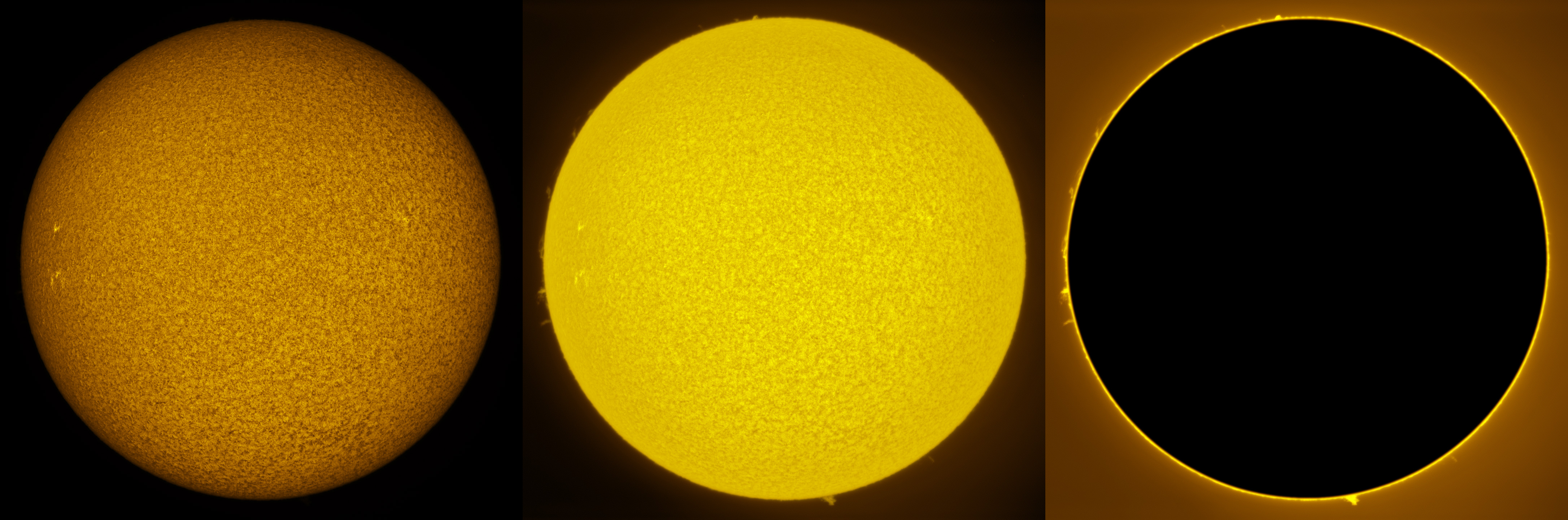 SUN (20210429) WL, CaK & H-alpha (09:00 UTC). TV101 F/5.4, LUNT 1200 CaK Module, SM60, BF30, PGR GRASSHOPPER 3 GS3-U3-28S4