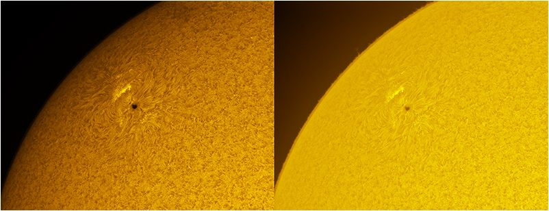 SUN (20210519) WL & H-alpha. LUNT152 F/6, B3400, 2X Zeiss Abbe' Barlow. PGR GRASSHOPPER 3 GS3-U3-28S4M