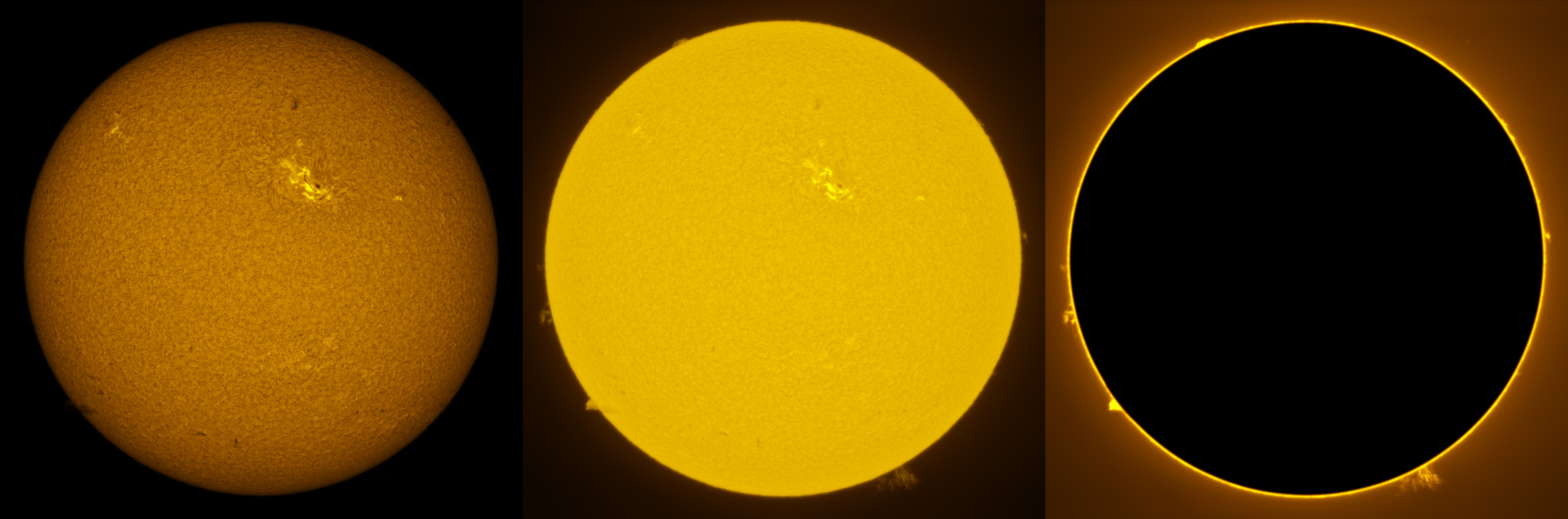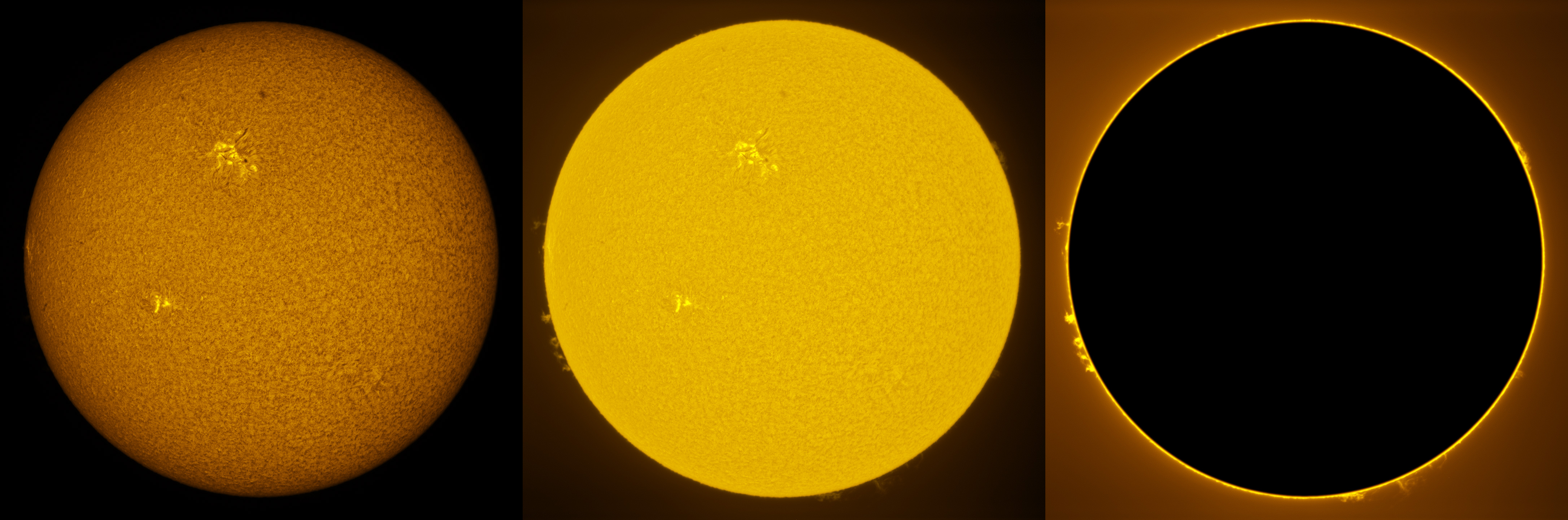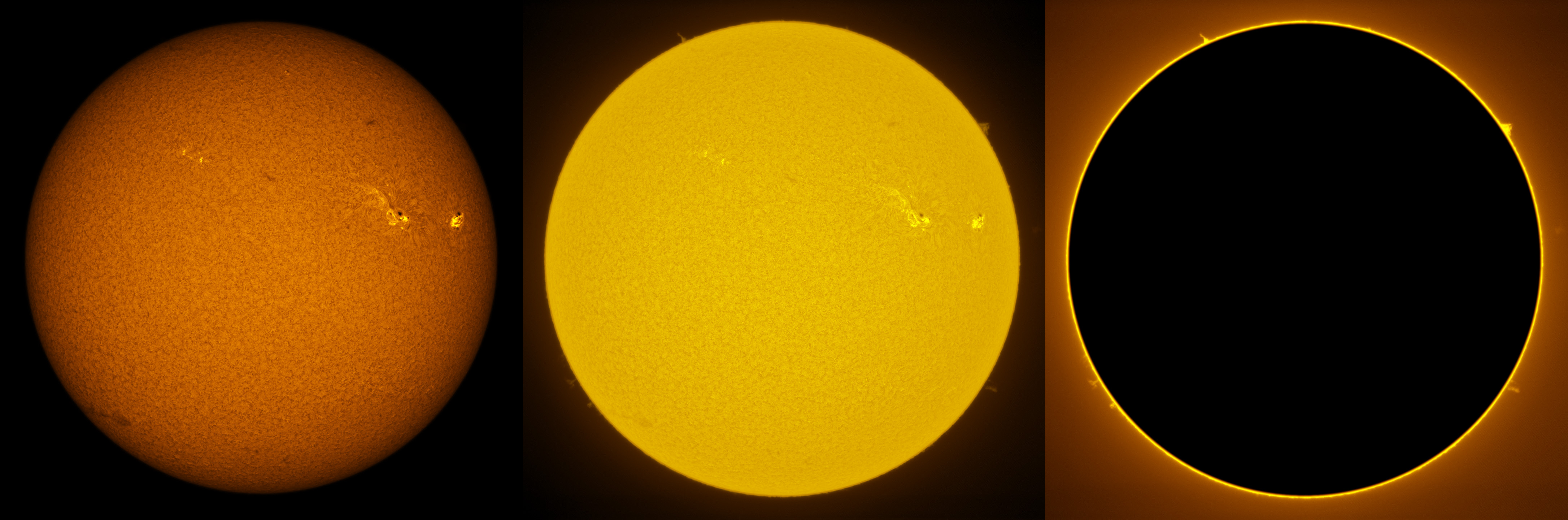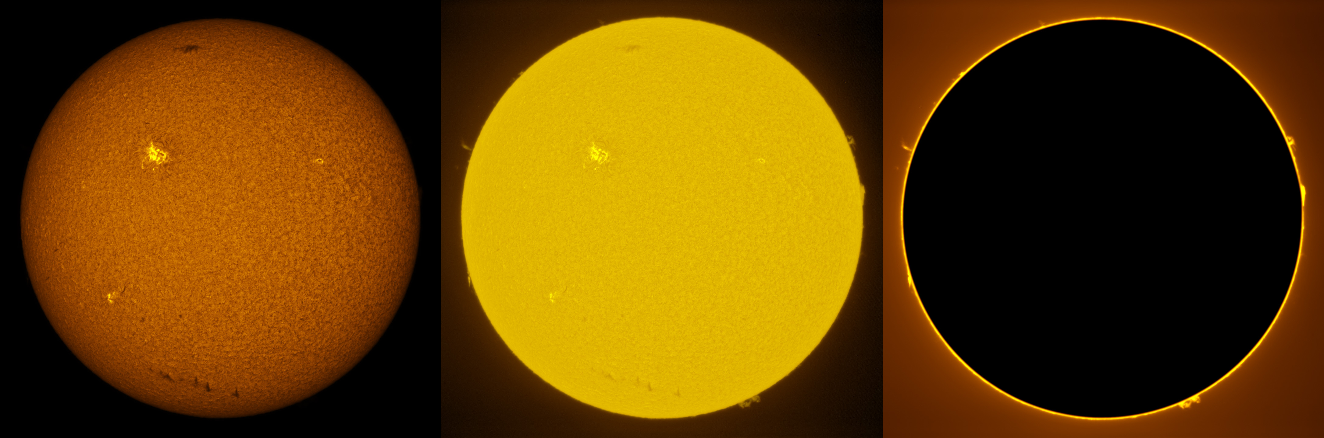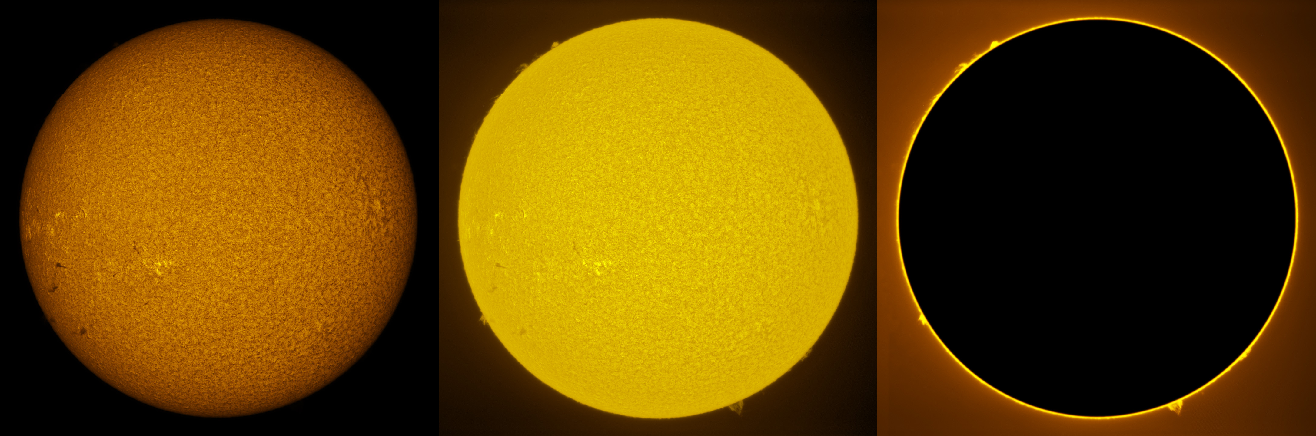 SUN (20210514) WL, CaK & H-alpha (08:30 UTC). TV101 F/5.4, LUNT 1200 CaK Module, SM60, BF30, PGR GRASSHOPPER 3 GS3-U3-28S4