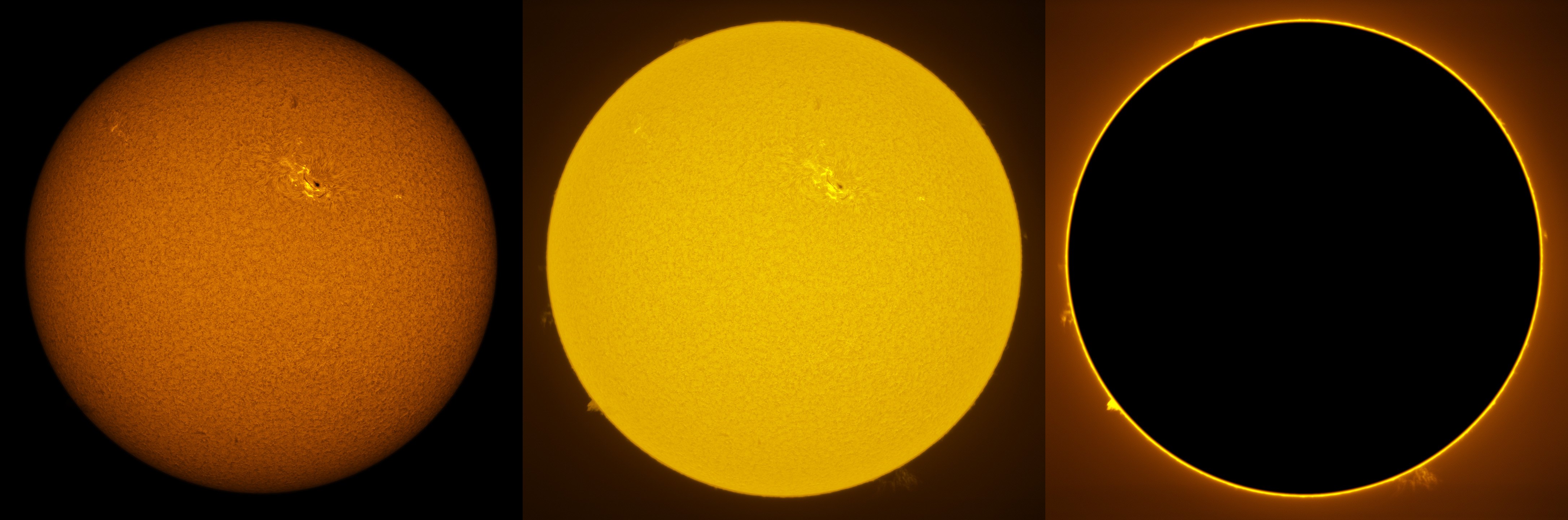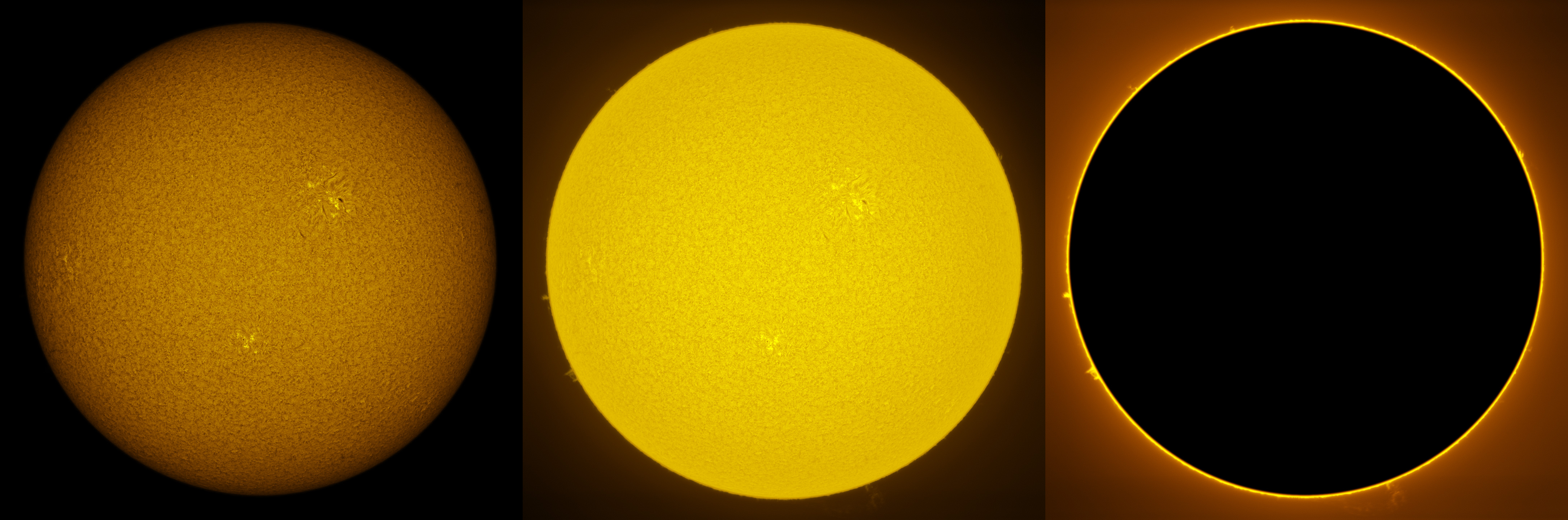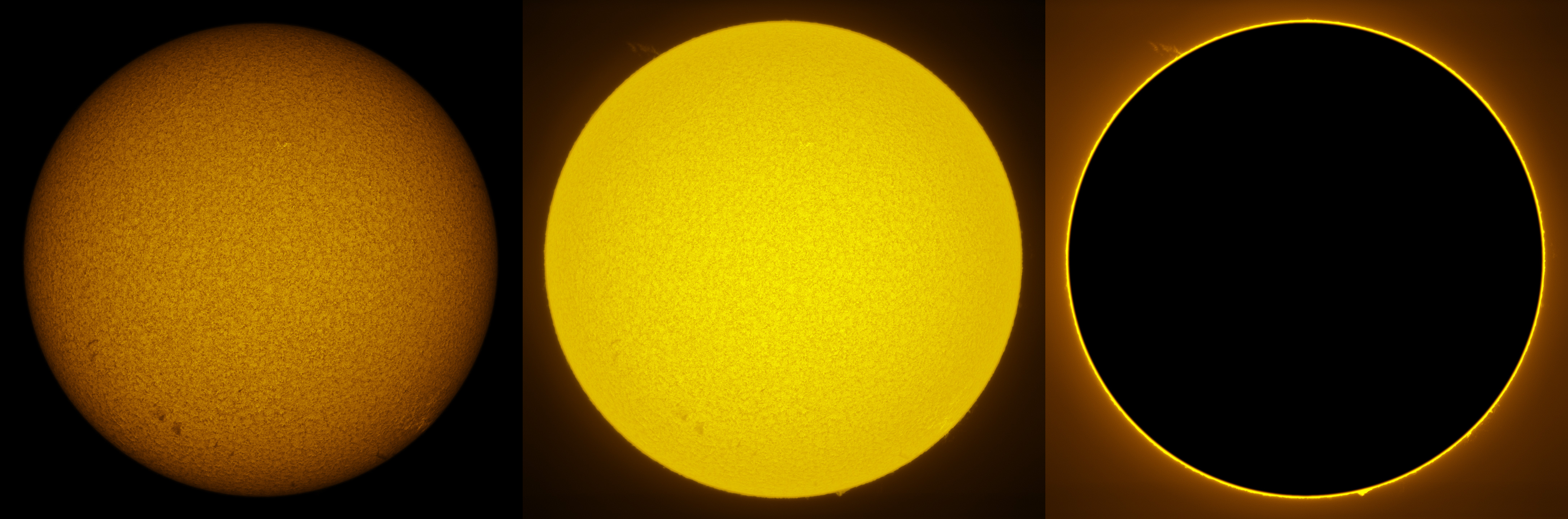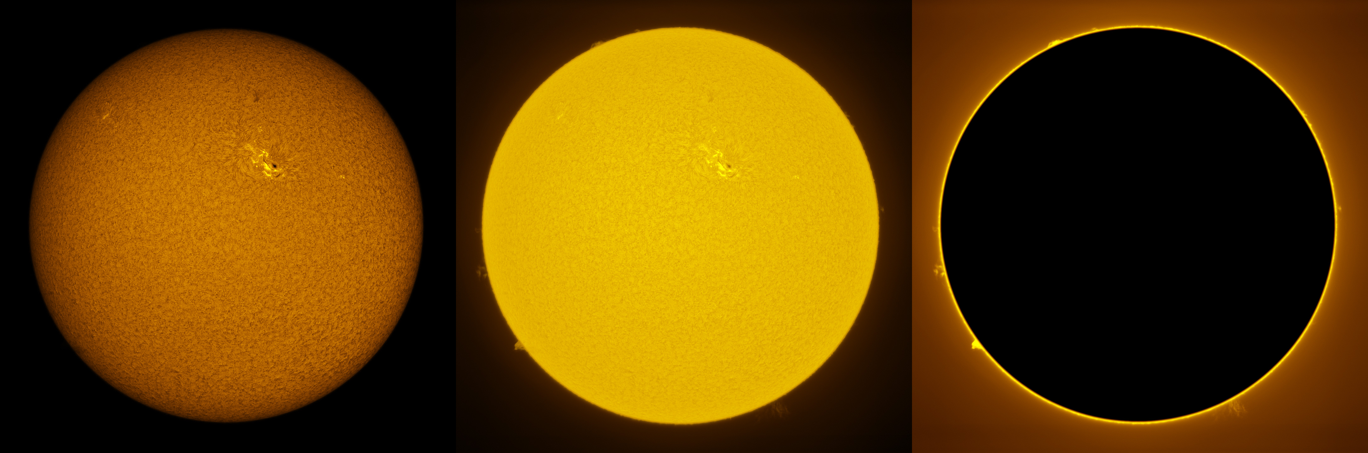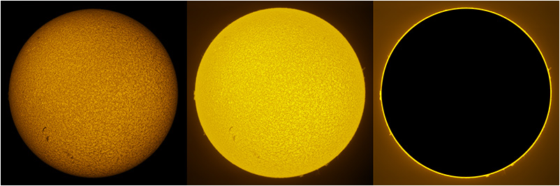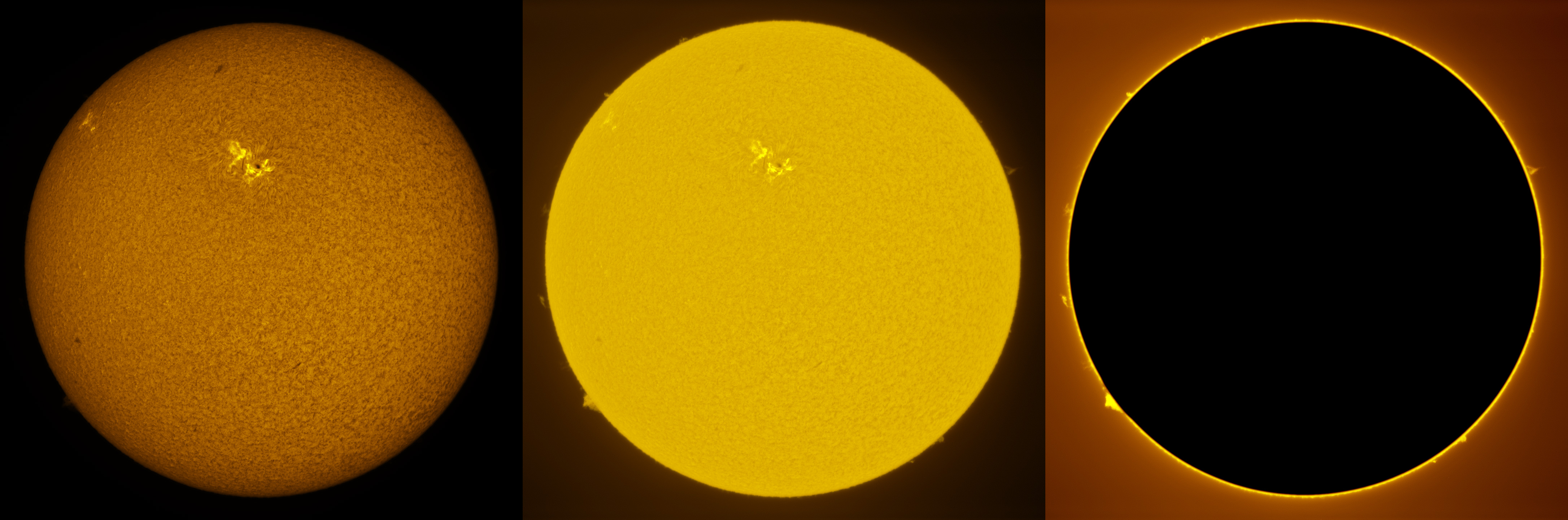 SUN (20210514) WL, CaK & H-alpha (08:30 UTC). TV101 F/5.4, LUNT 1200 CaK Module, SM60, BF30, PGR GRASSHOPPER 3 GS3-U3-28S4